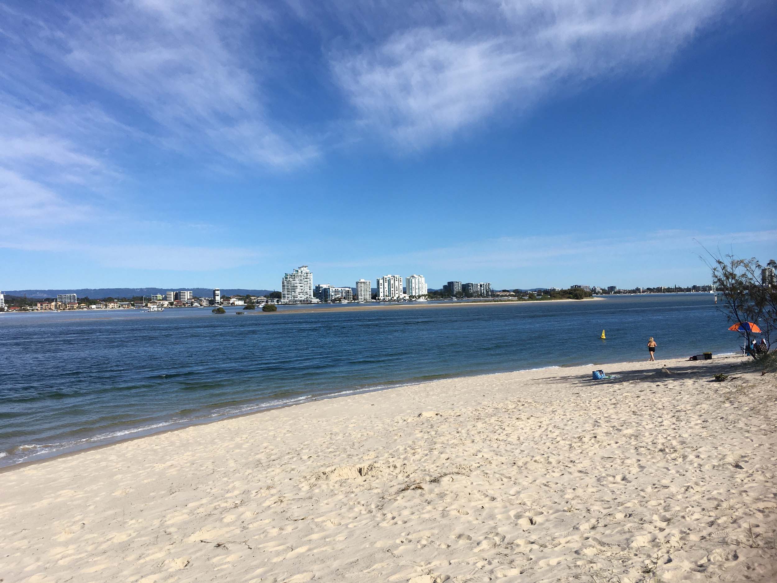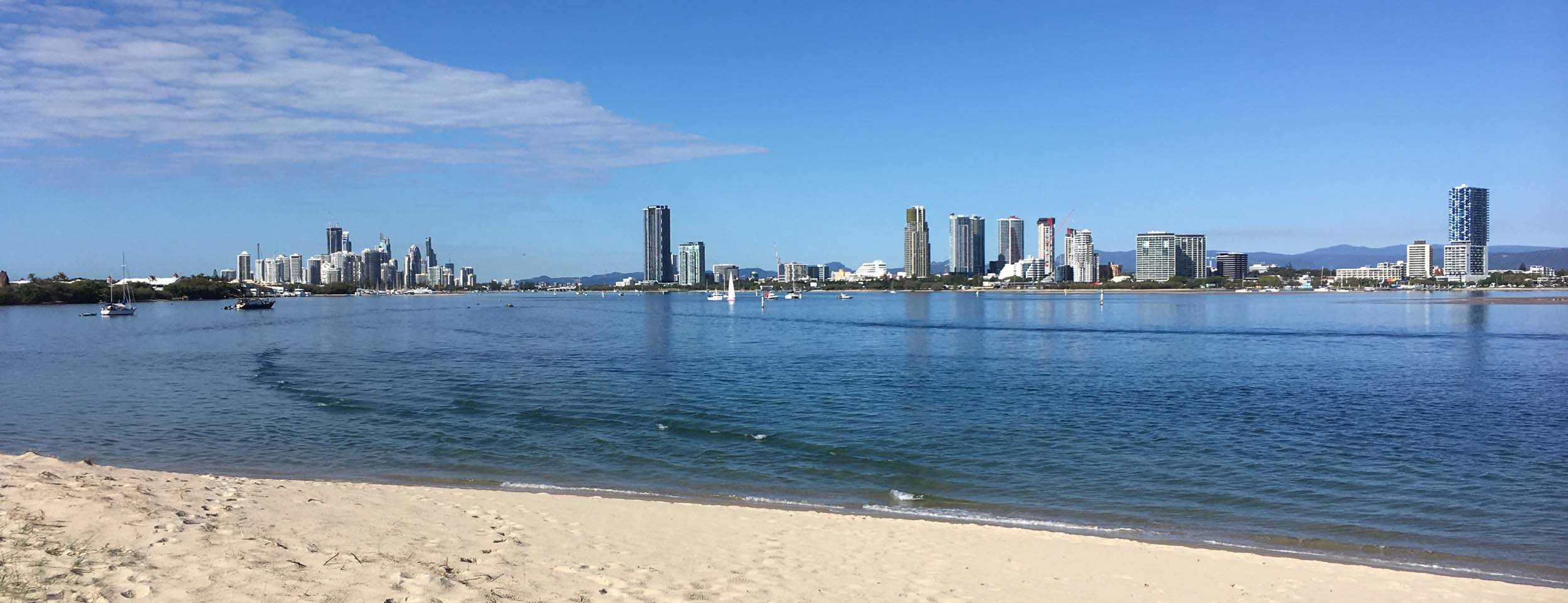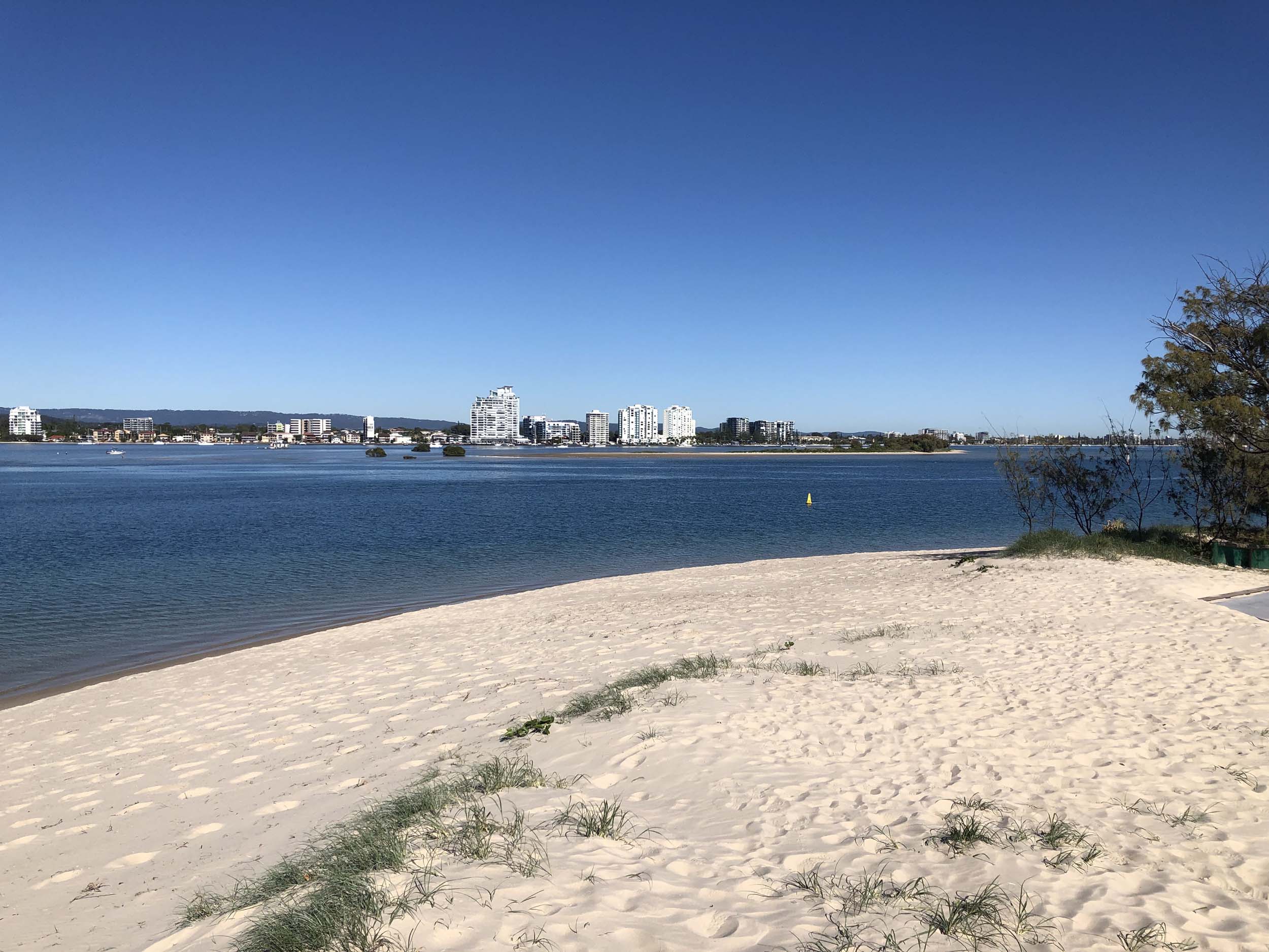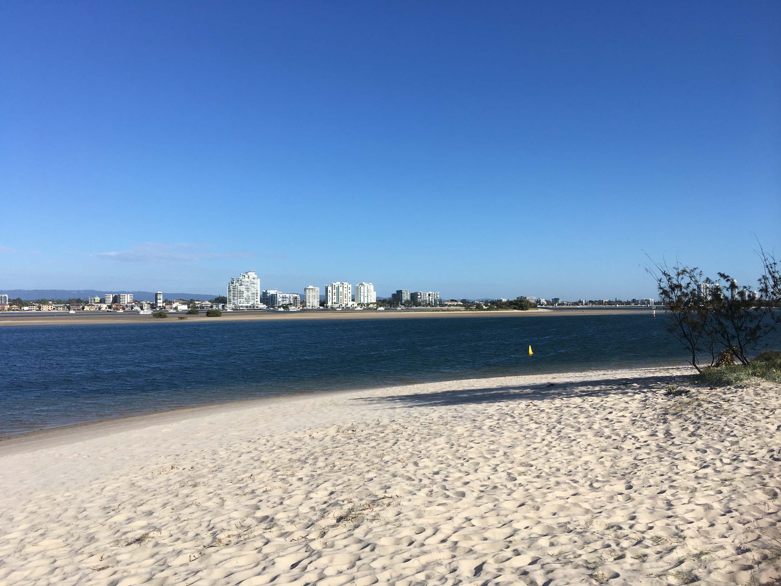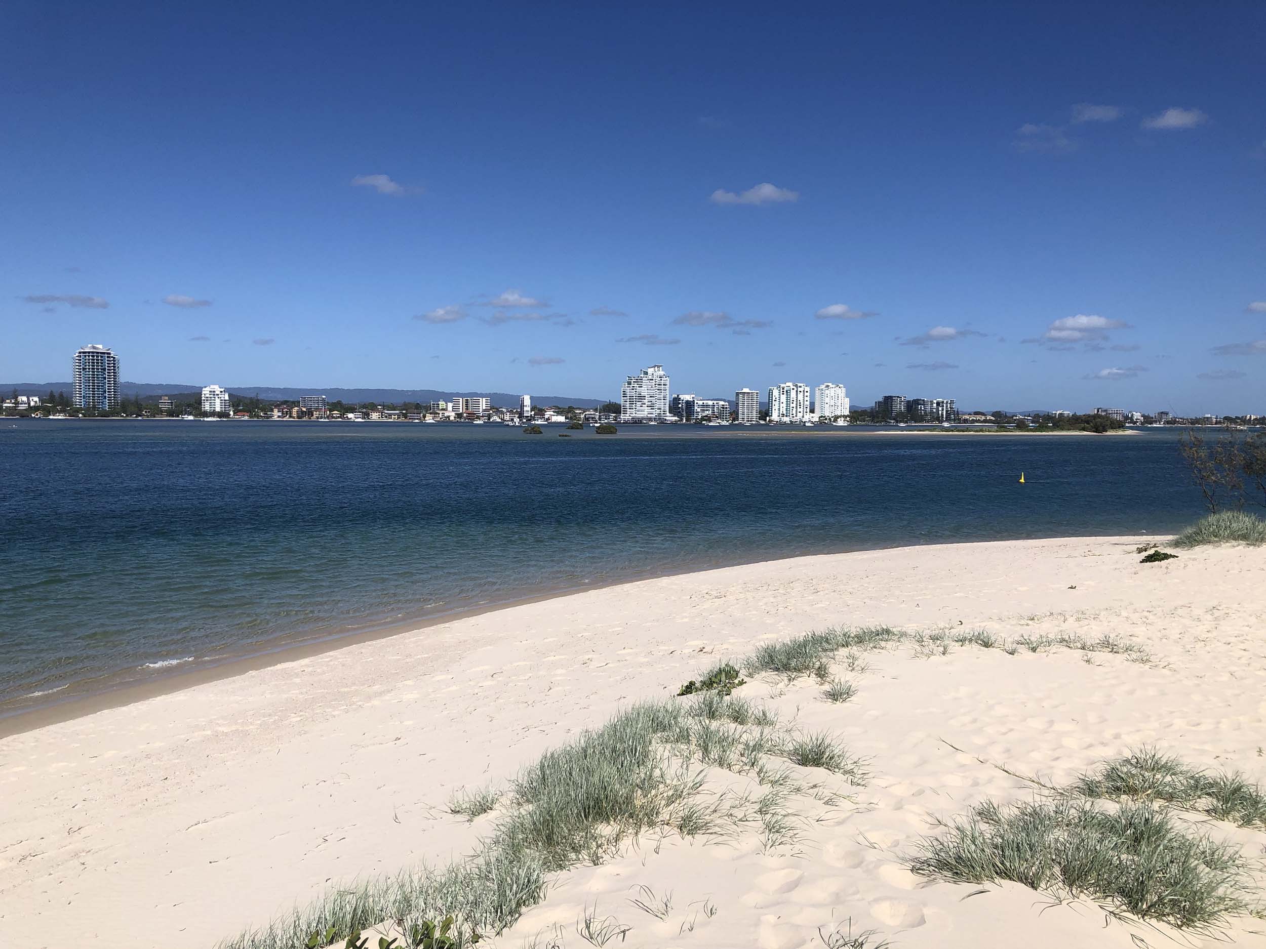 I left home at 7:18am, the breeze was from the South East and building slightly, the Broadwater was slightly choppy.