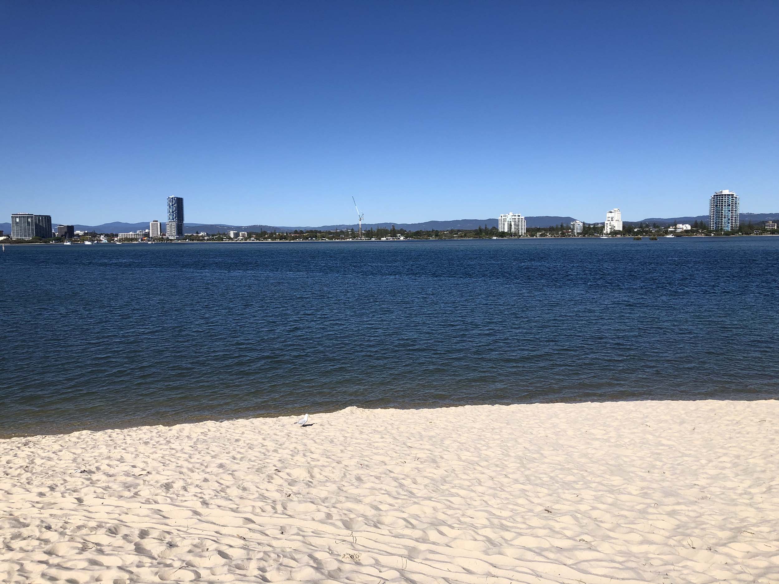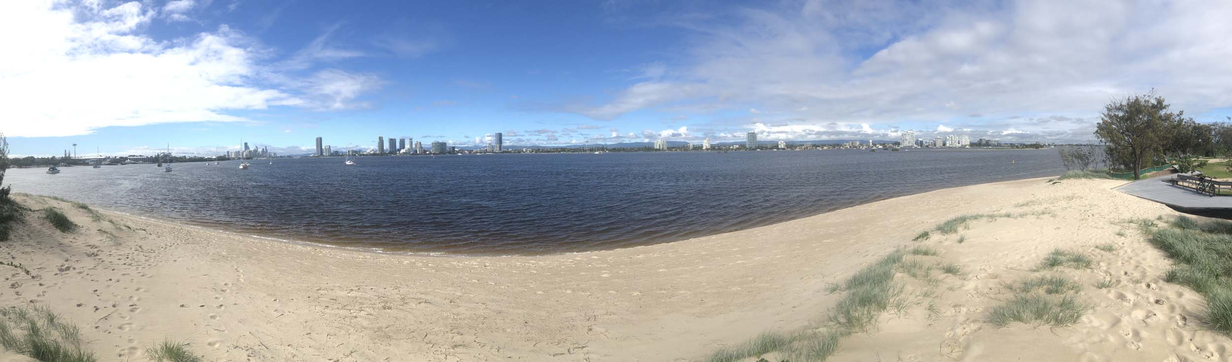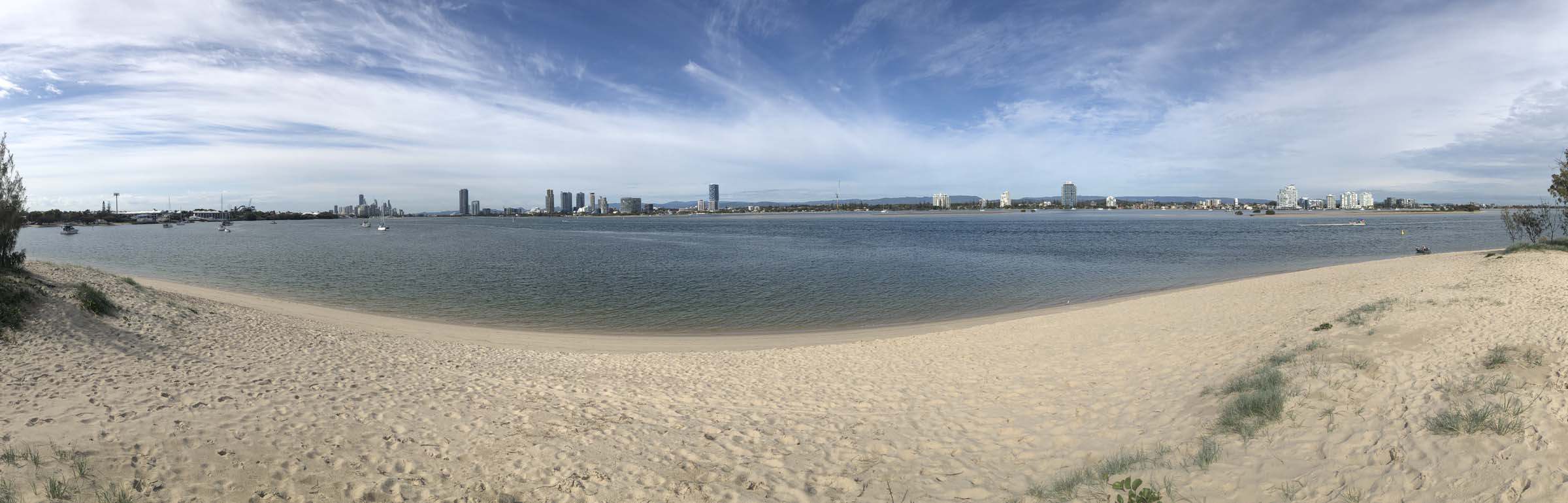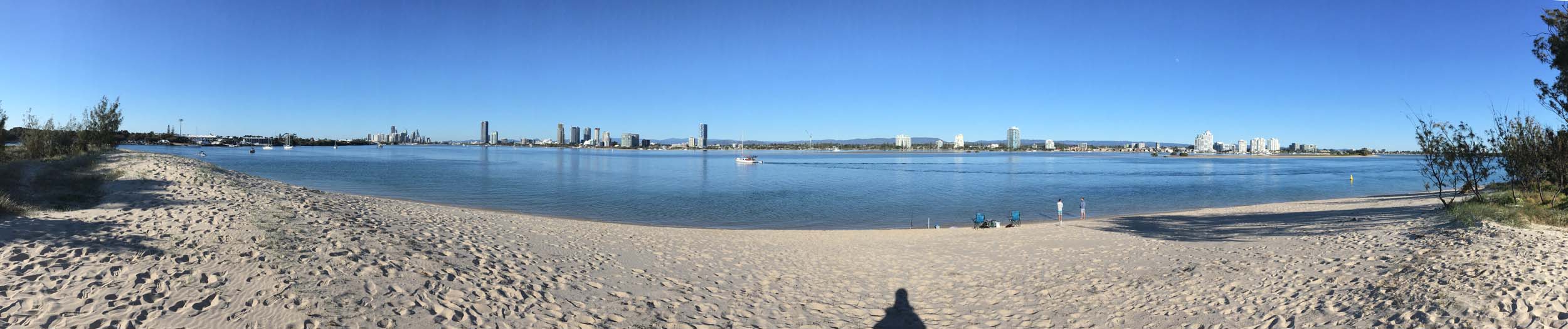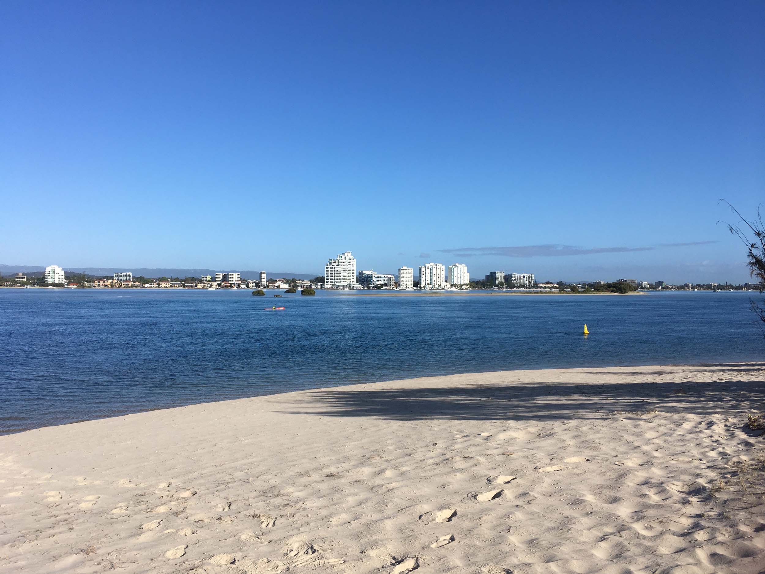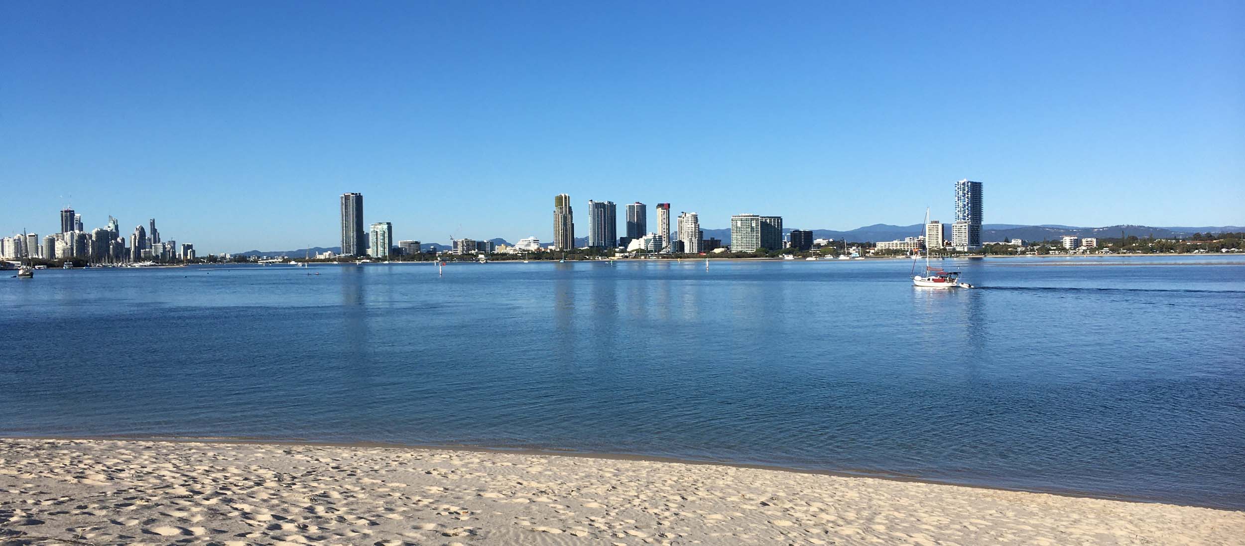 I left home at 7:18am, the breeze was from the South East and building slightly, the Broadwater was slightly choppy.