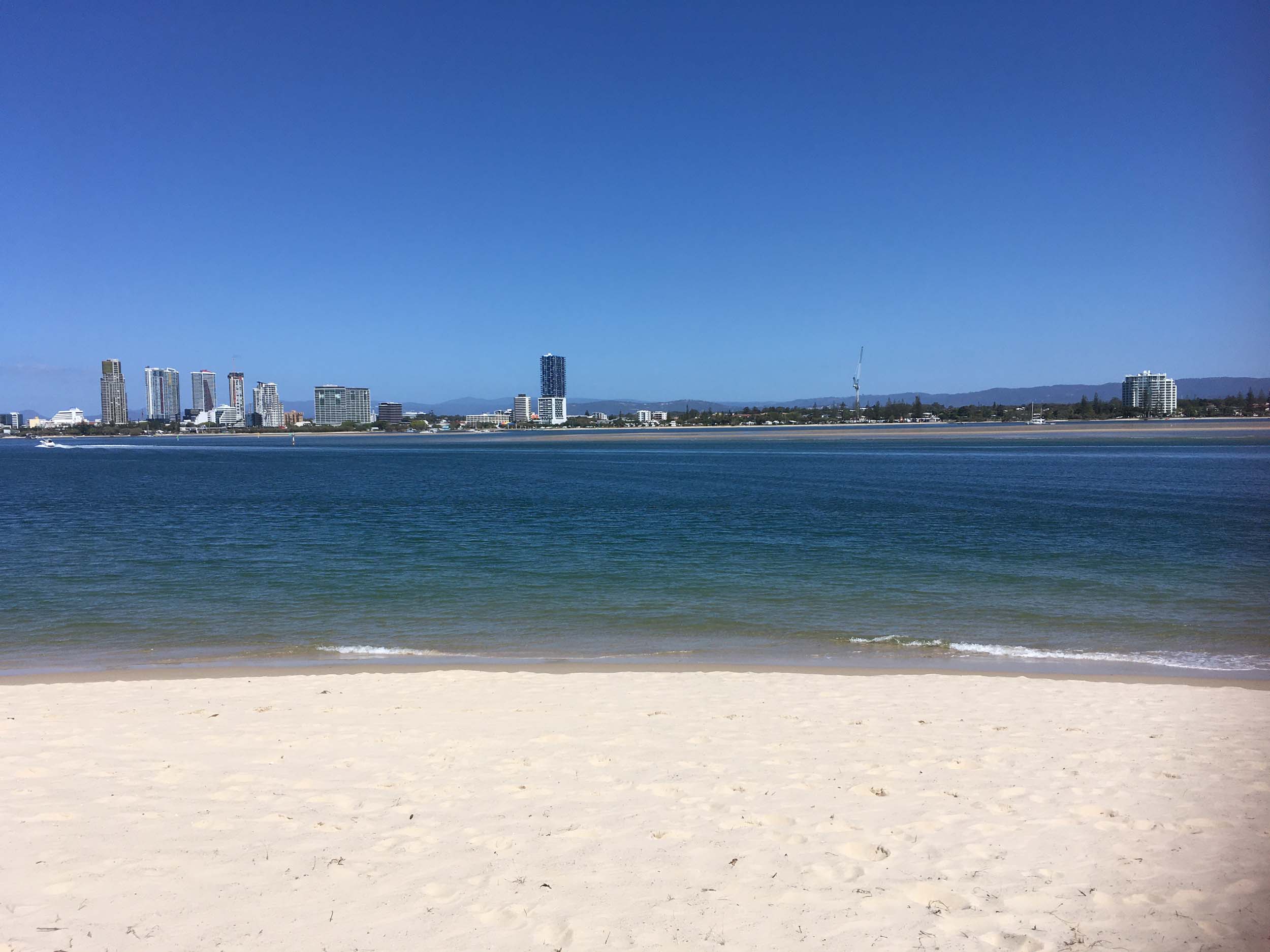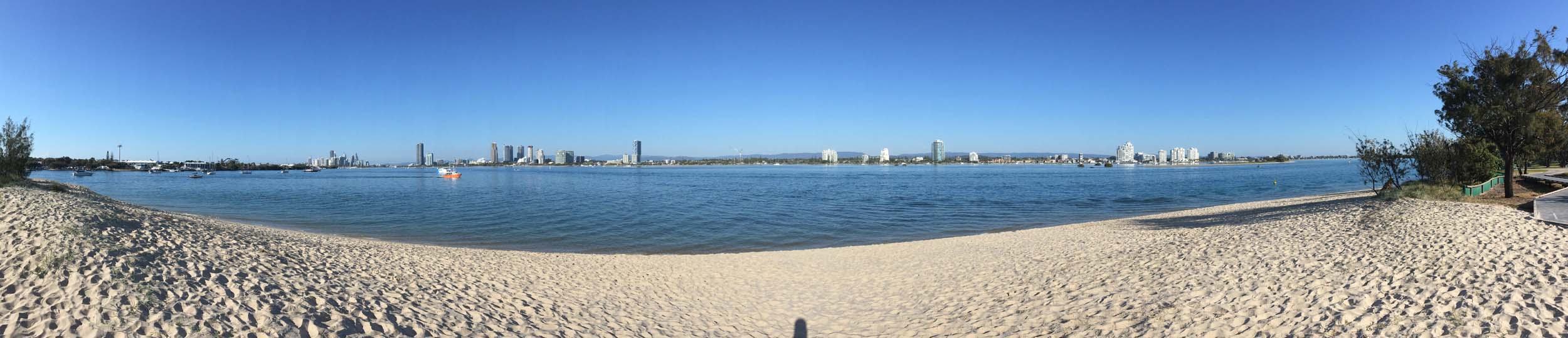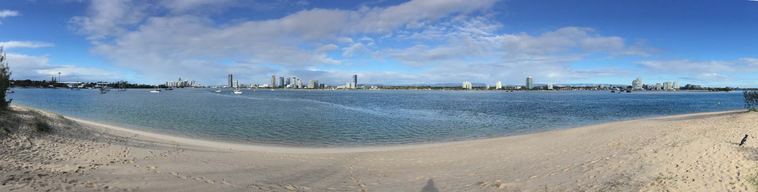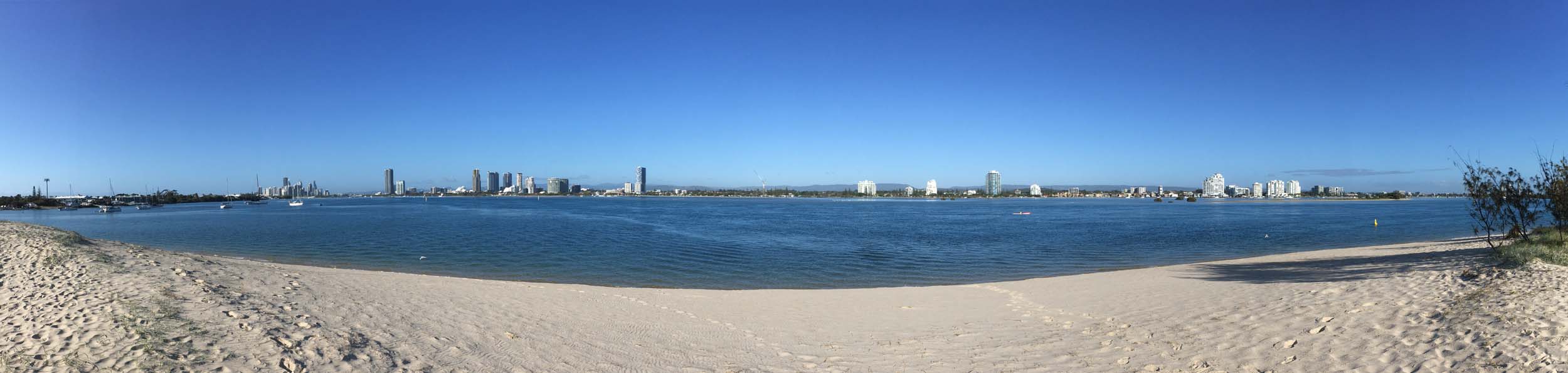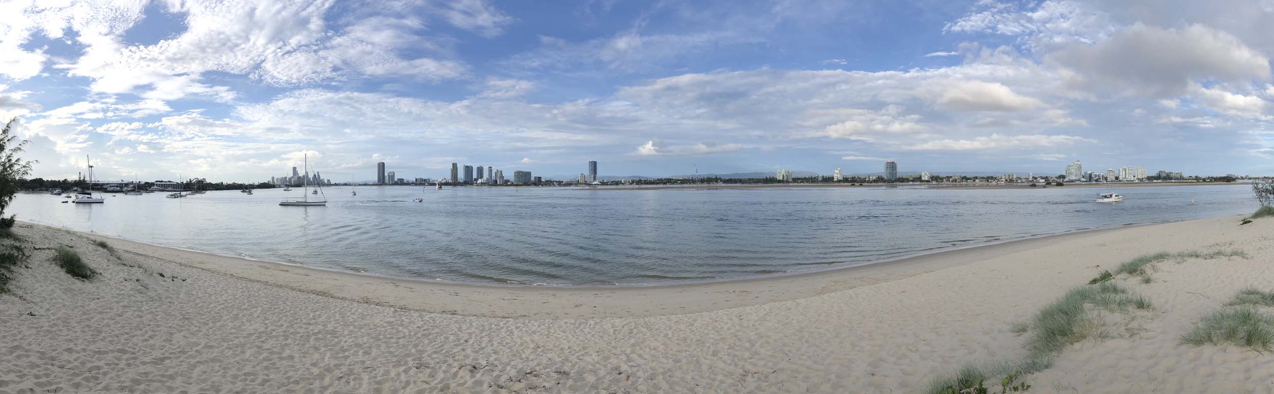 I left home at 7:18am, the breeze was from the South East and building slightly, the Broadwater was slightly choppy.