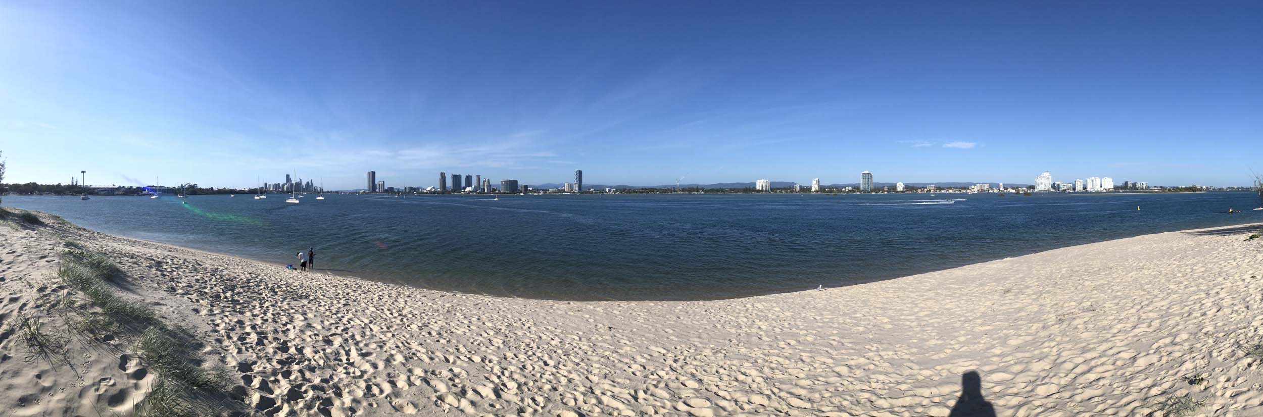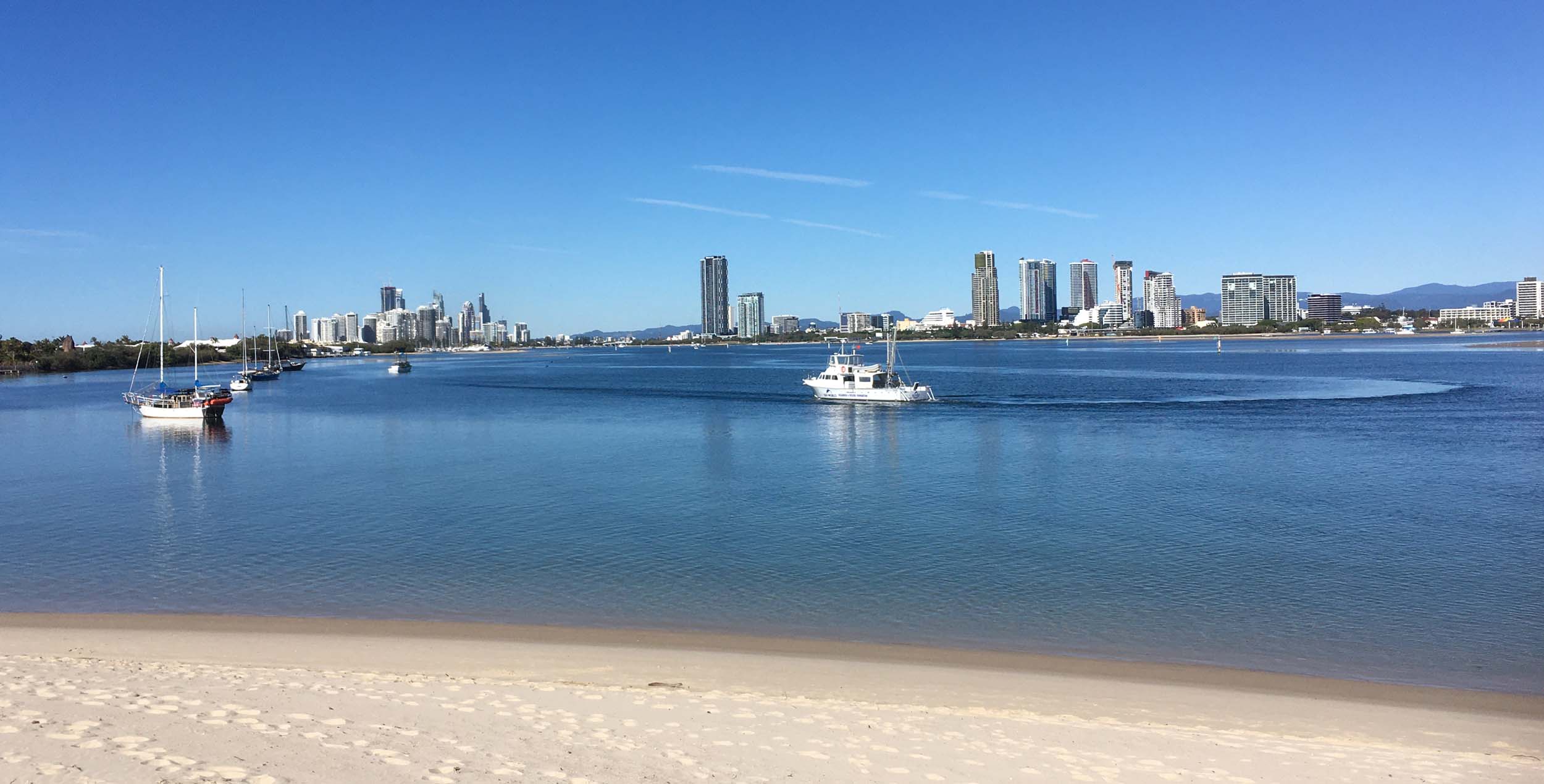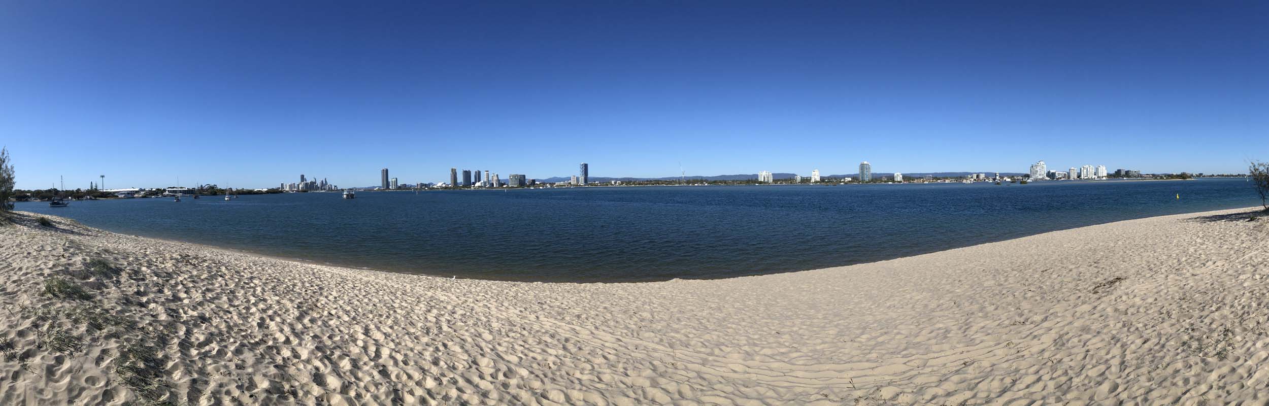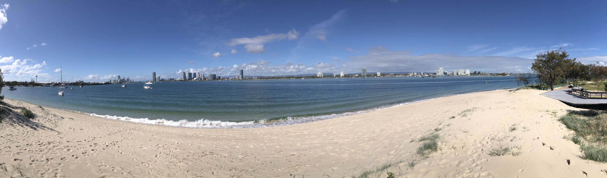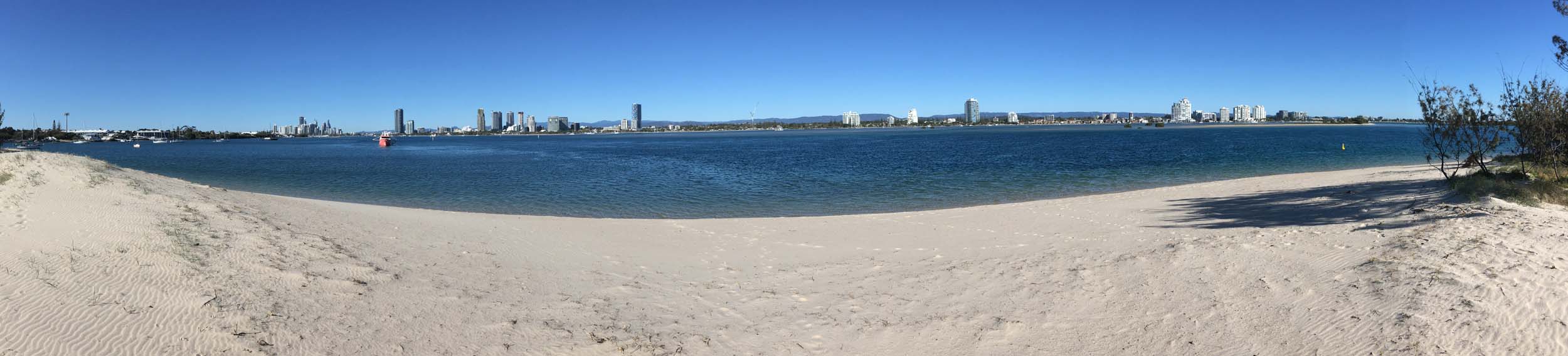I left home at 7:18am, the breeze was from the South East and building slightly, the Broadwater was slightly choppy.