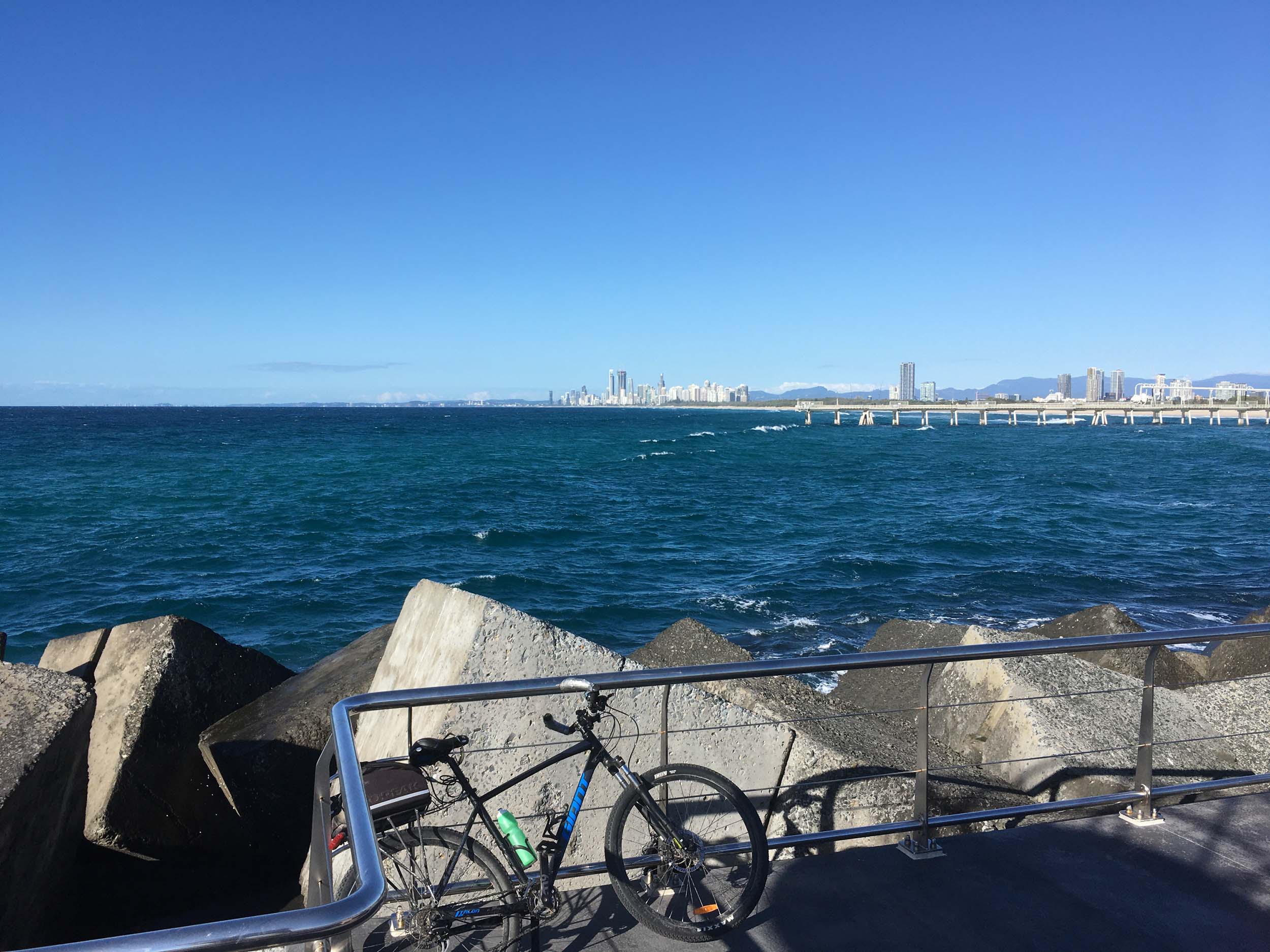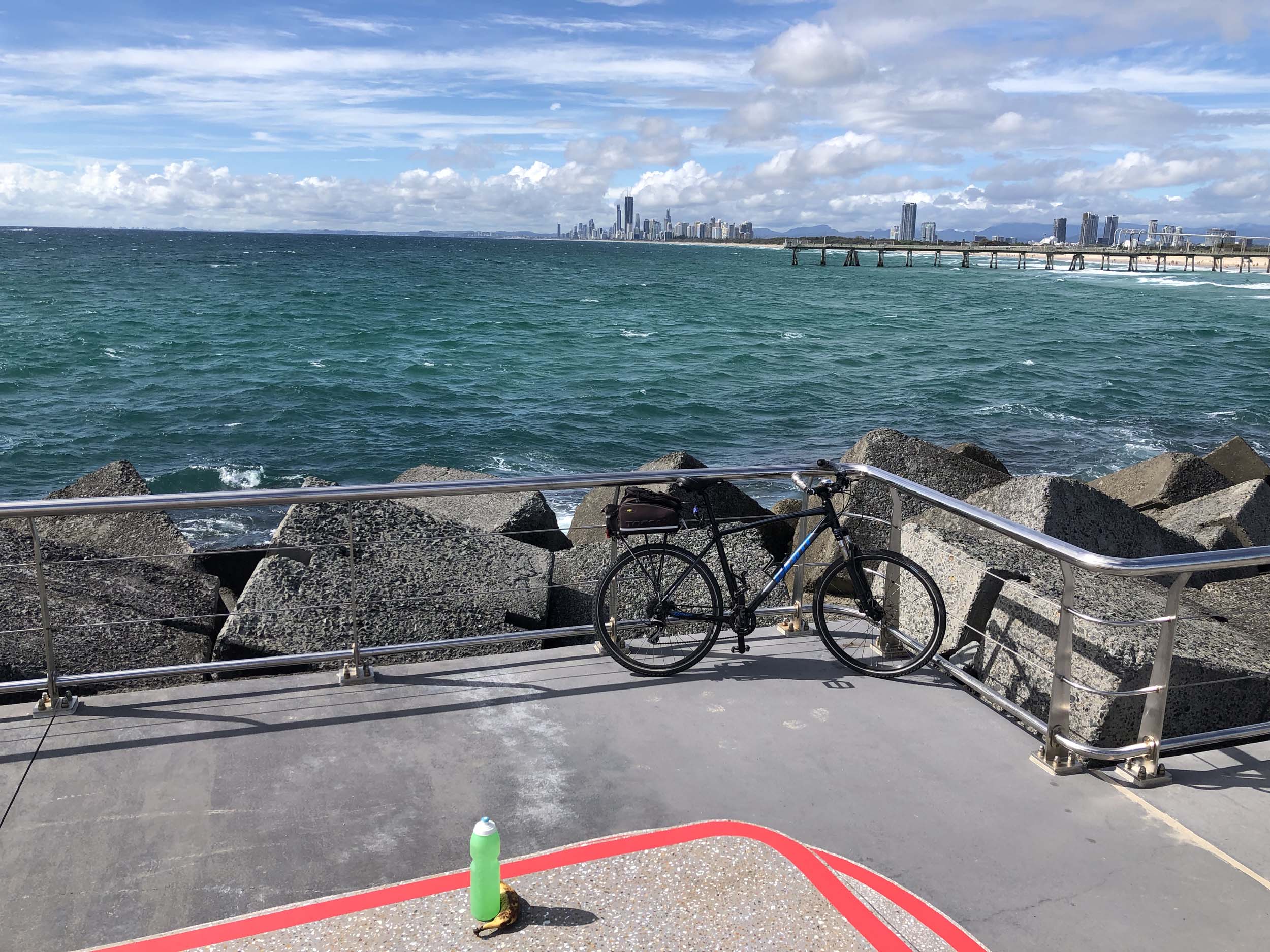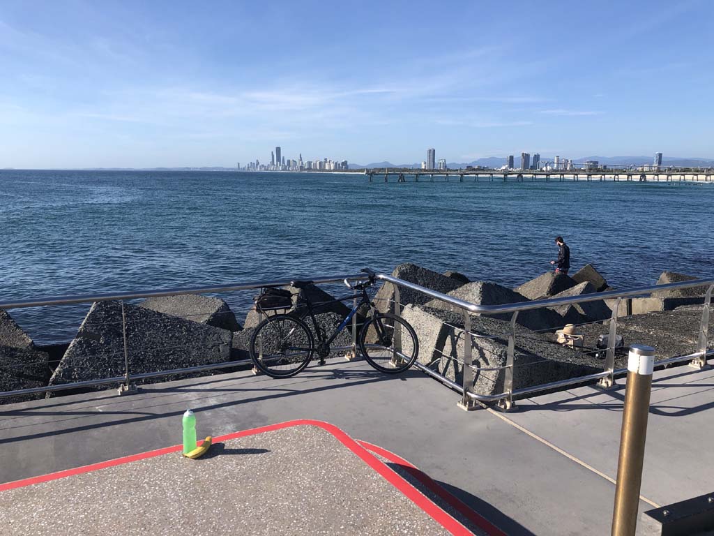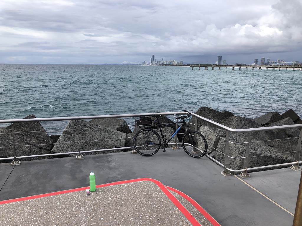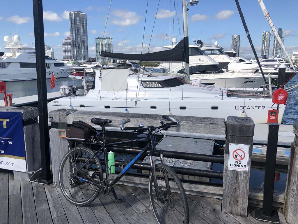 I rode around Marina Mirage and the jetty. Australia has left the dock.