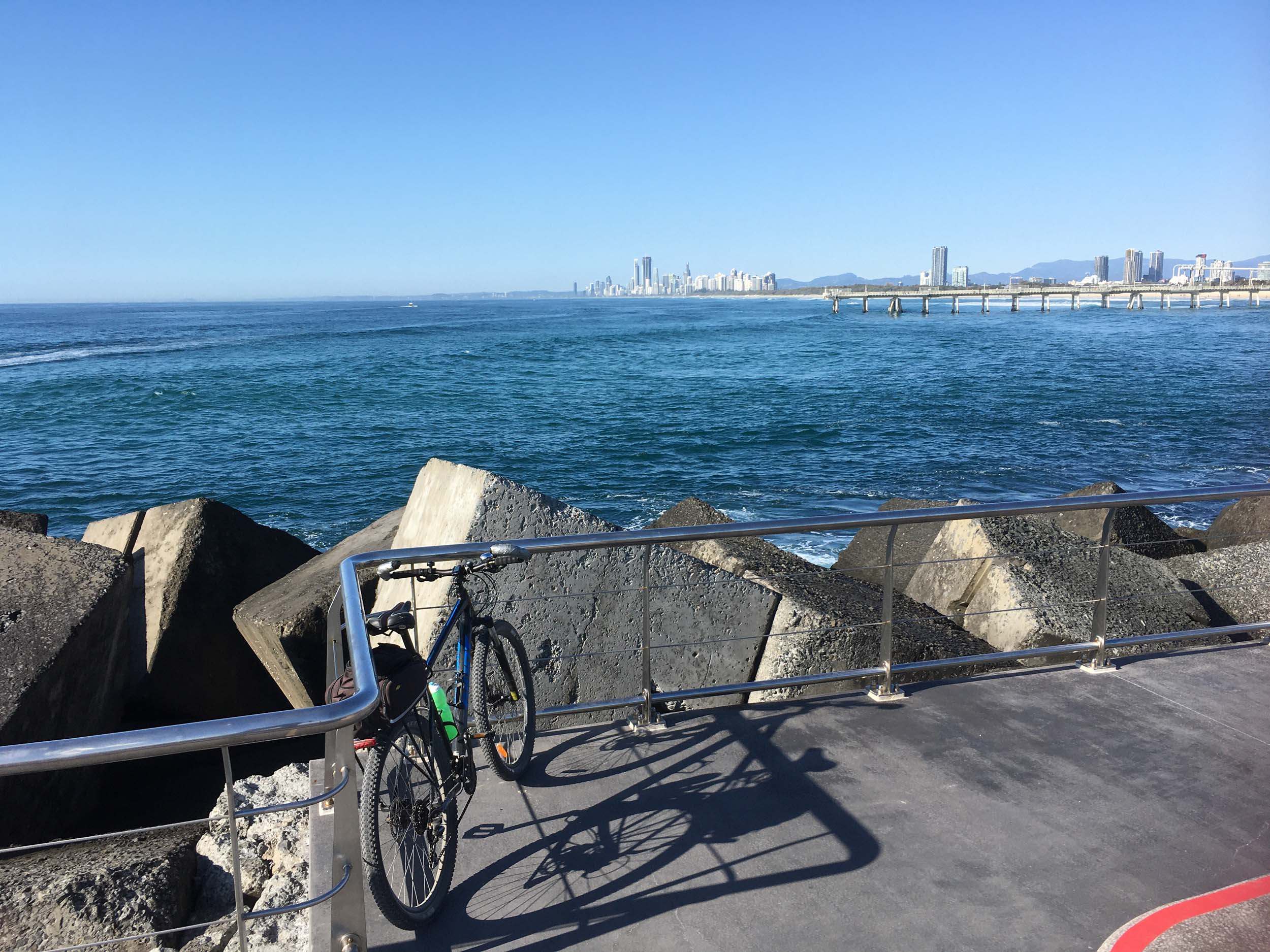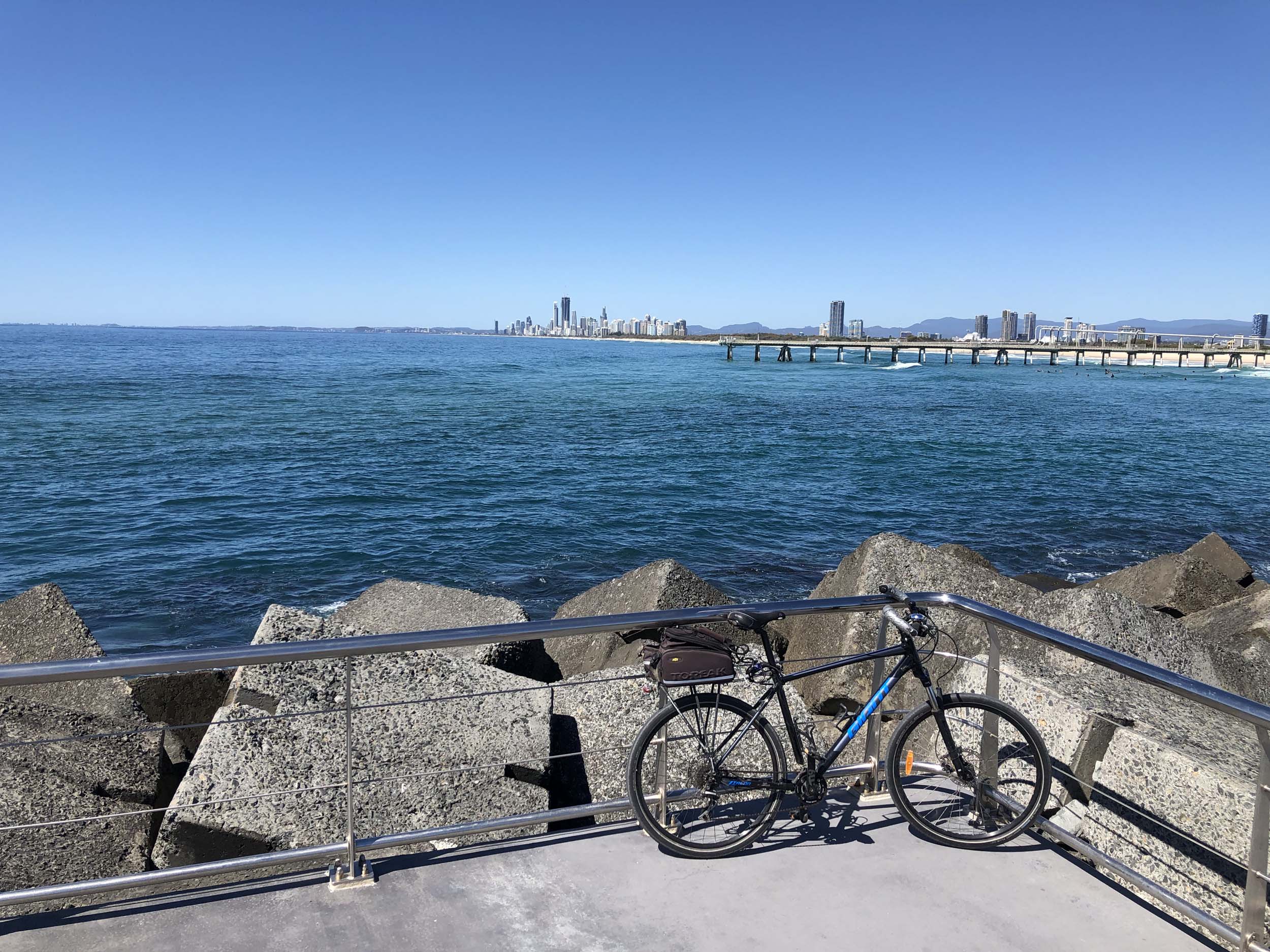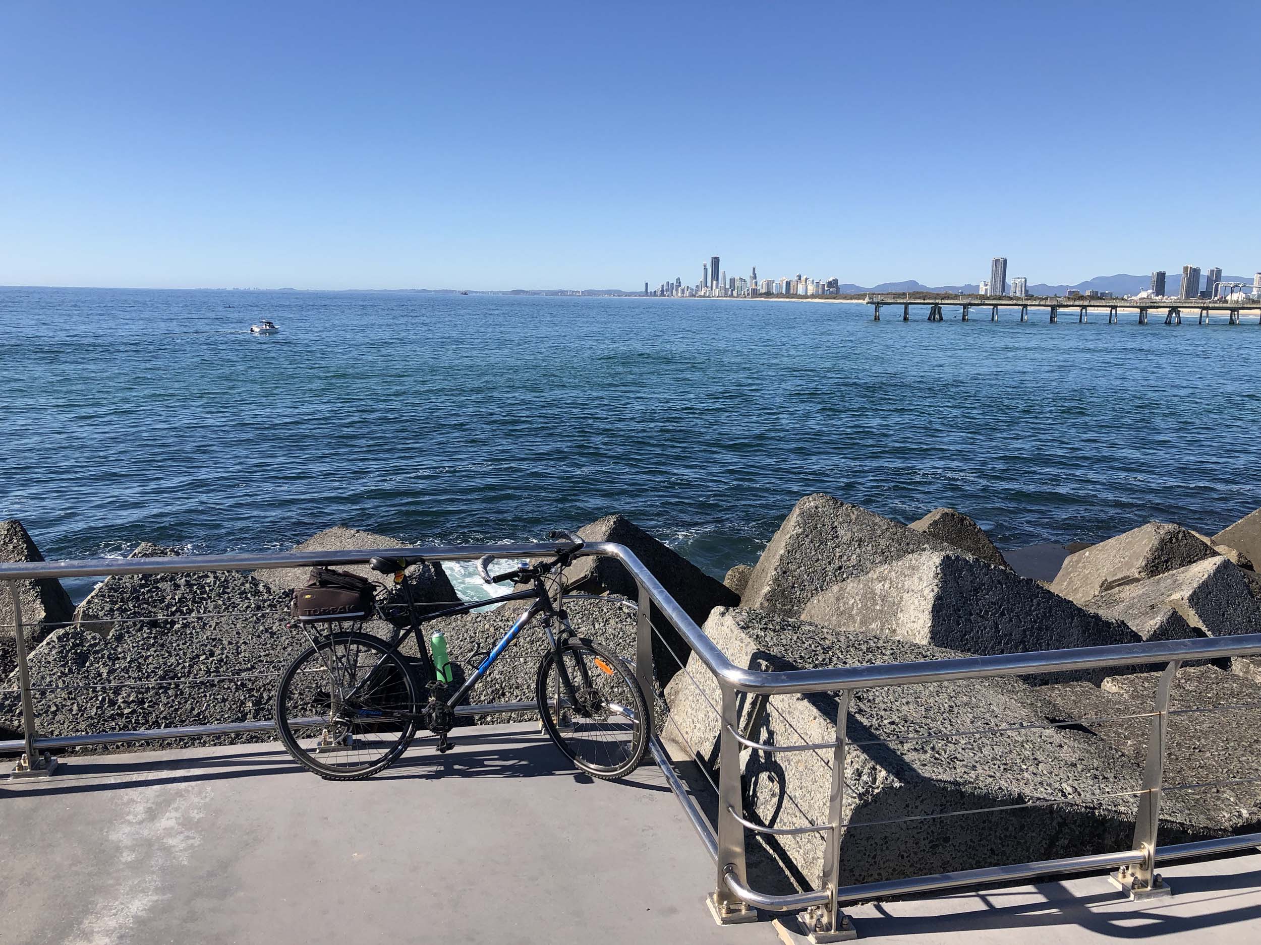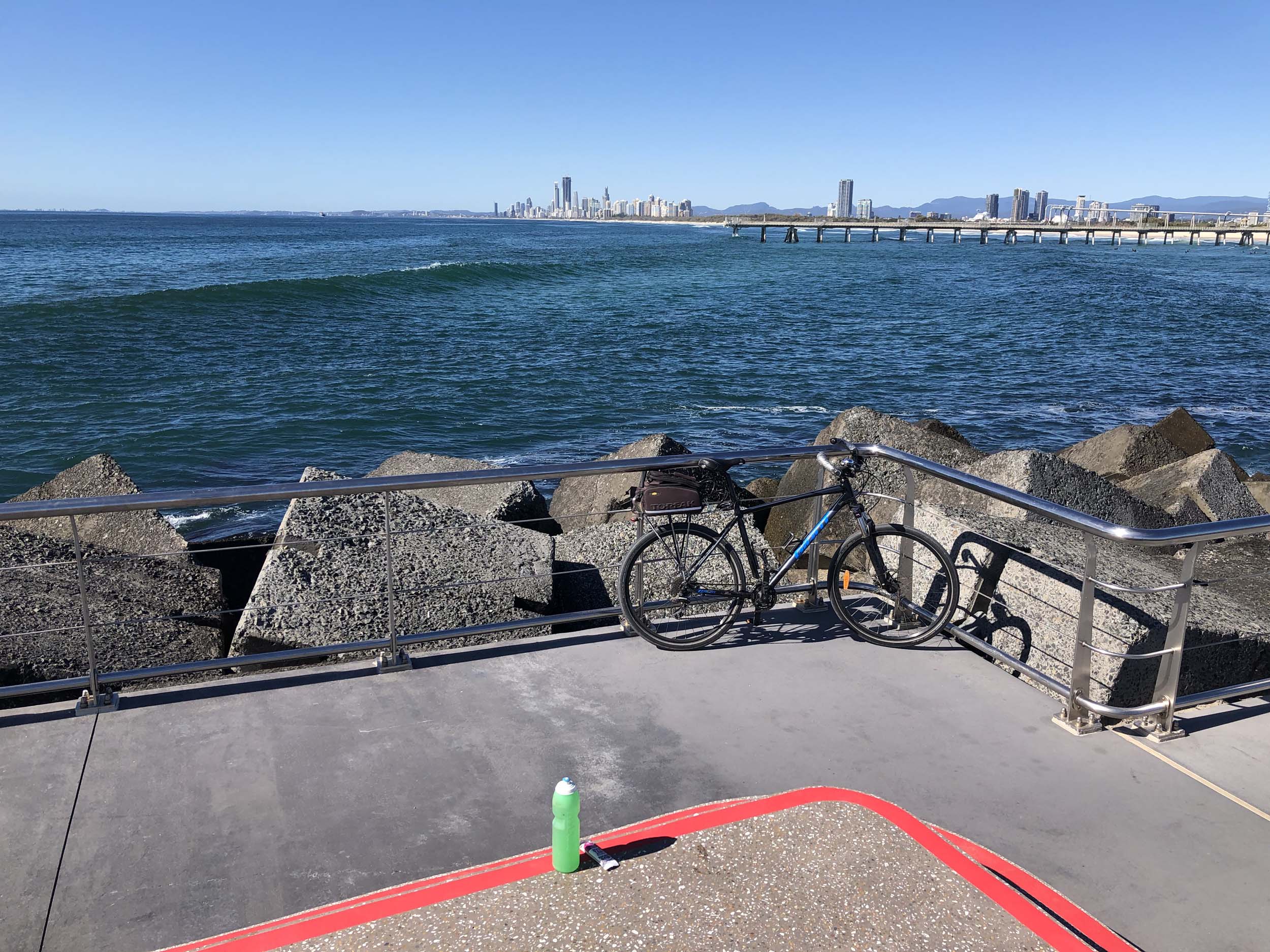 I rode around Marina Mirage and the jetty. Australia has left the dock.