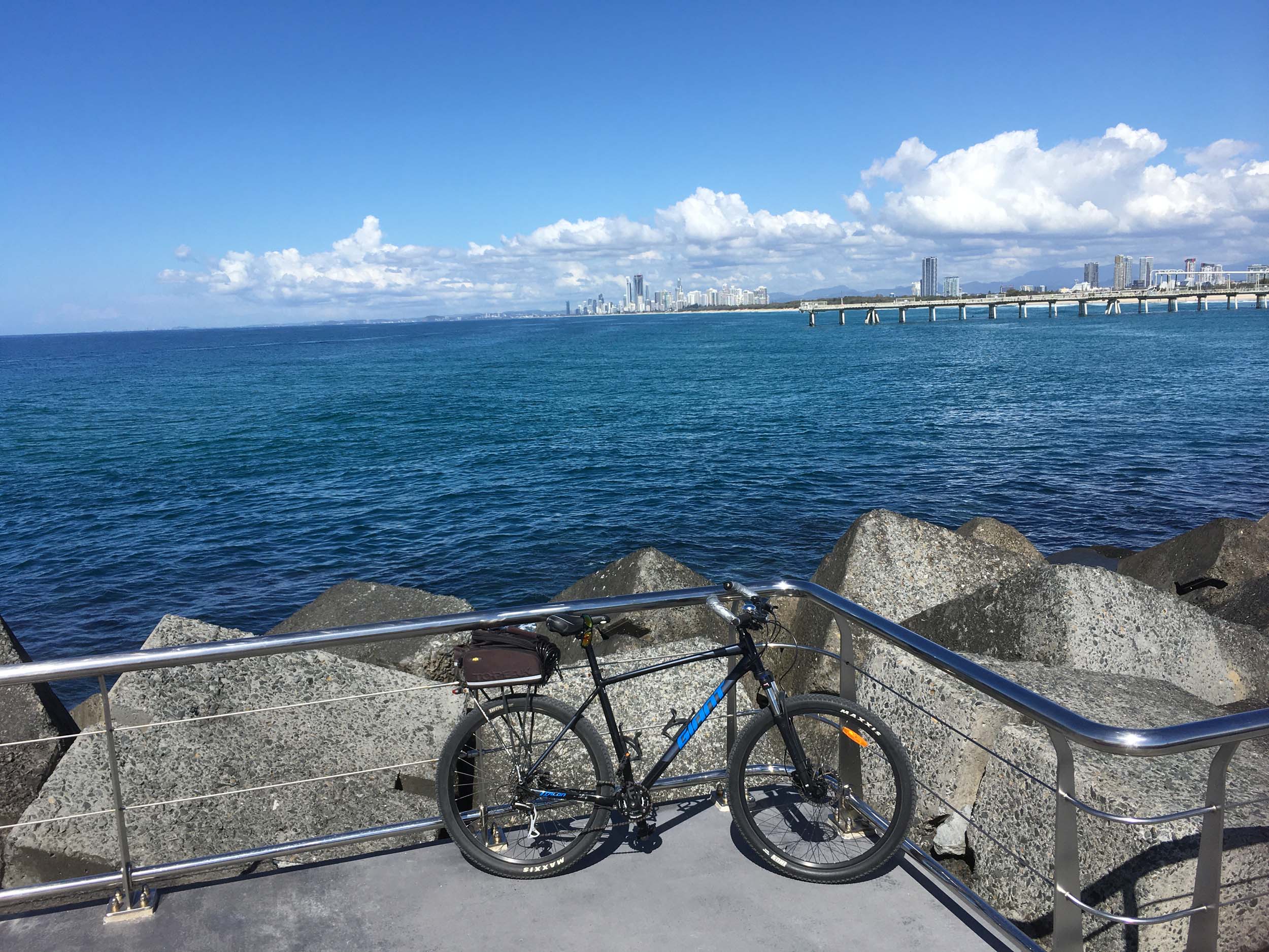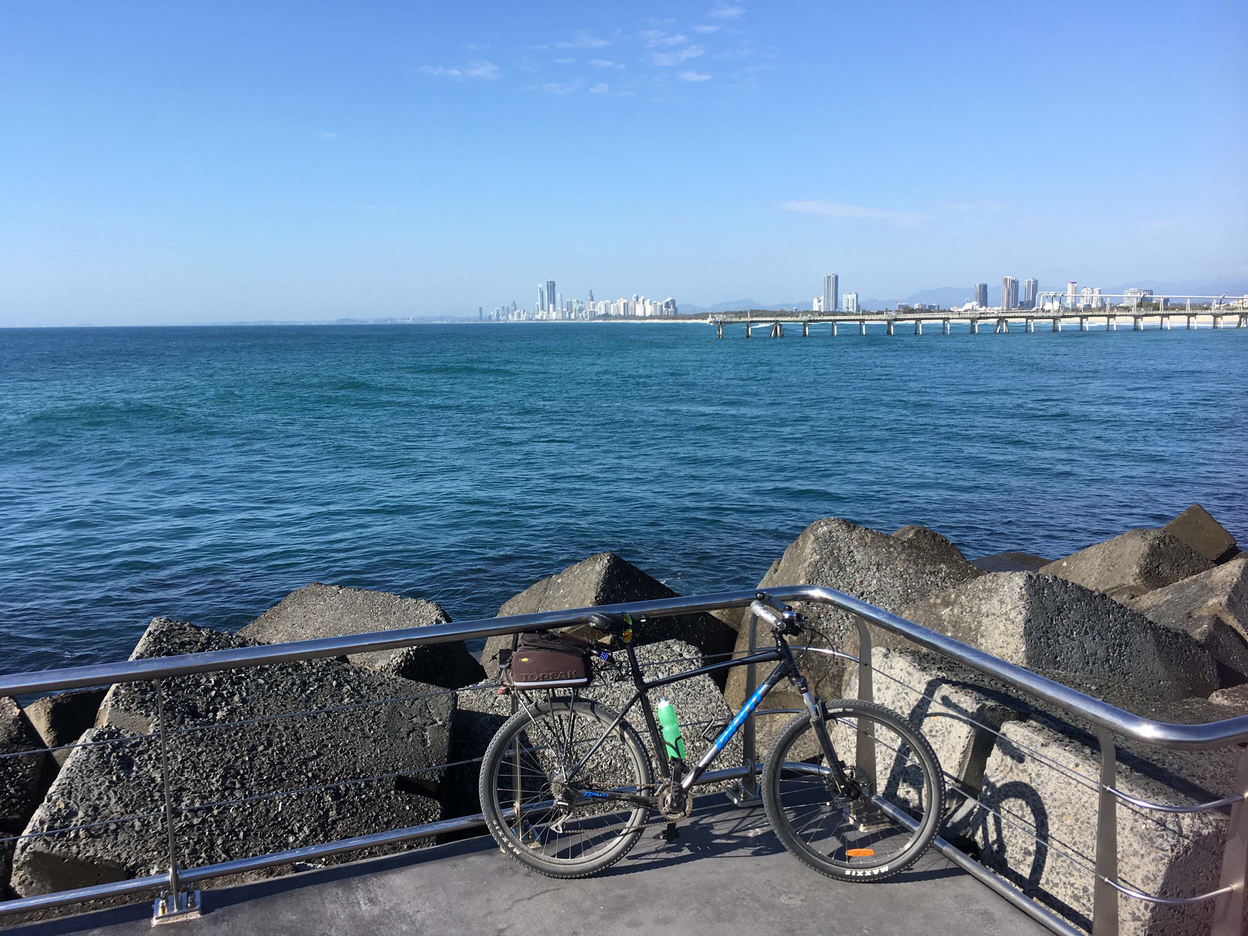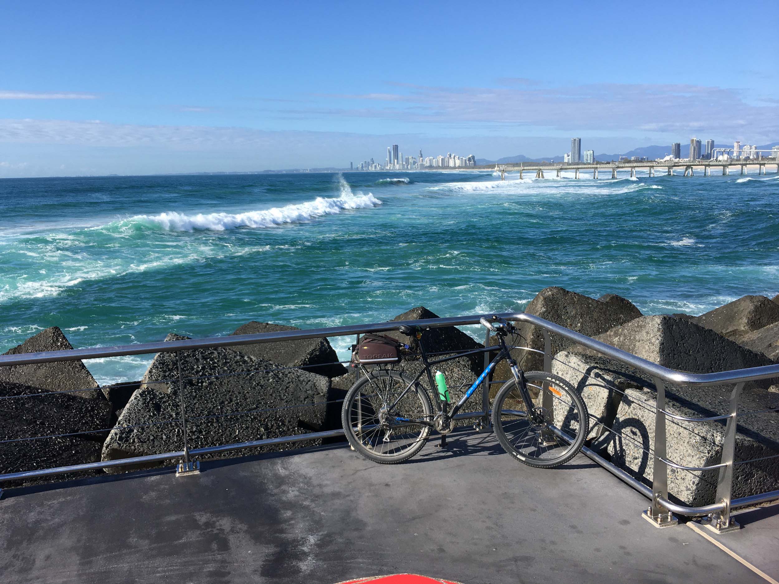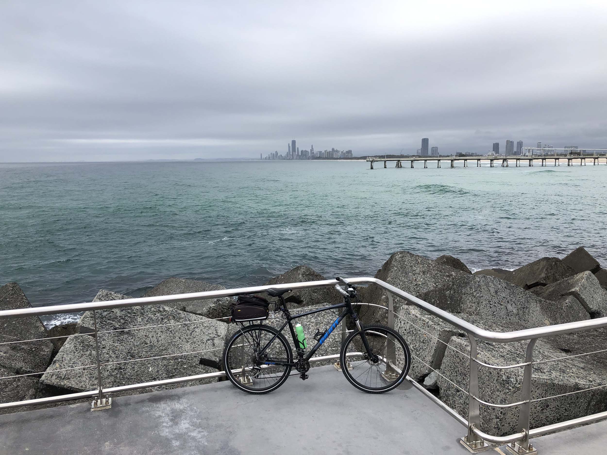 I rode around Marina Mirage and the jetty. Australia has left the dock.