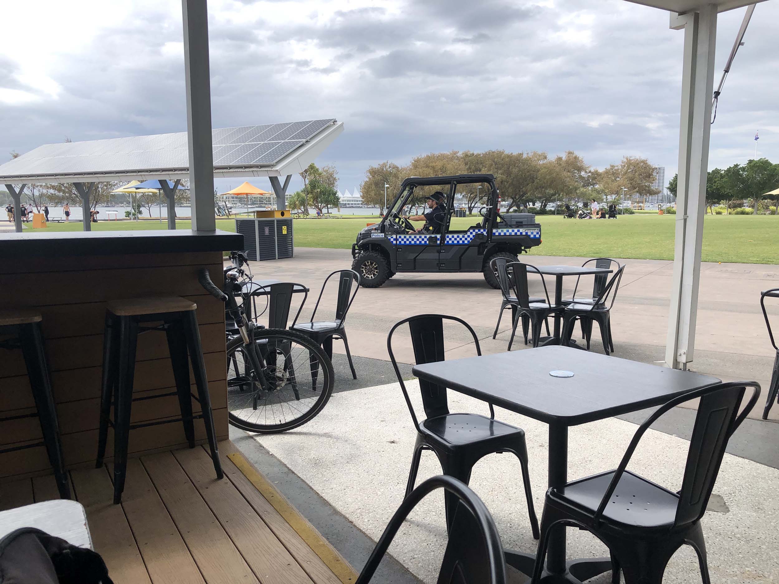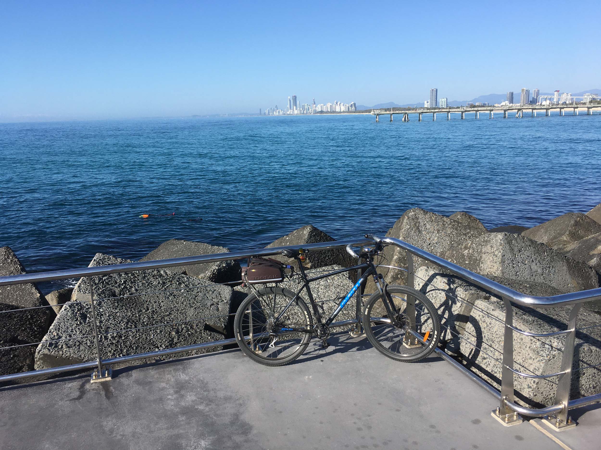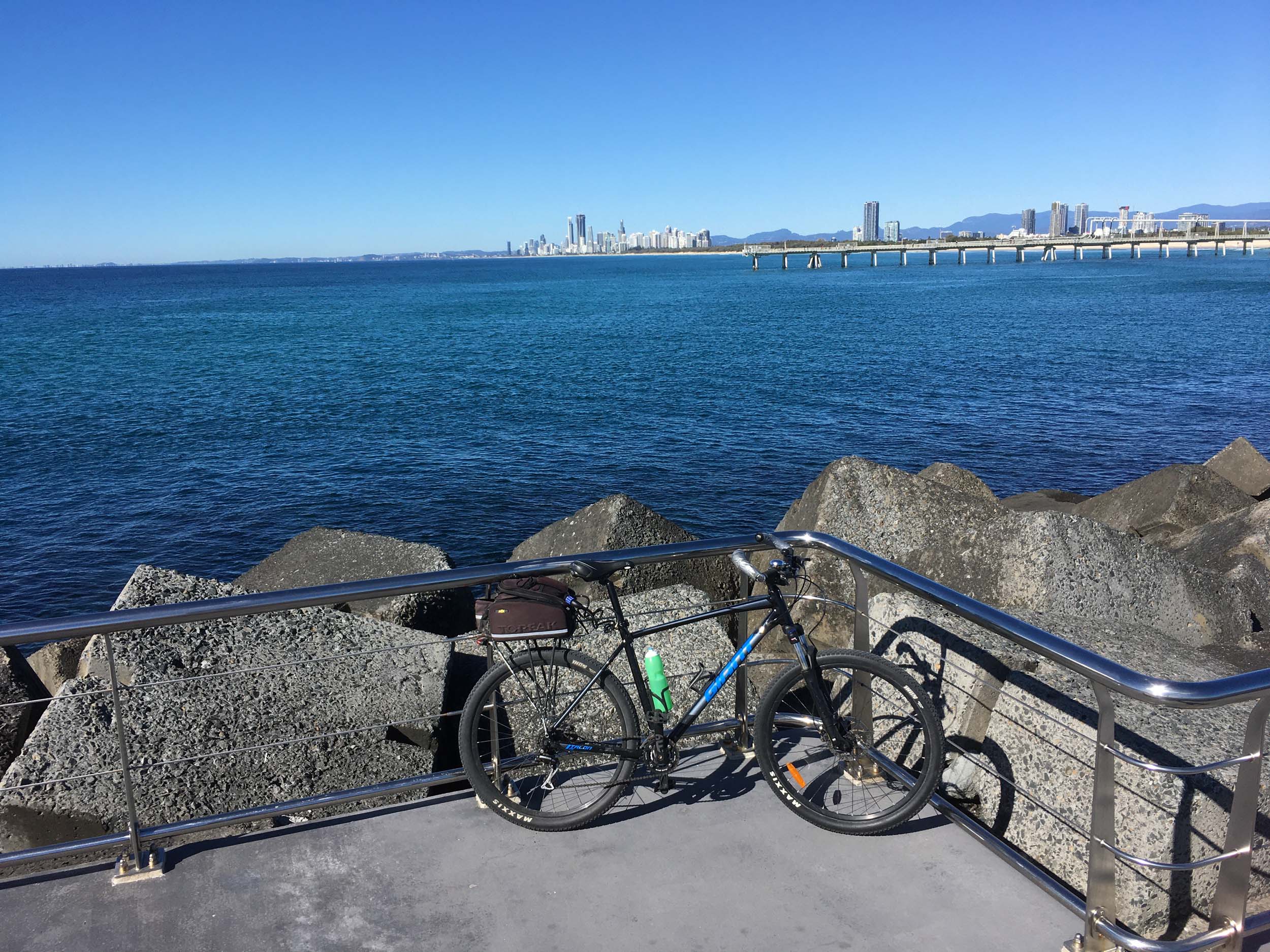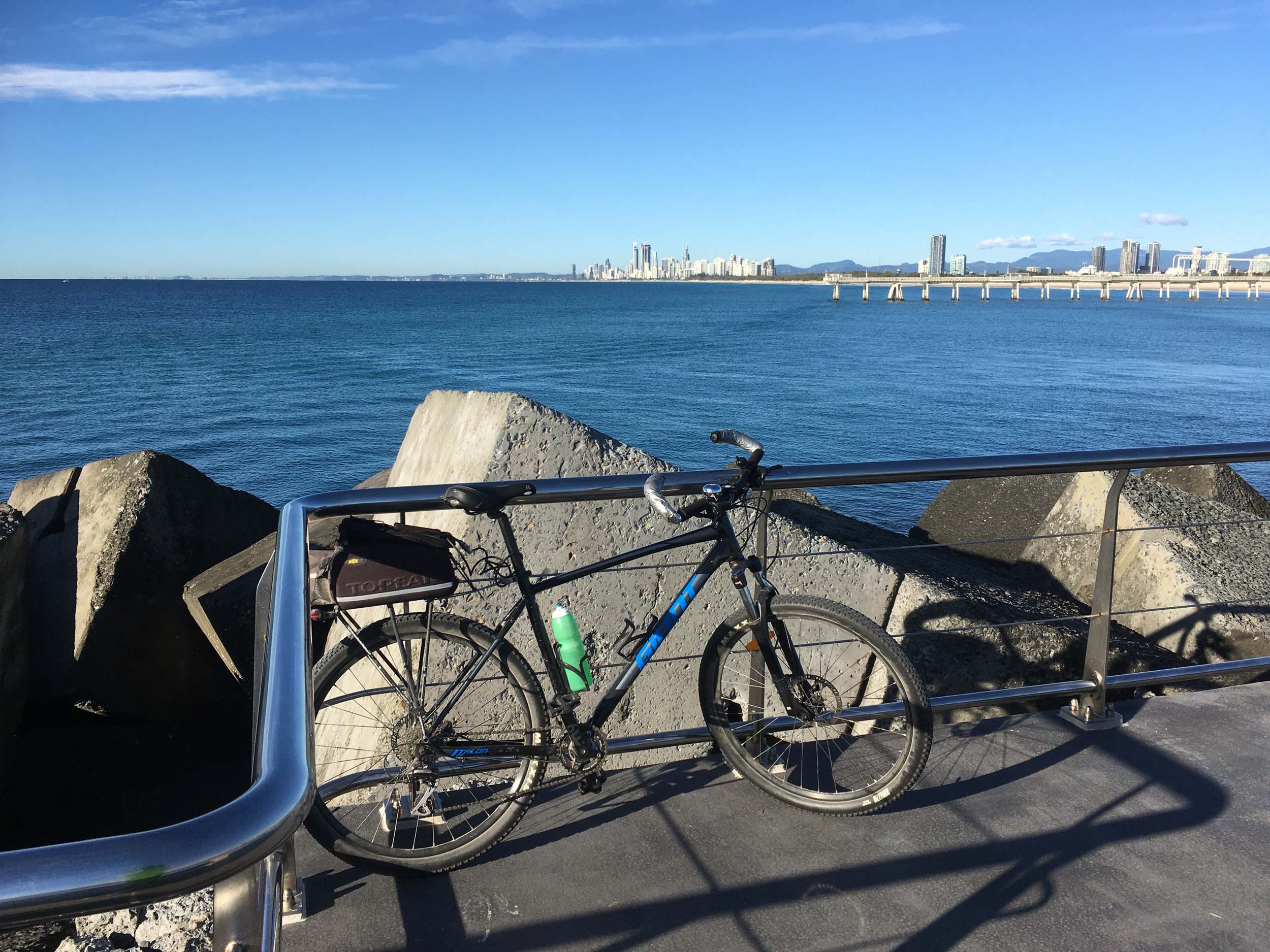 I rode around Marina Mirage and the jetty. Australia has left the dock.