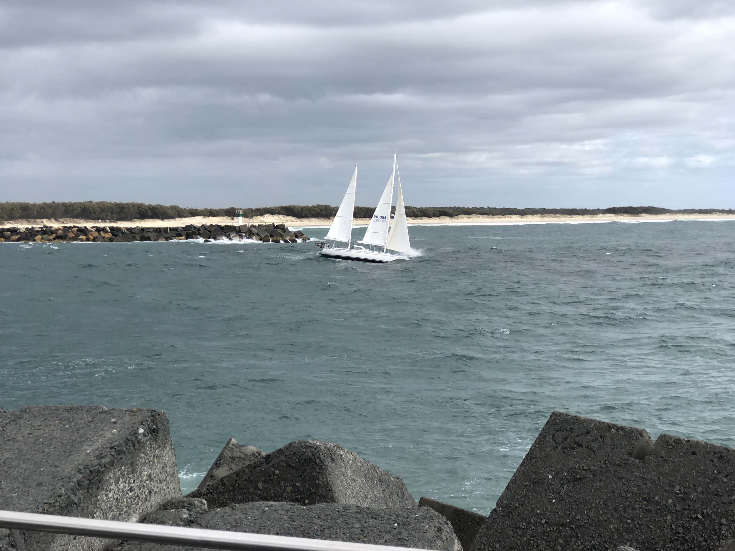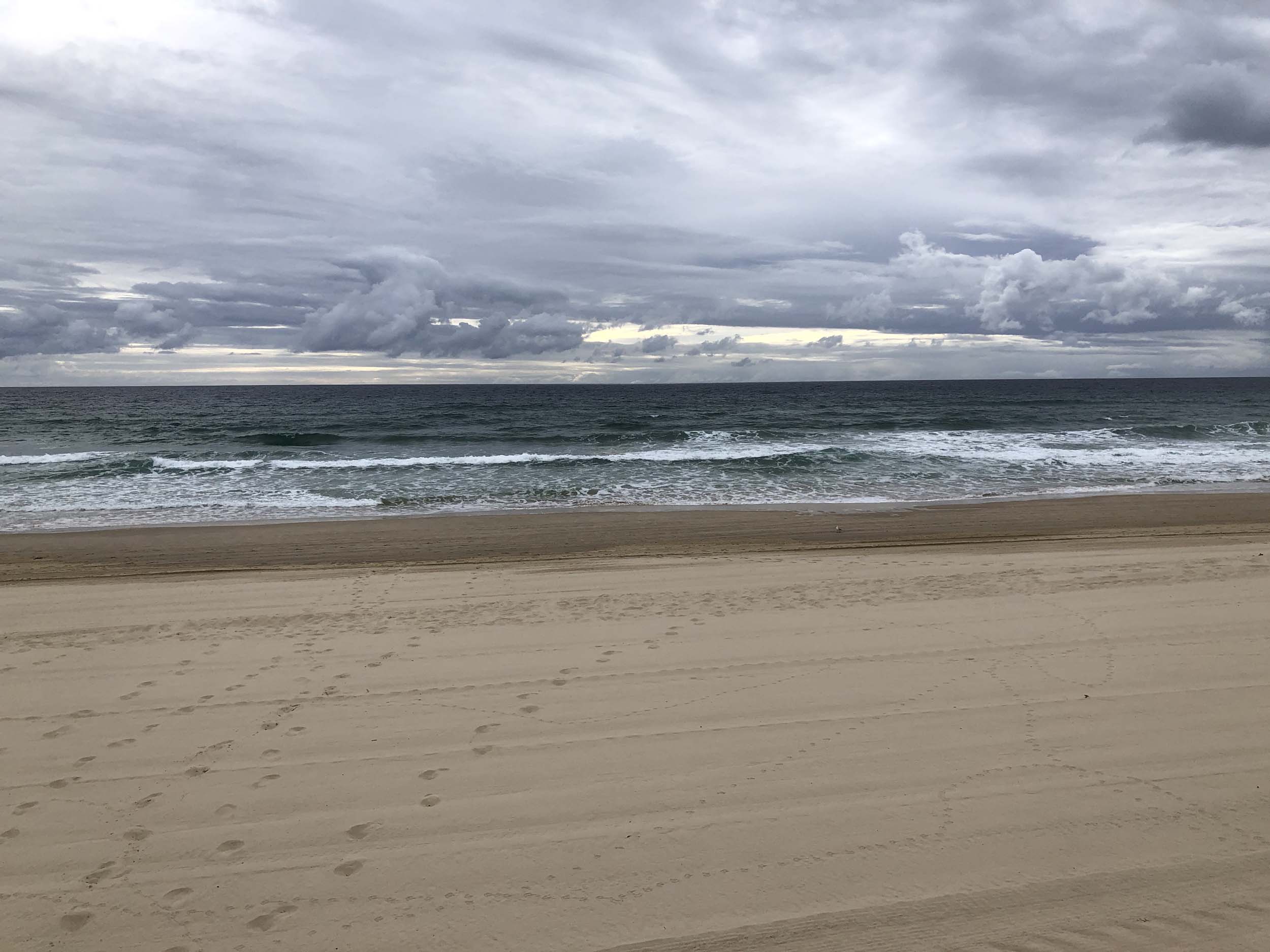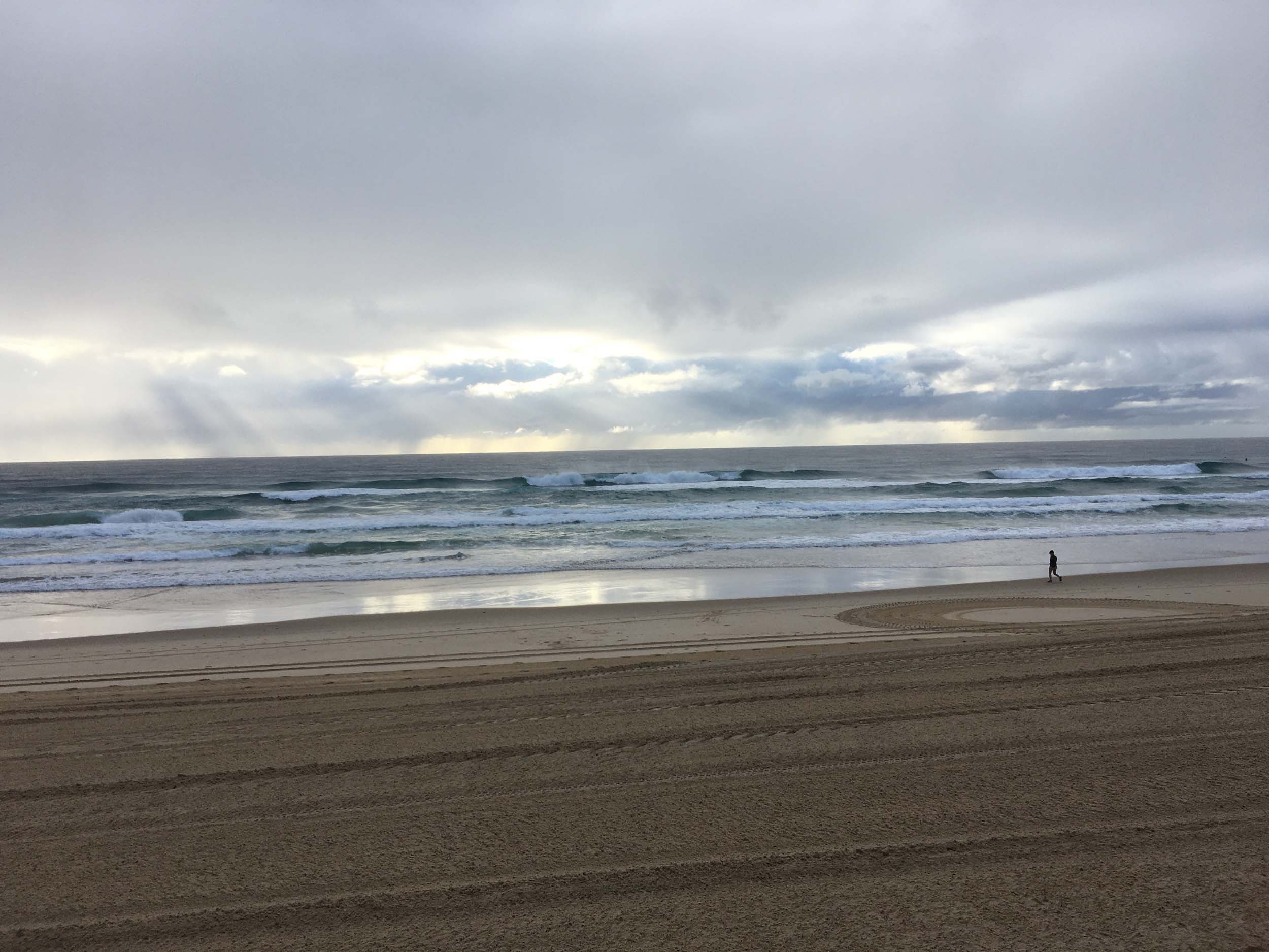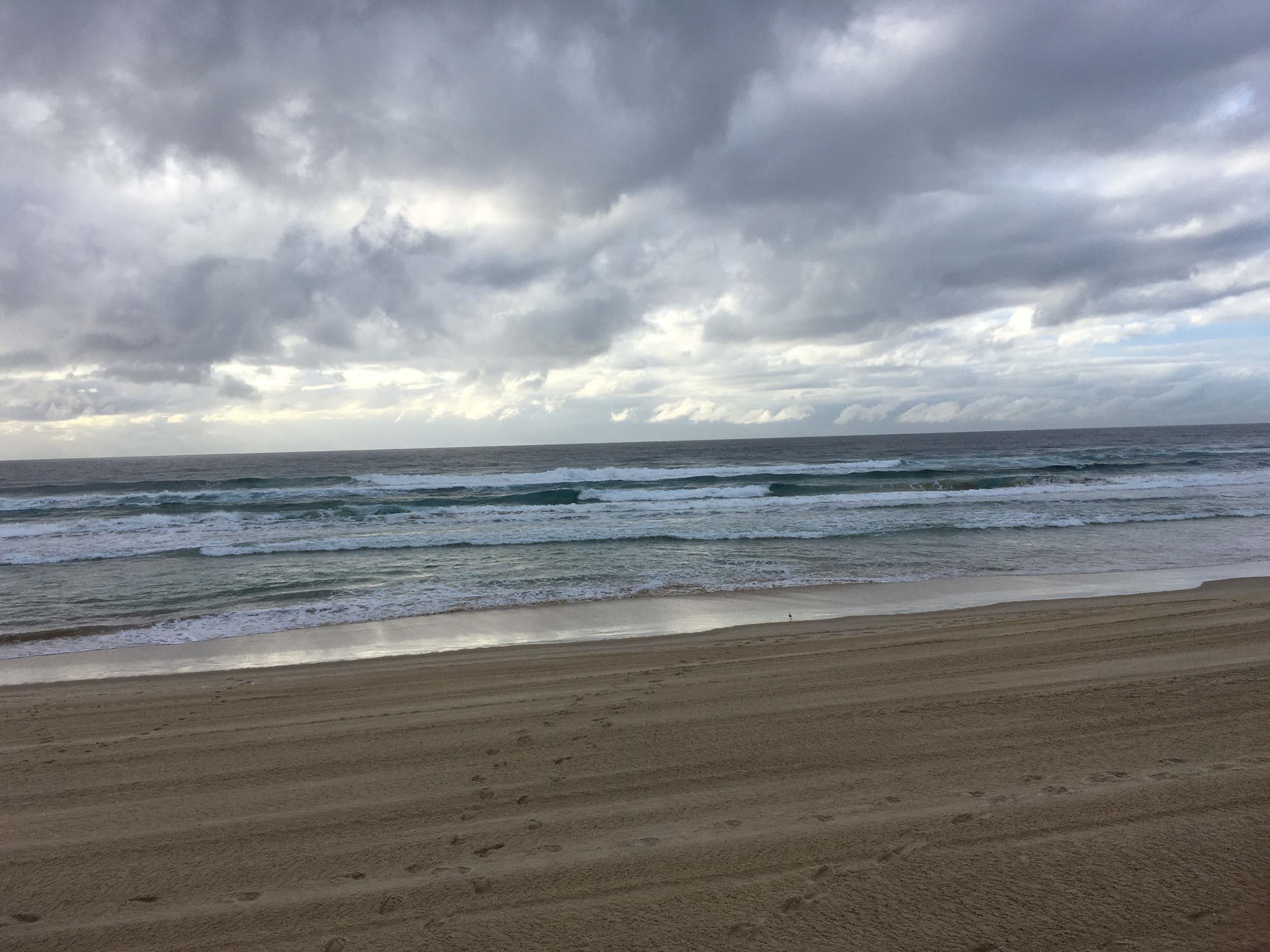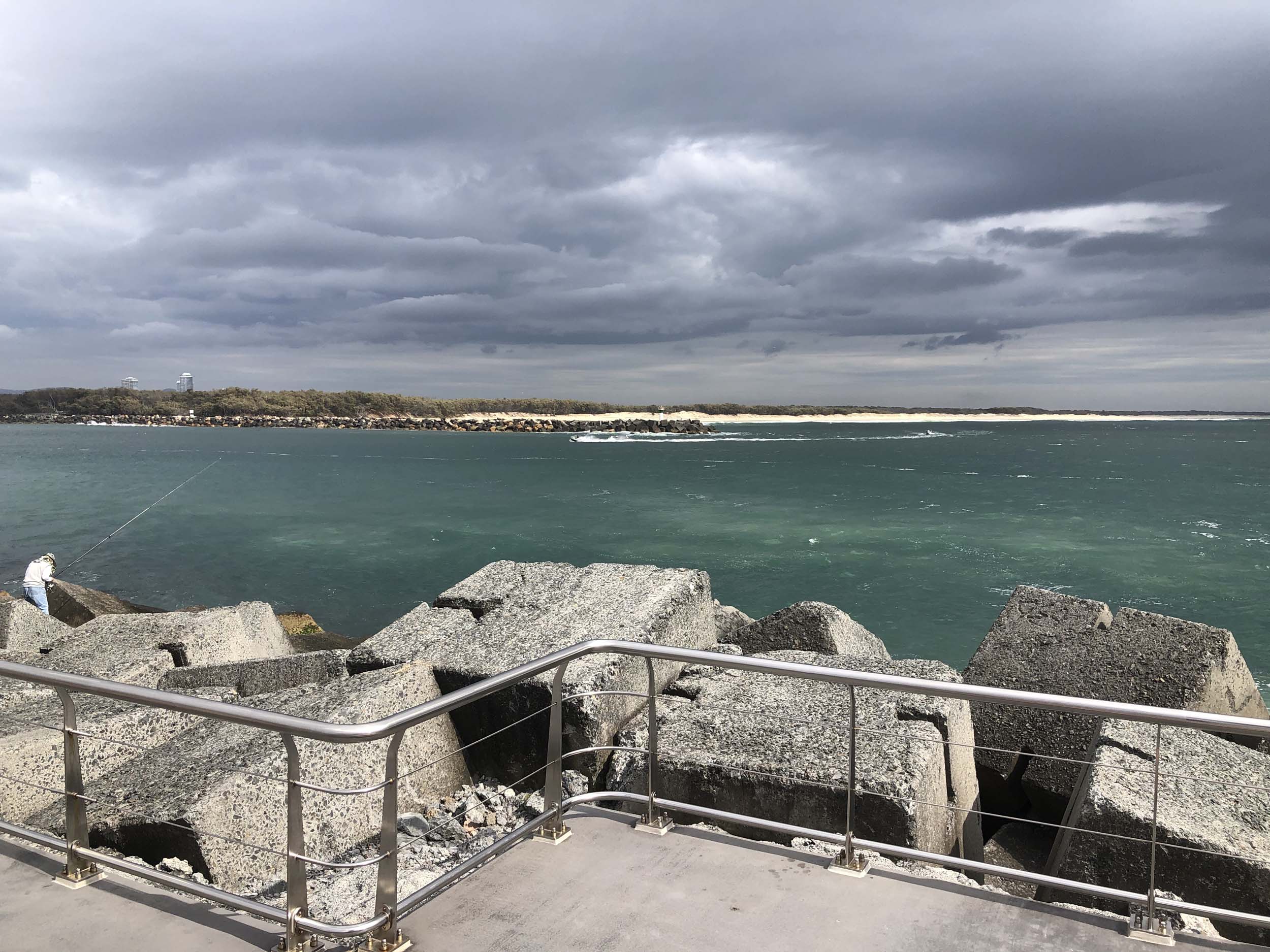 I left at 7:08am, the breeze was light from the South and building, the Broadwater had a light chop and looked like it would rain at any moment.