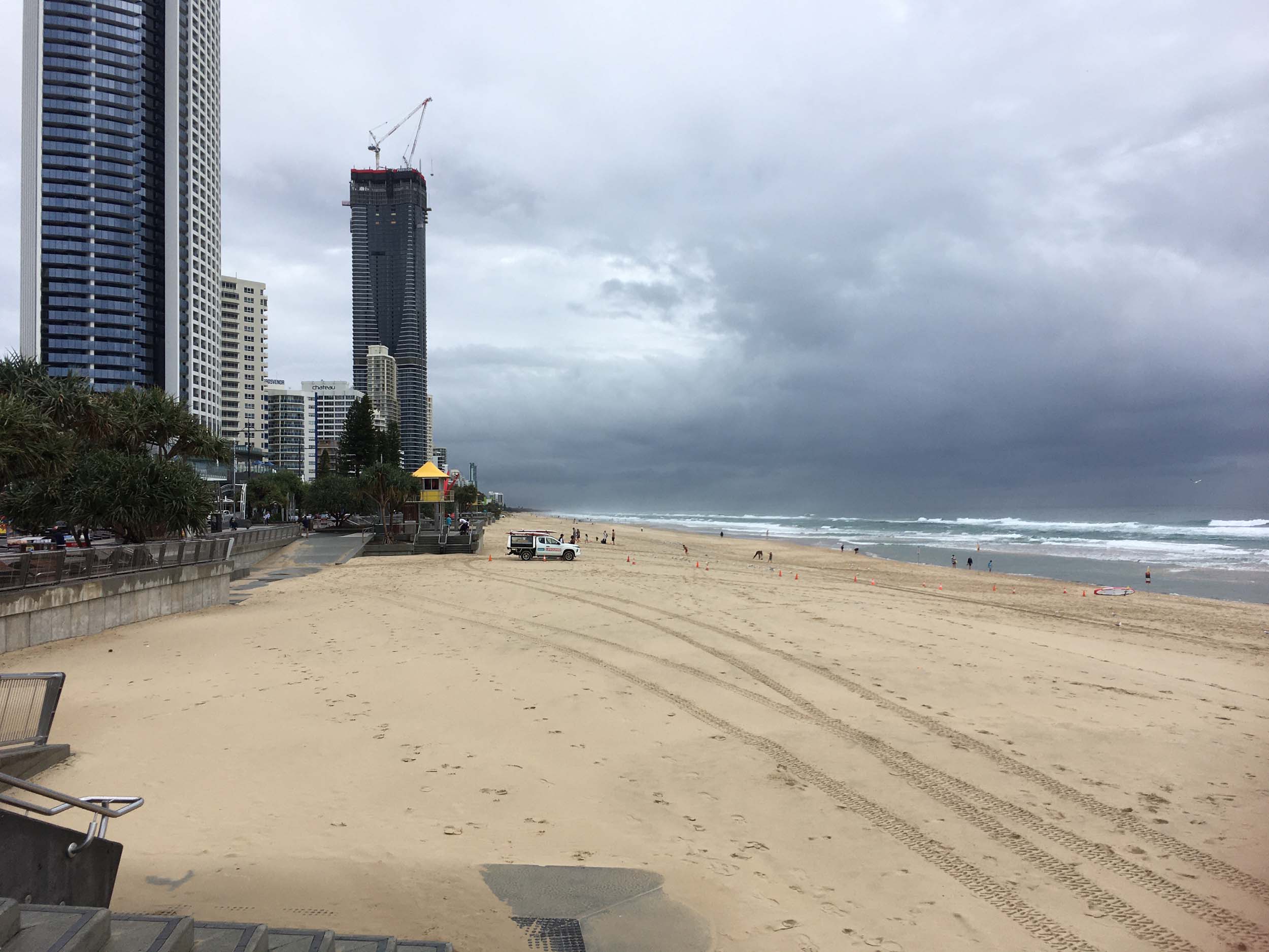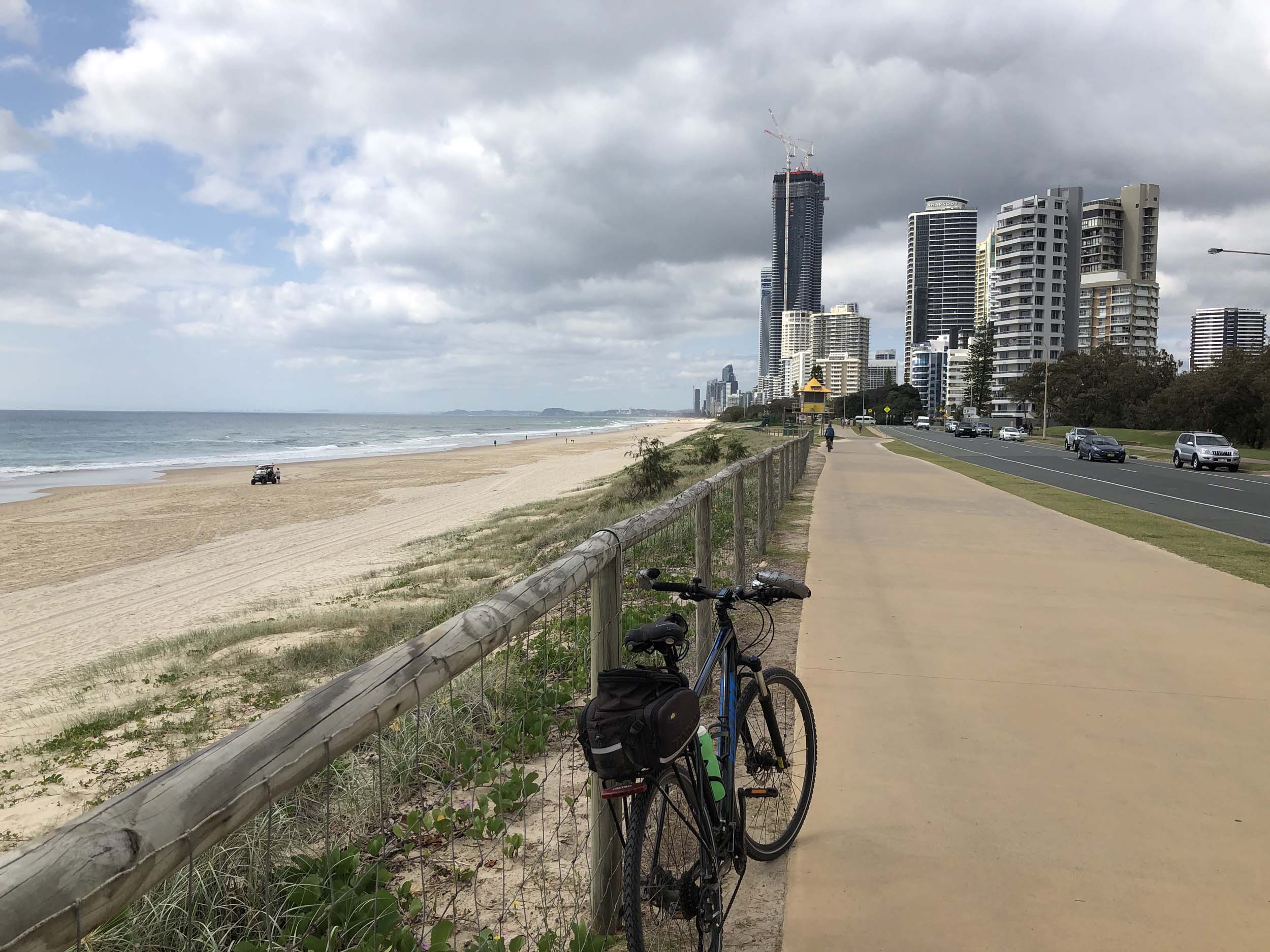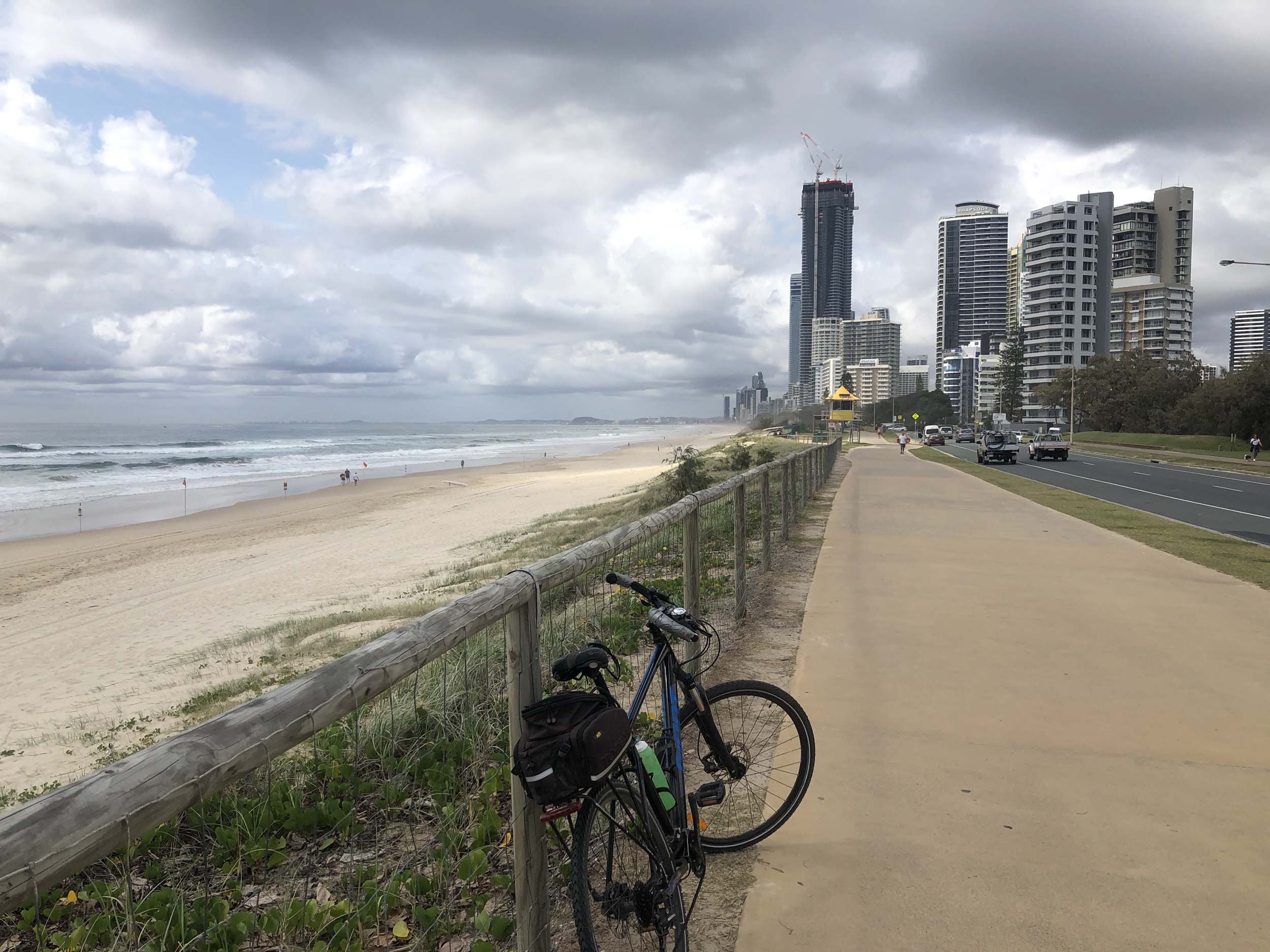 As usual, I rode Northward, to my Lands End turnaround point. Continuing through the Broadwater Parklands. I continued down to MacIntosh Is, did a lap. Over the Bridge at Narrowneck then along the Shared Path, to my normal spot at Surfers, to take my weather photos. Except all the shared path at Surfers is fenced off while they setup for Schoolies week. I headed off to the Spit along the various shared paths. Being a weekday, the shared paths were nearly empty.