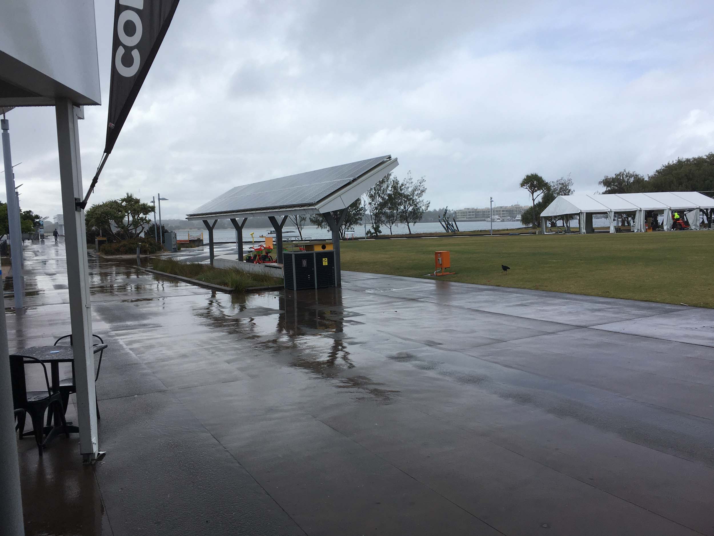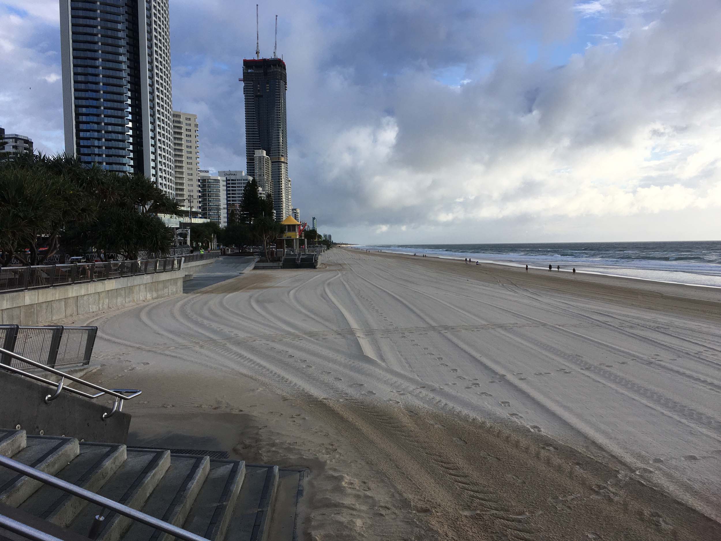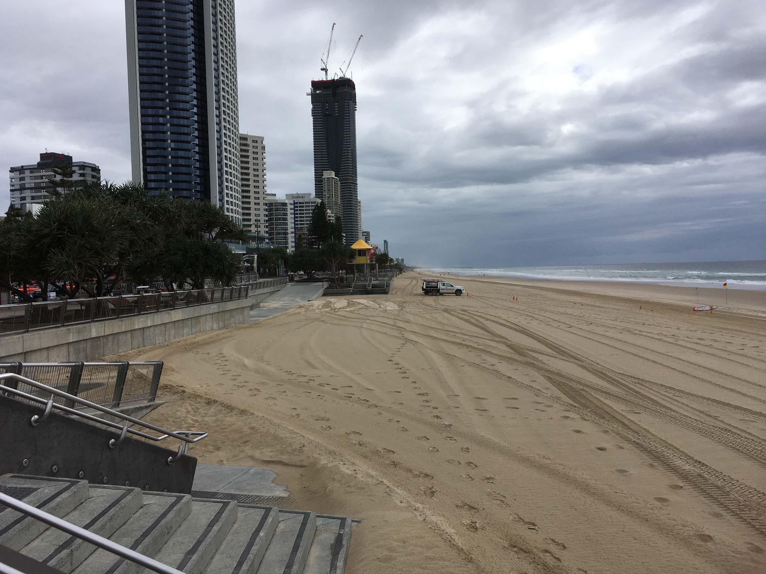 As usual, I rode Northward, to my Lands End turnaround point. Continuing through the Broadwater Parklands. I continued down to MacIntosh Is, did a lap. Over the Bridge at Narrowneck then along the Shared Path, to my normal spot at Surfers, to take my weather photos. Except all the shared path at Surfers is fenced off while they setup for Schoolies week. I headed off to the Spit along the various shared paths. Being a weekday, the shared paths were nearly empty.