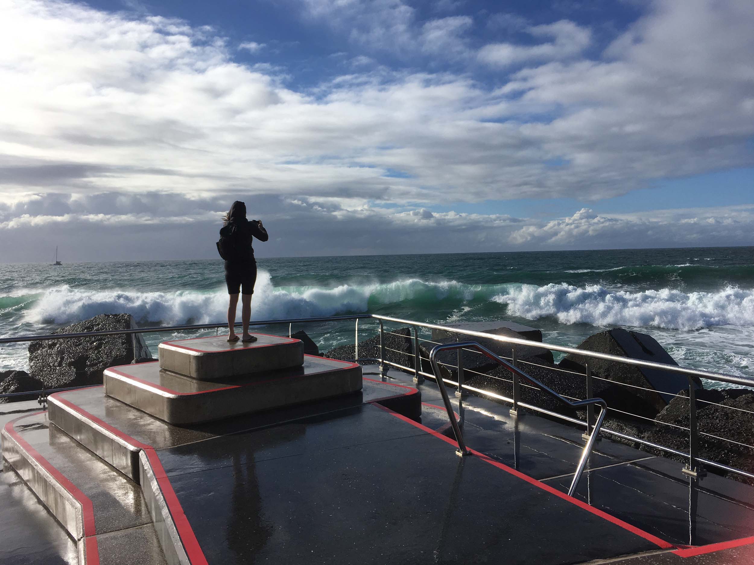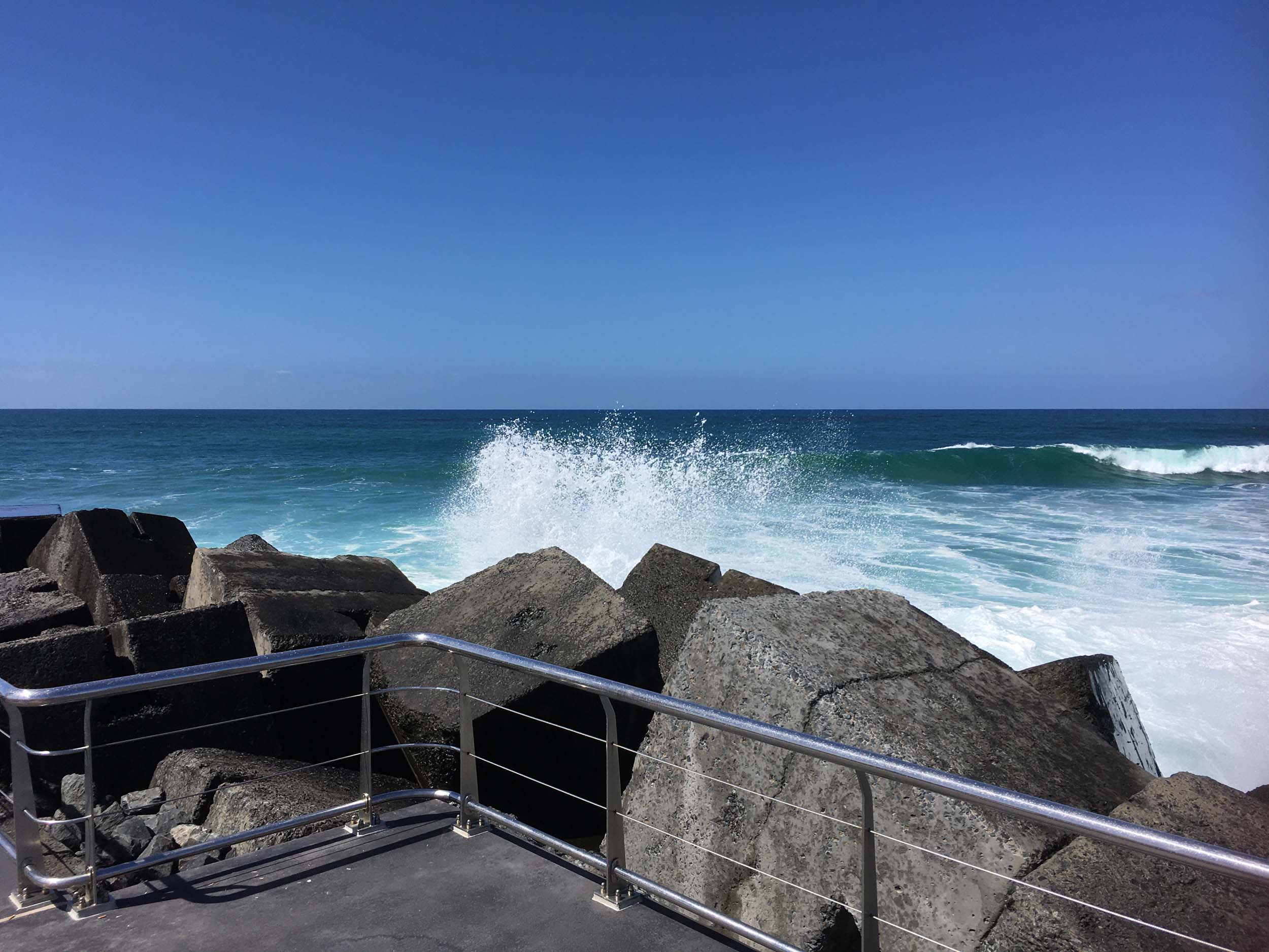 As I approached Narrowneck, I saw Angelo's Red Van, so I stopped and chatted to Angelo and Nicole then continued to the Seaway via the Federation Walk. Out to the end of The Spit. Sat on the platform and ate my museli bar and took some photos, then out to the end of the other Spit (Moondarewa). Took a few photos at the end of the wooden boardwalk.