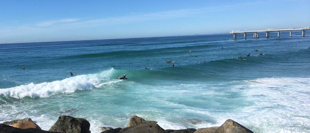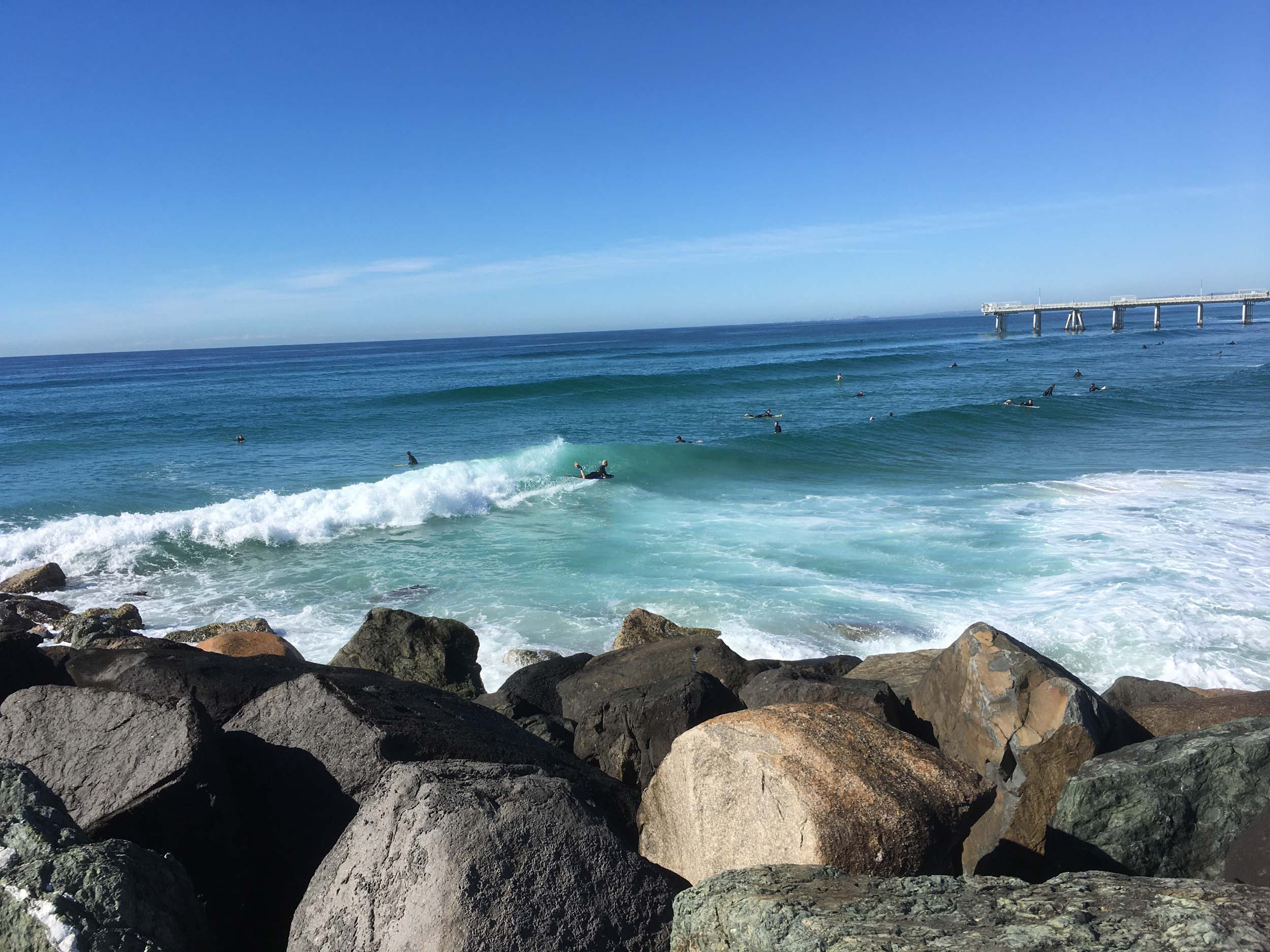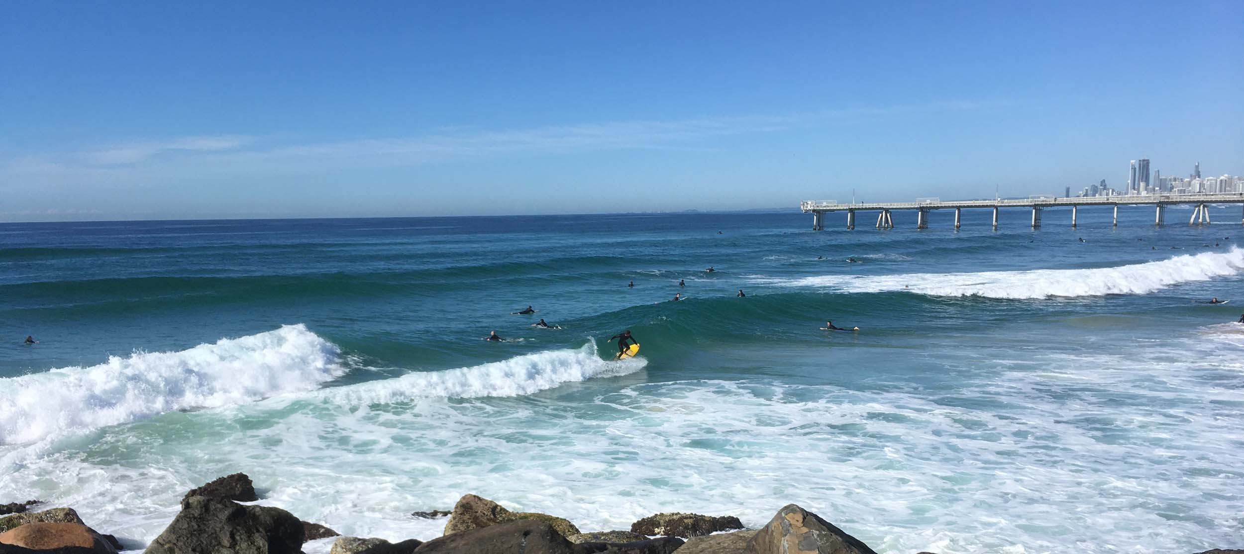 The sets were coming in and the surfers were out in force between the Spit and the Sand Pumping pier.