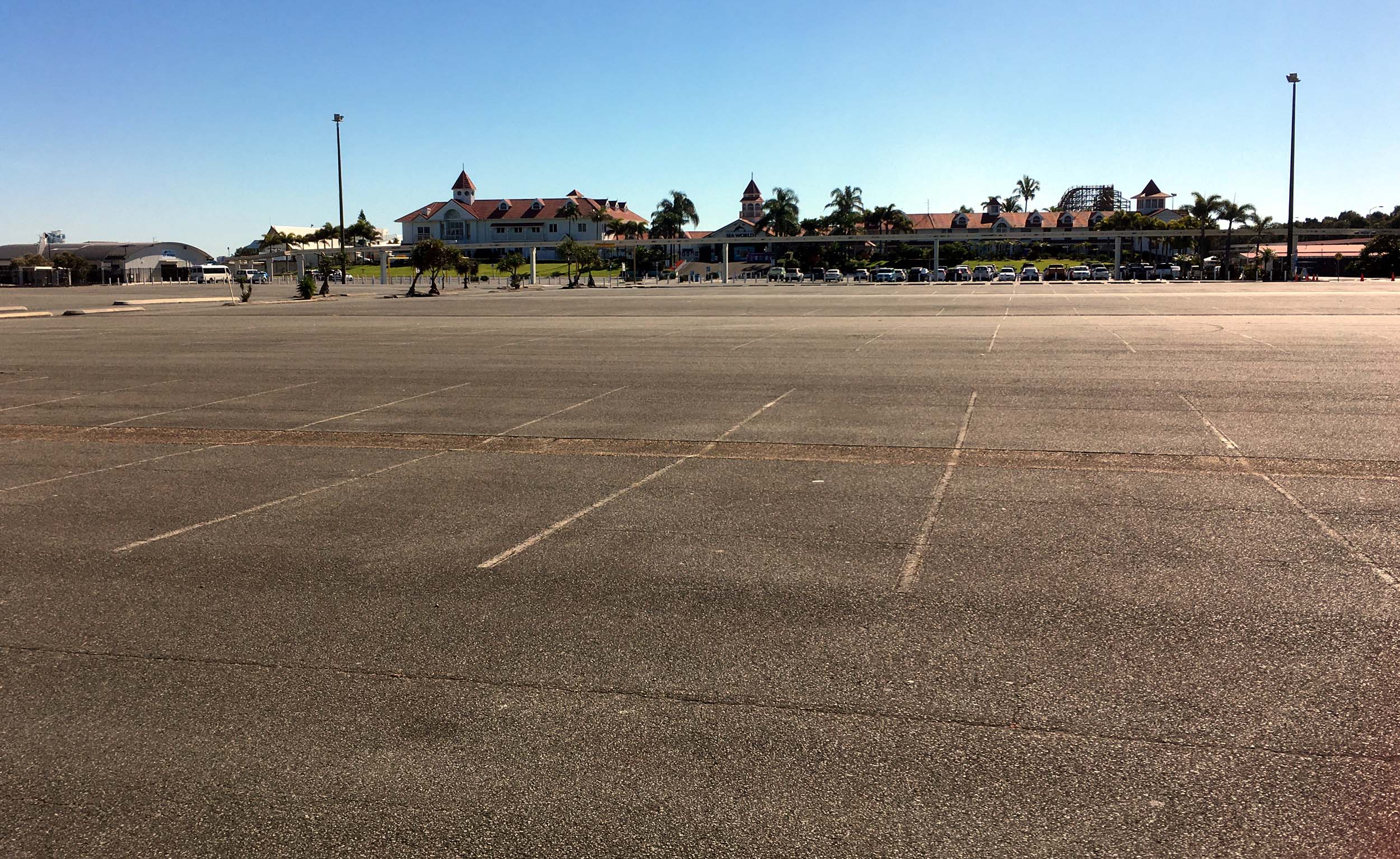 I rode through Muriel Henchman Park, then I rode along the bike path upto and through Seaworld's carpark. You can see that the school holidays have ended, as the carpark was 25% full.