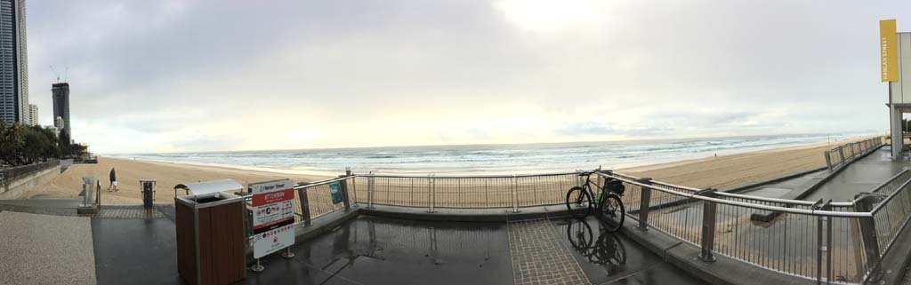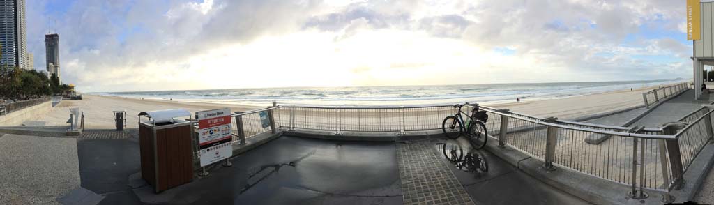 As usual, I rode Northward, to my Lands End turnaround point. Continuing through the Broadwater Parklands. I continued down to MacIntosh Is, did a lap. Over the Bridge at Narrowneck then along the Shared Path, to my normal spot at Surfers, to take my weather photos. I headed off to the Spit along the various shared paths. Being a weekday but school holidays, the shared paths are usually busy, but at this unGodly hour, no bastard was about.