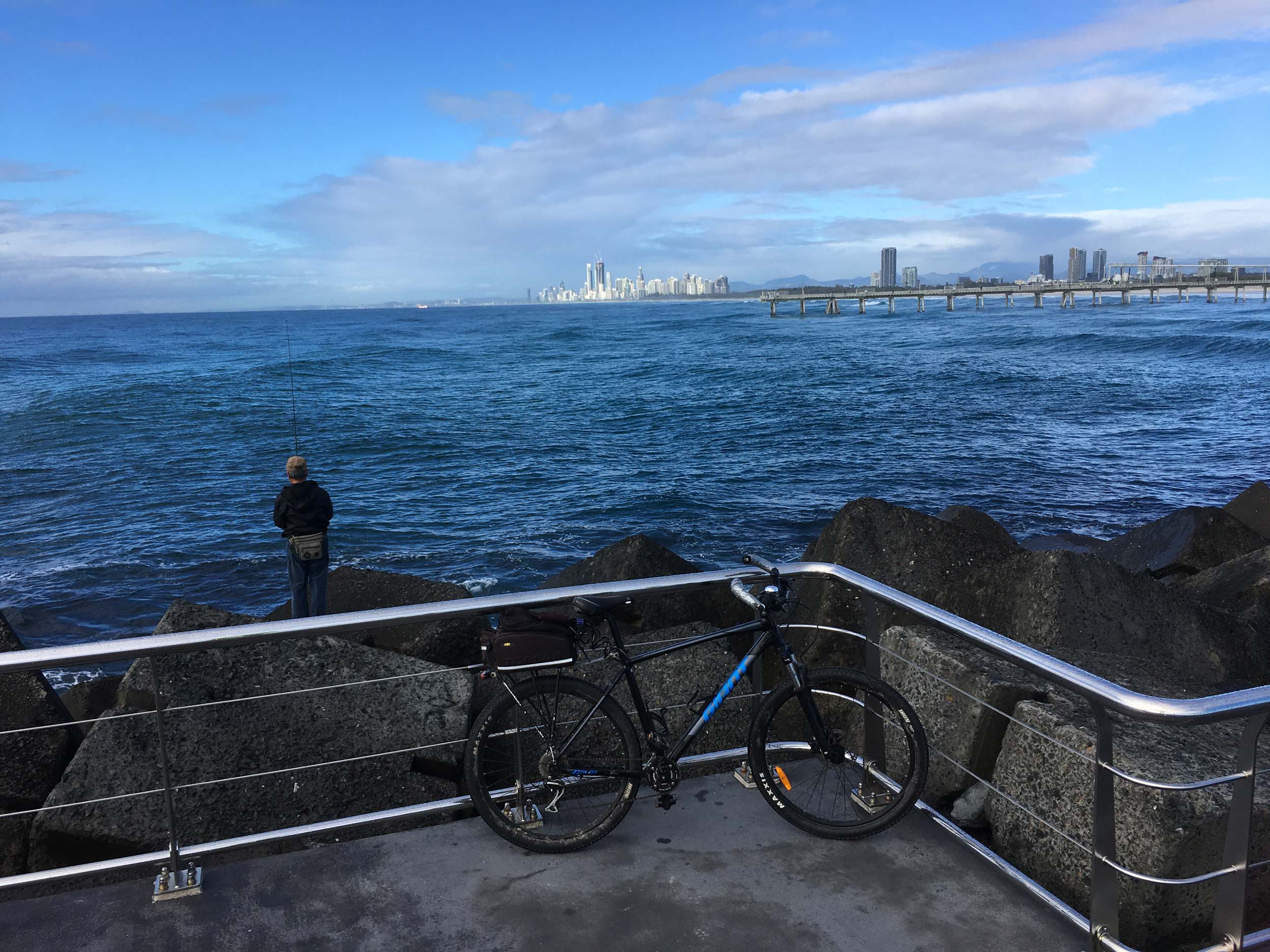 Today's highlight:was the weather. It started out looking like it was about to rain. It did, I even put on my wet weather pants. By Surfers, it was sunny, so stripped off pants and spray jacket.