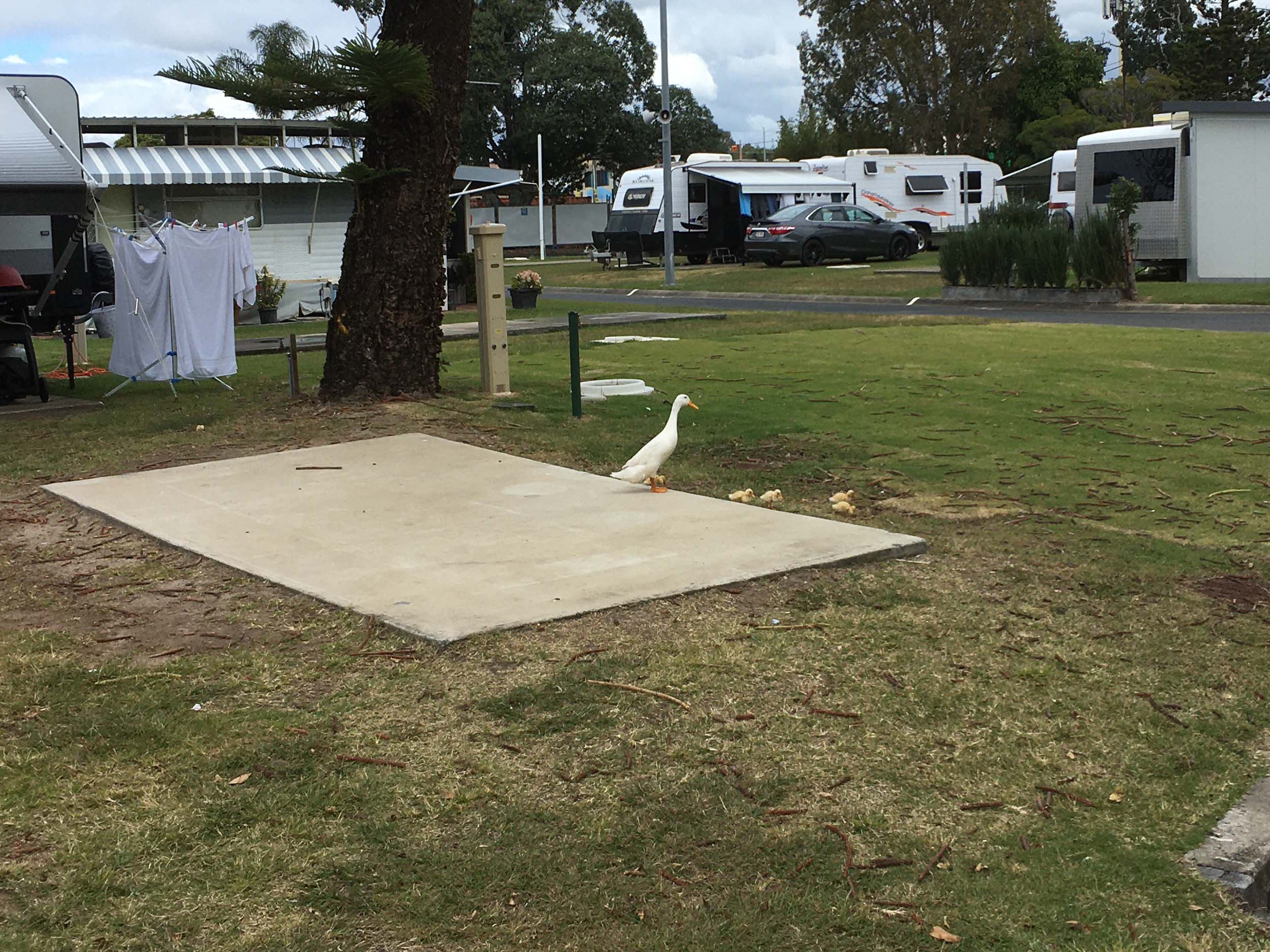 The drizzle stopped just before the caravan park, so I did a lap of 'our' caravan park, there were 123 occupied caravan sites out of 230 sites.