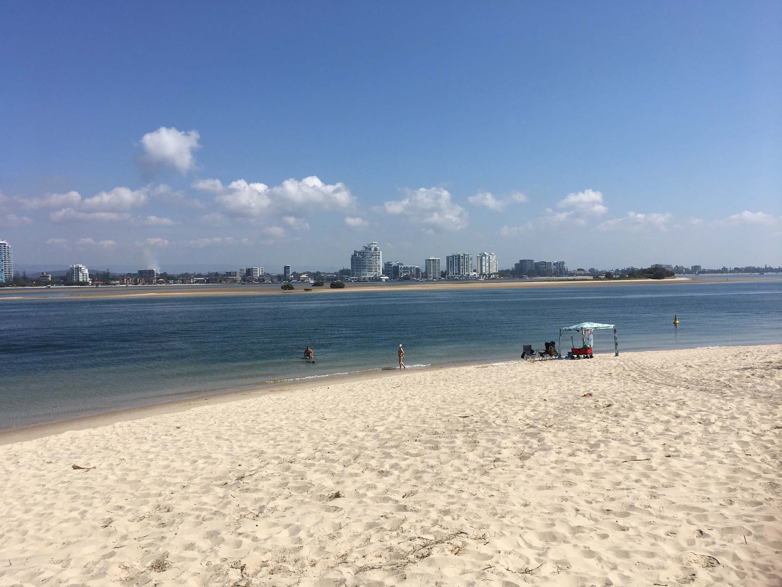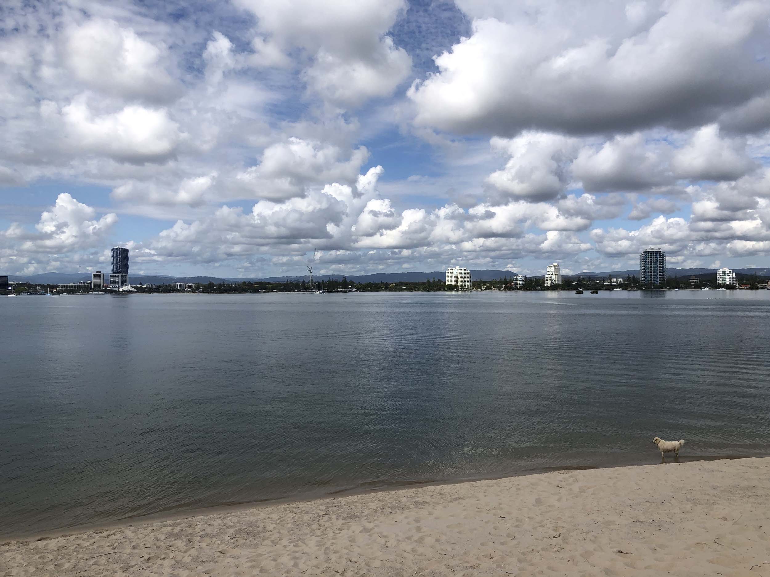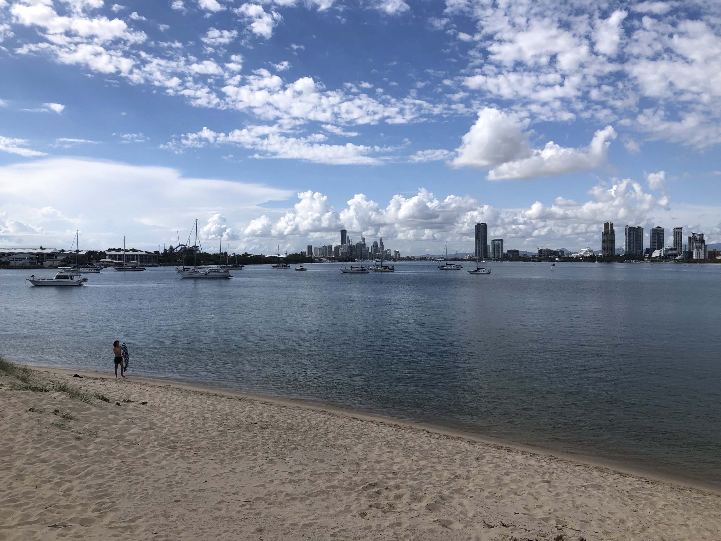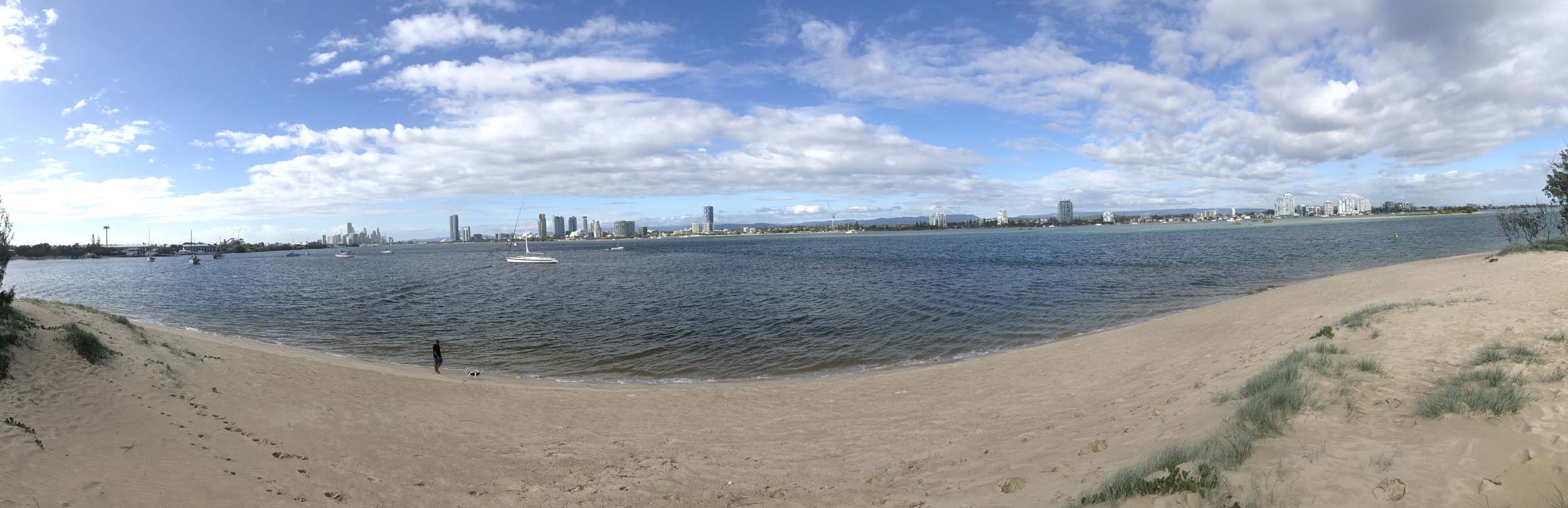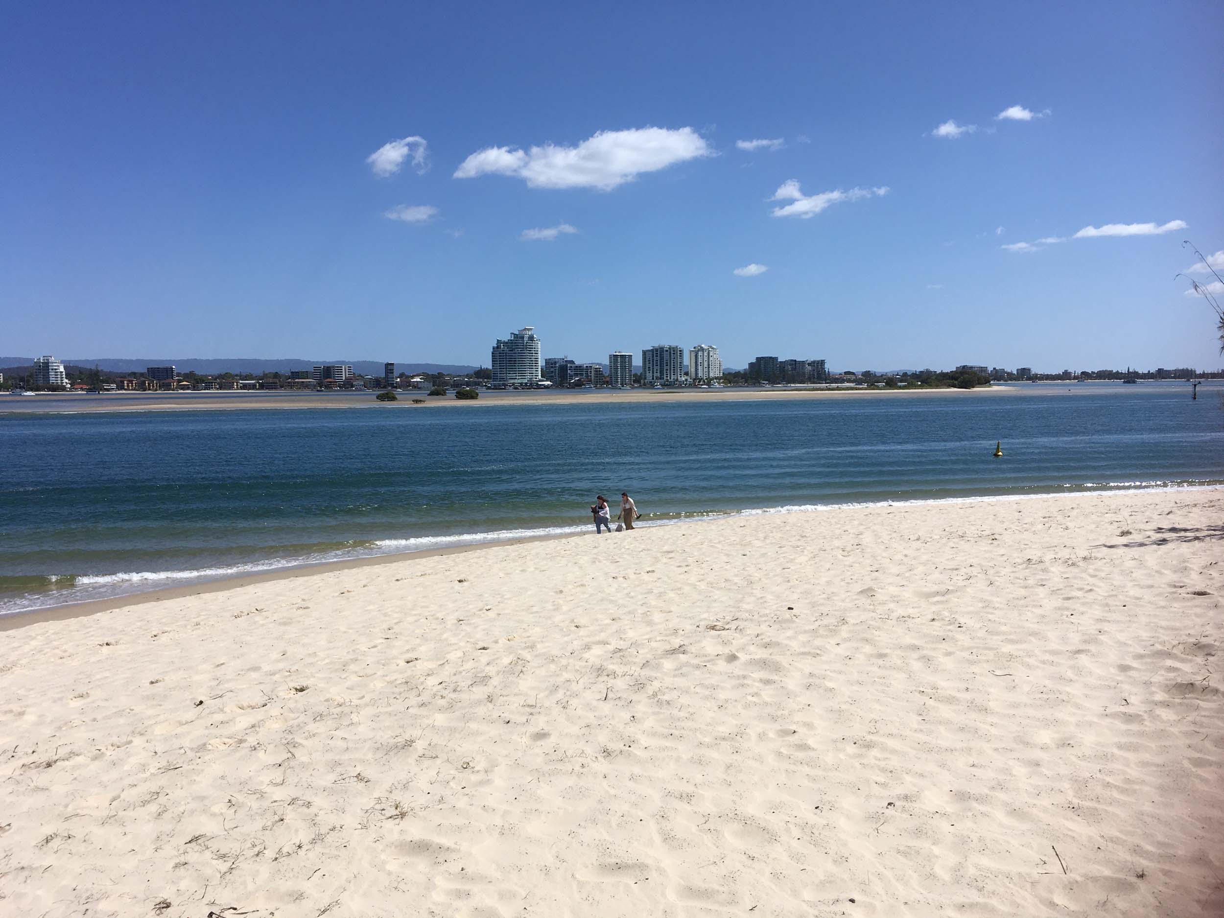 I left at 9:05 am, the breeze was light from the South and building, the Broadwater had a light chop.