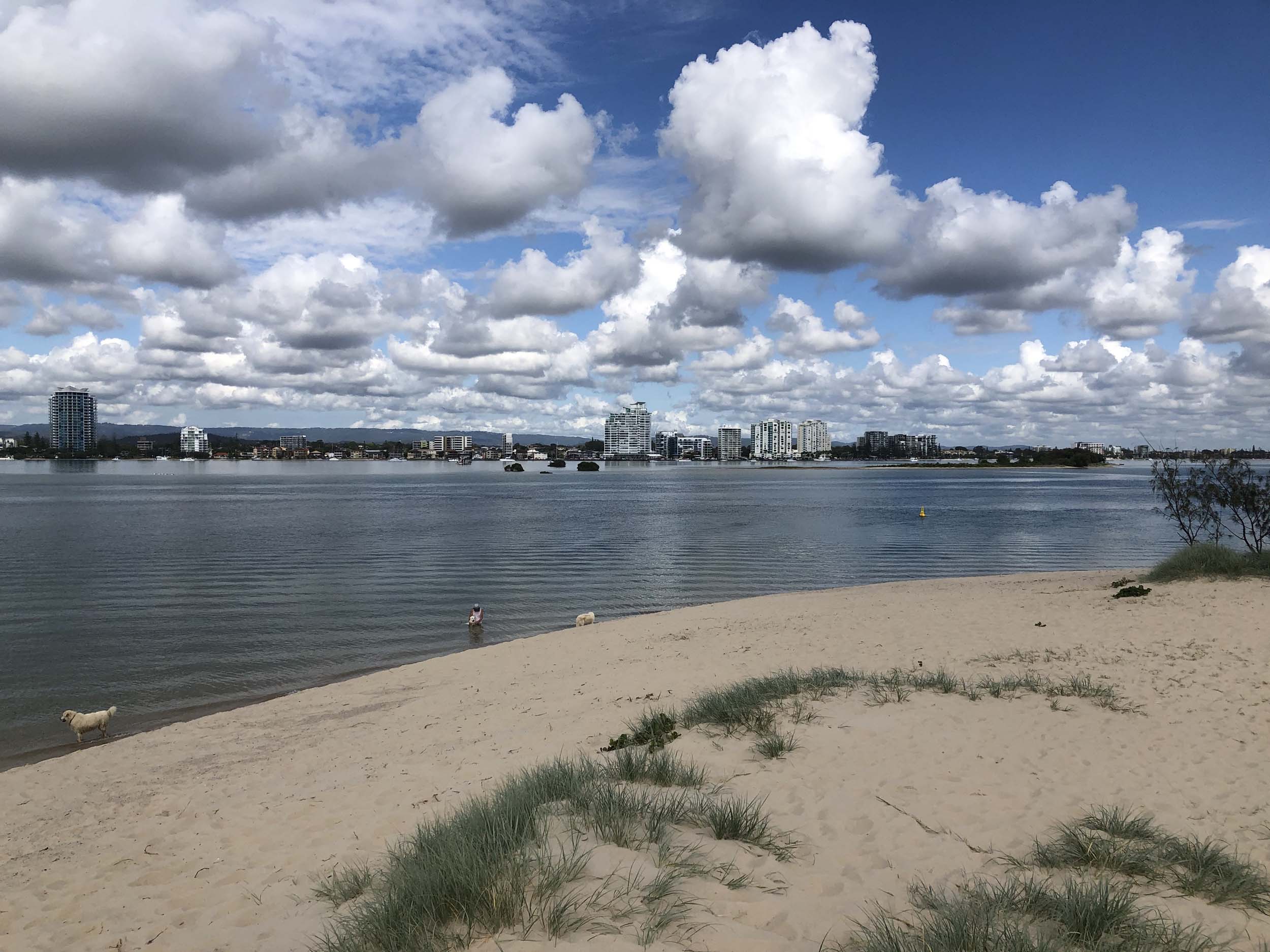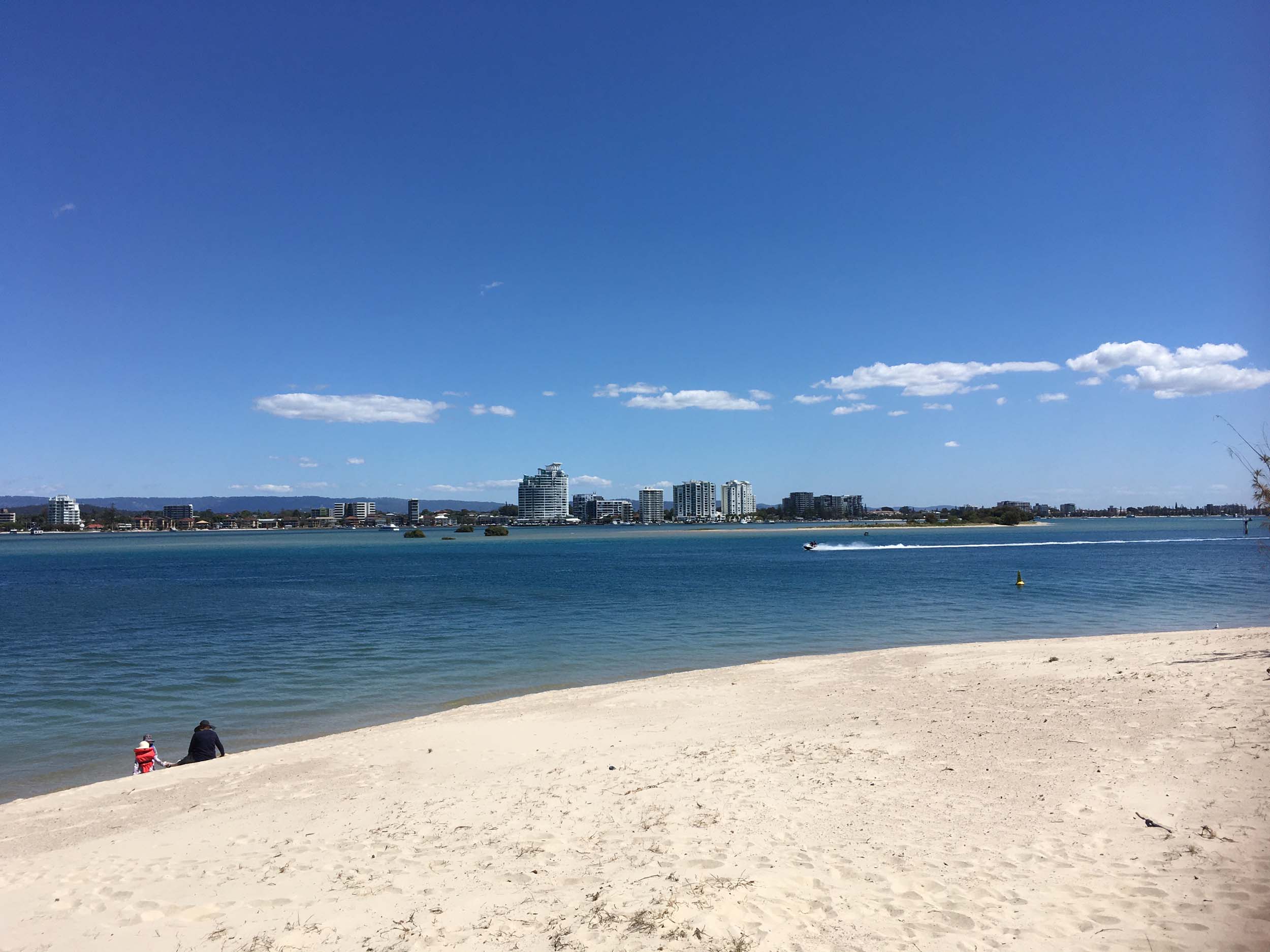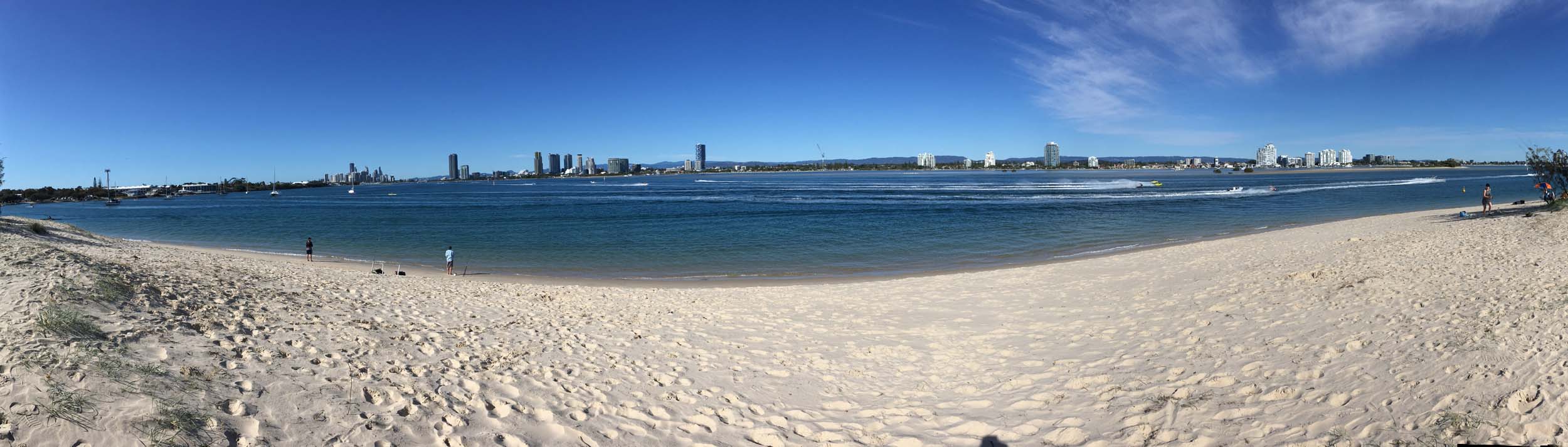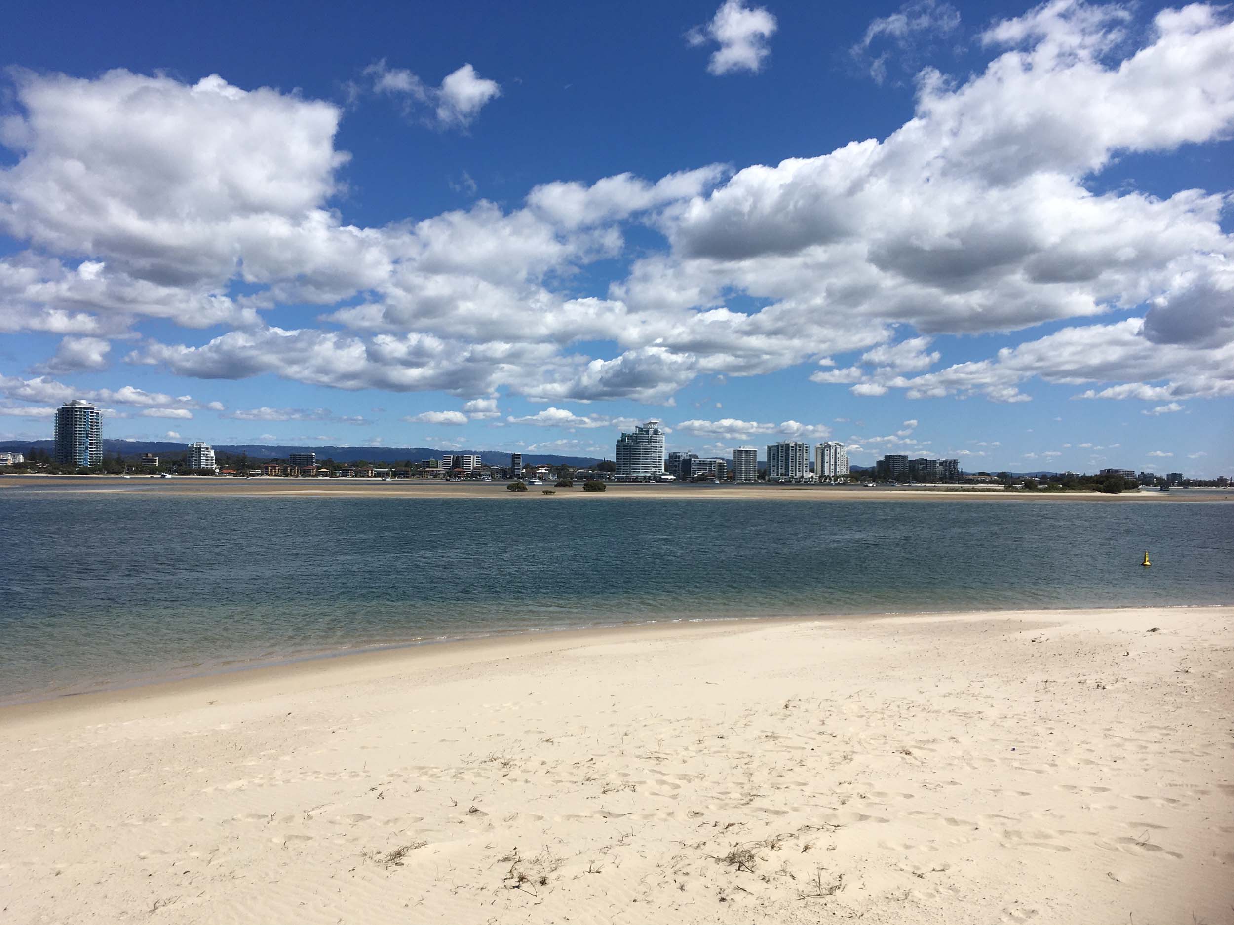I left at 9:05 am, the breeze was light from the South and building, the Broadwater had a light chop.