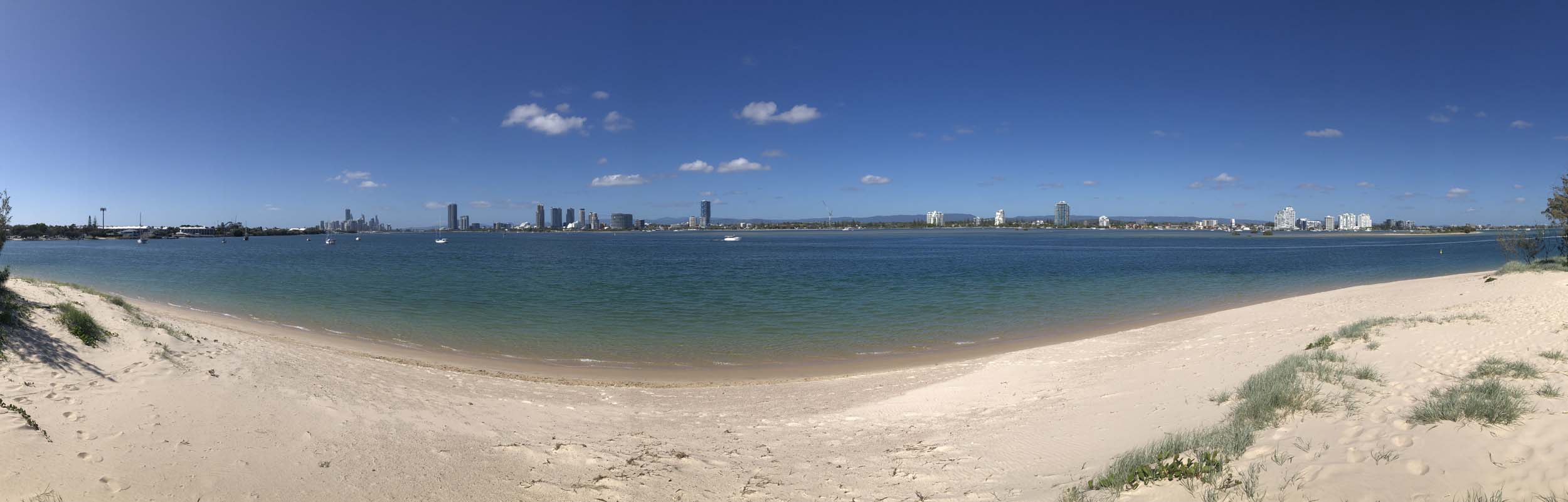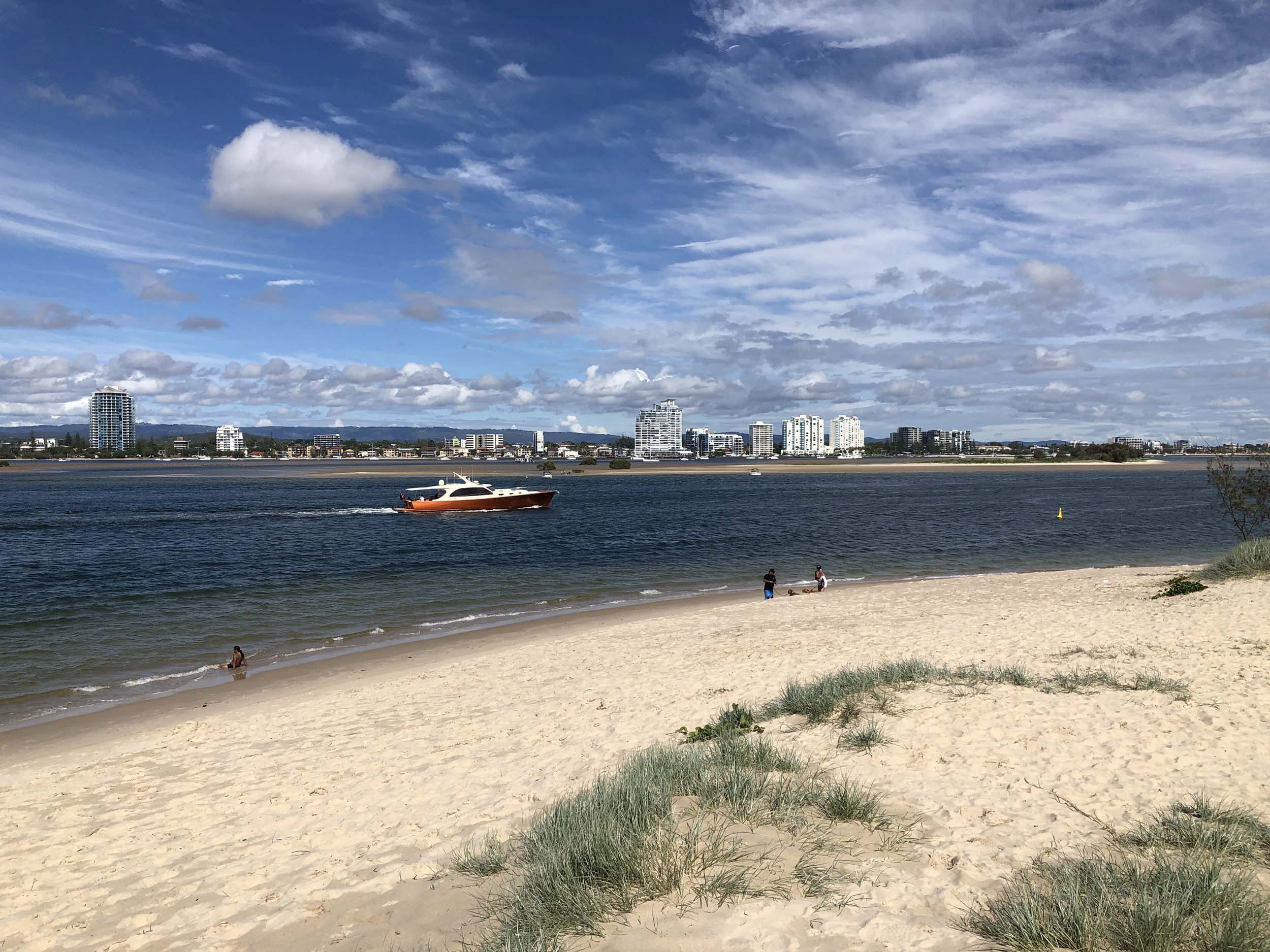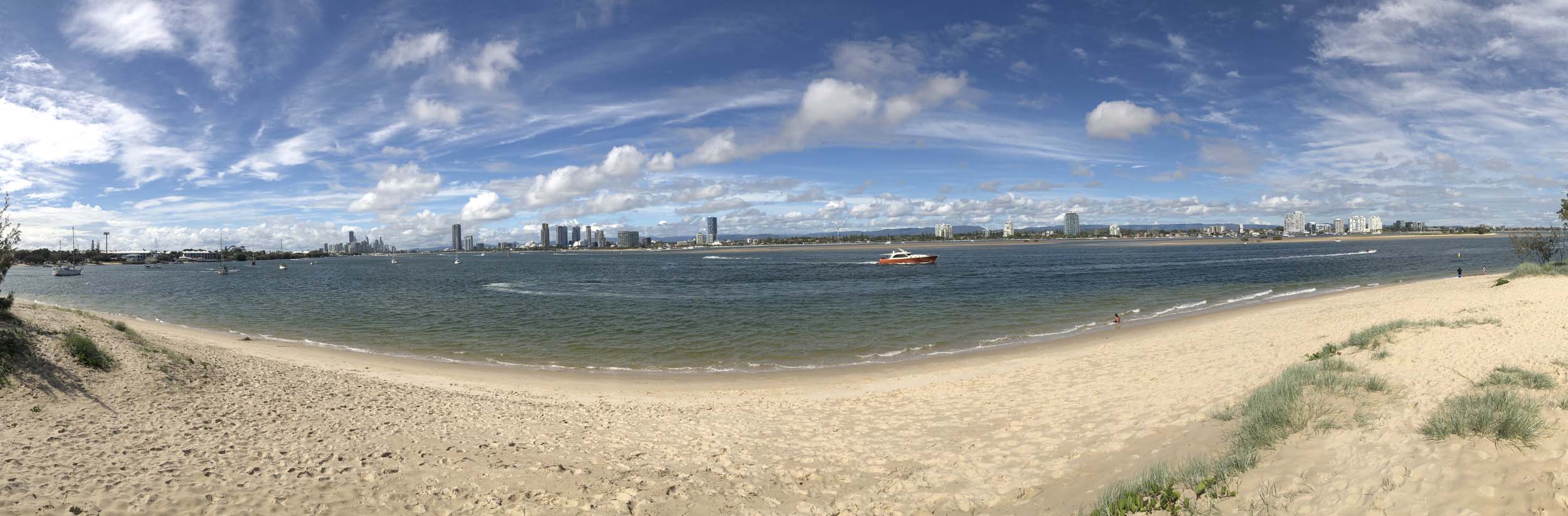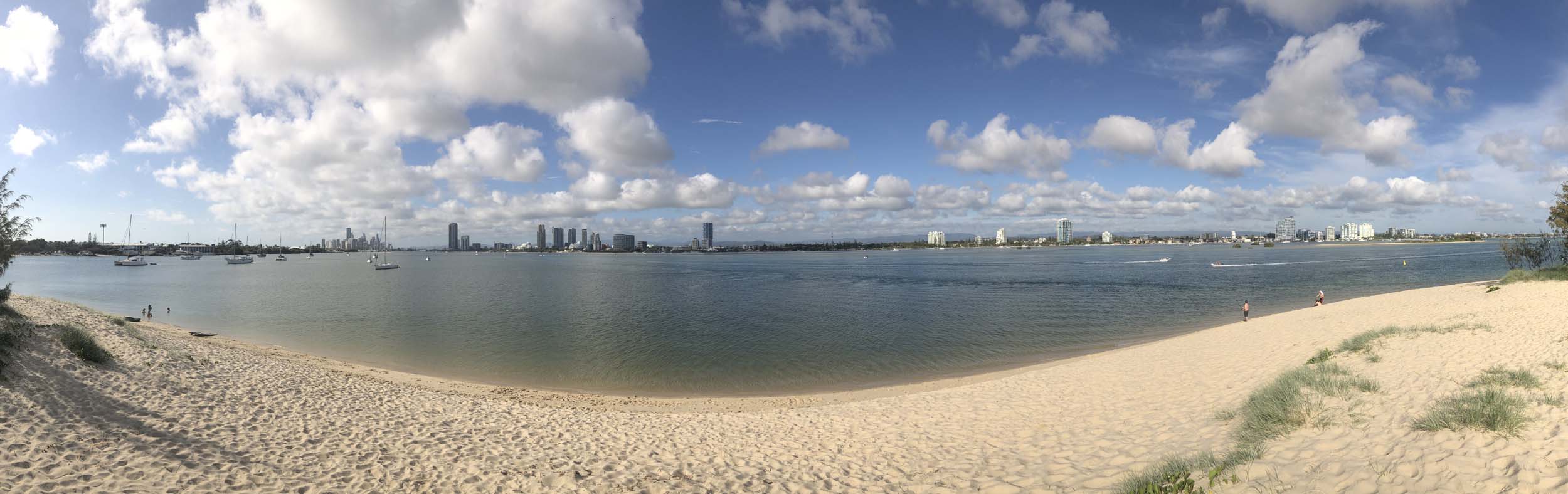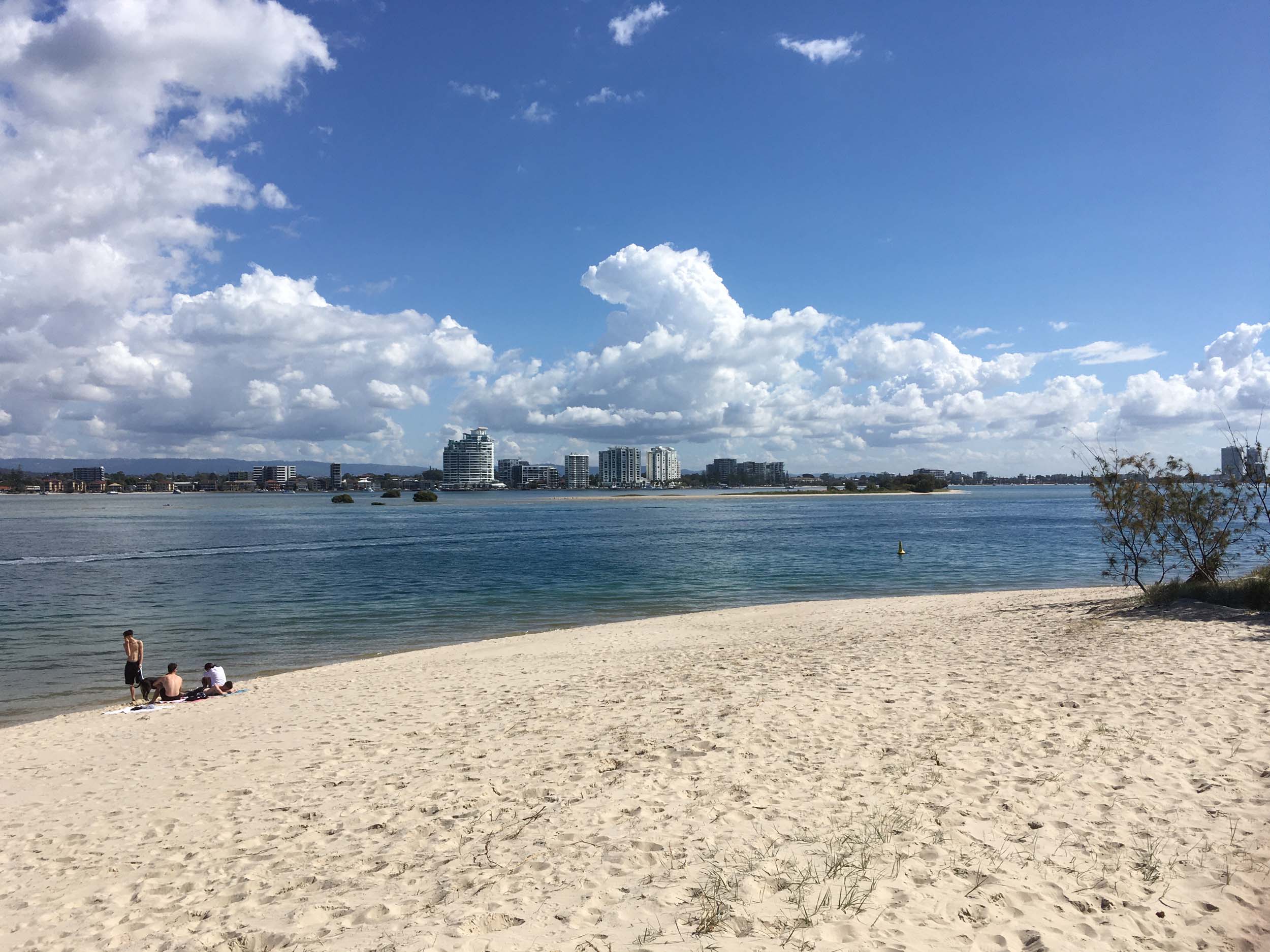 I left at 9:05 am, the breeze was light from the South and building, the Broadwater had a light chop.