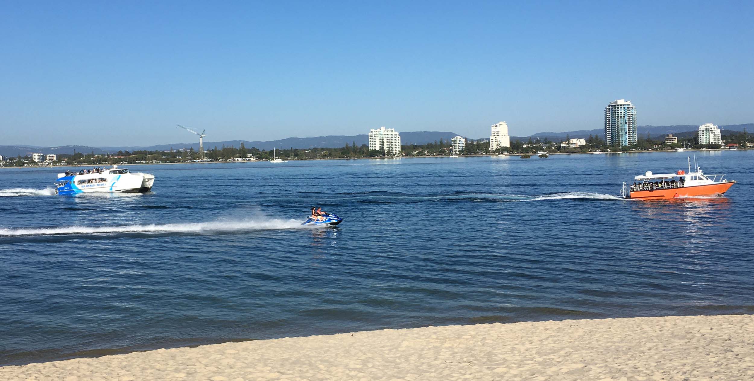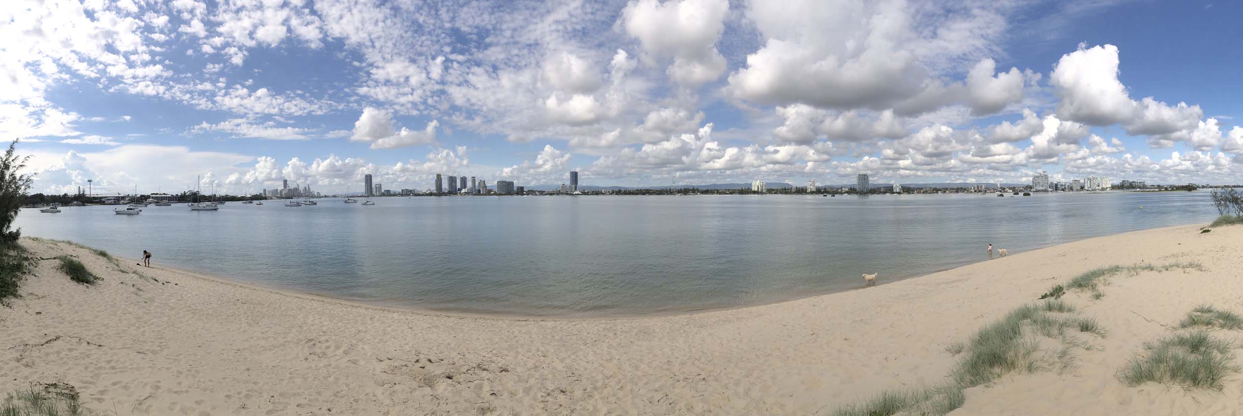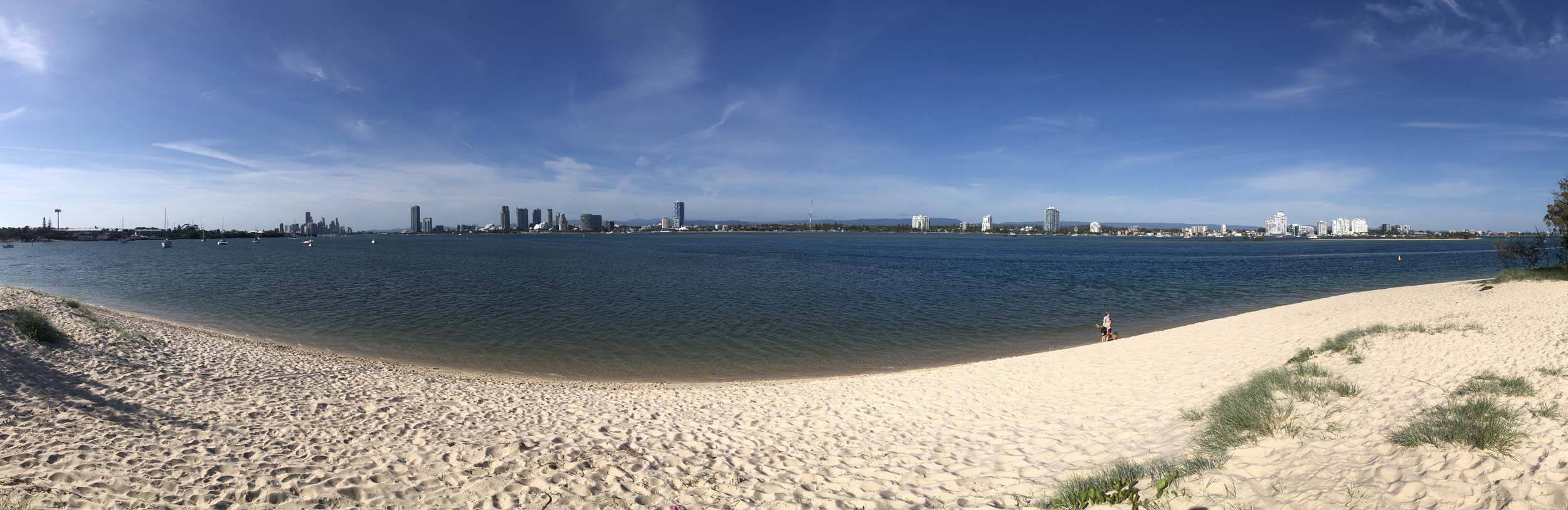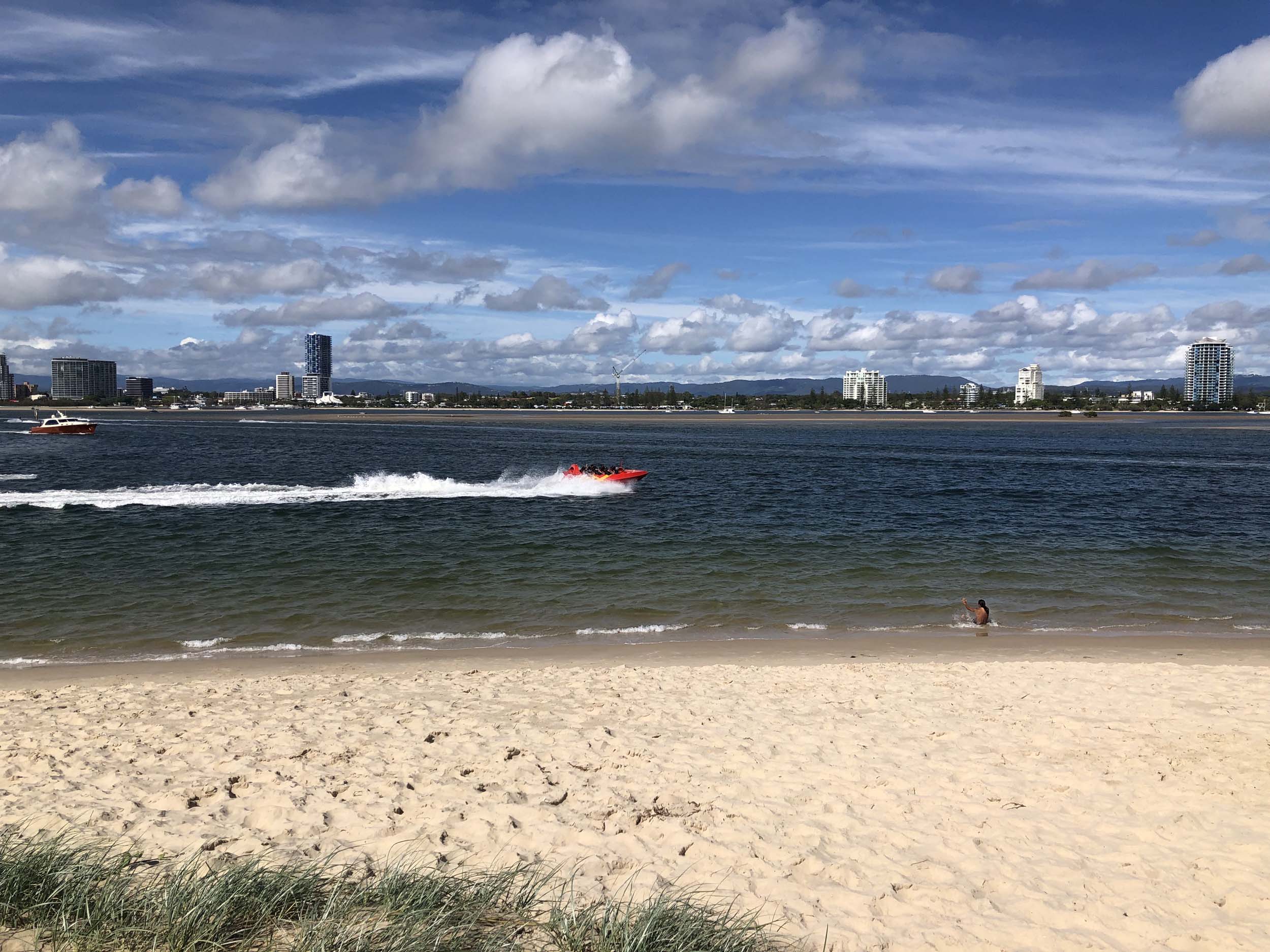 I left at 9:05 am, the breeze was light from the South and building, the Broadwater had a light chop.