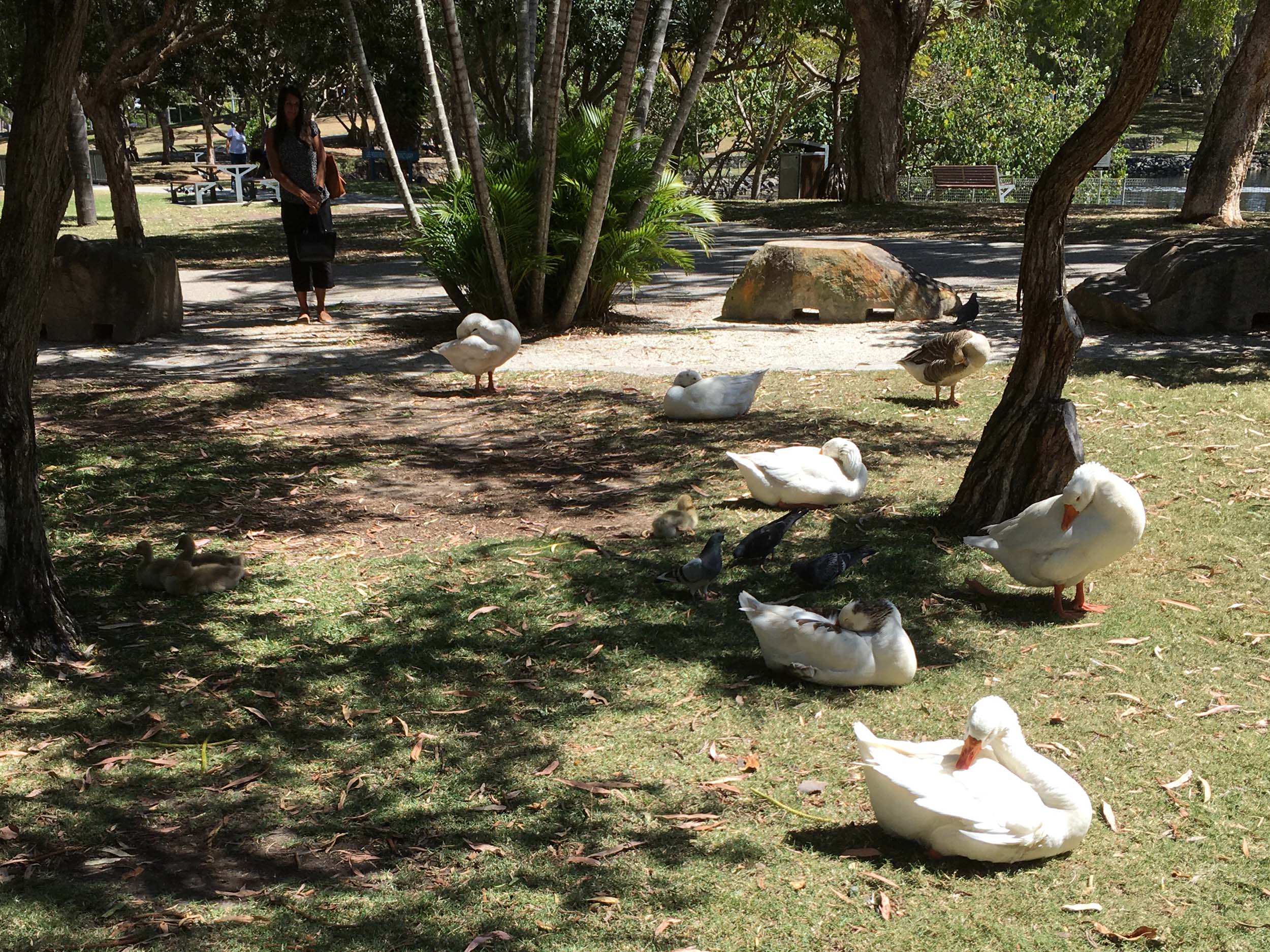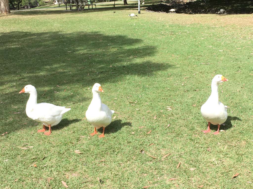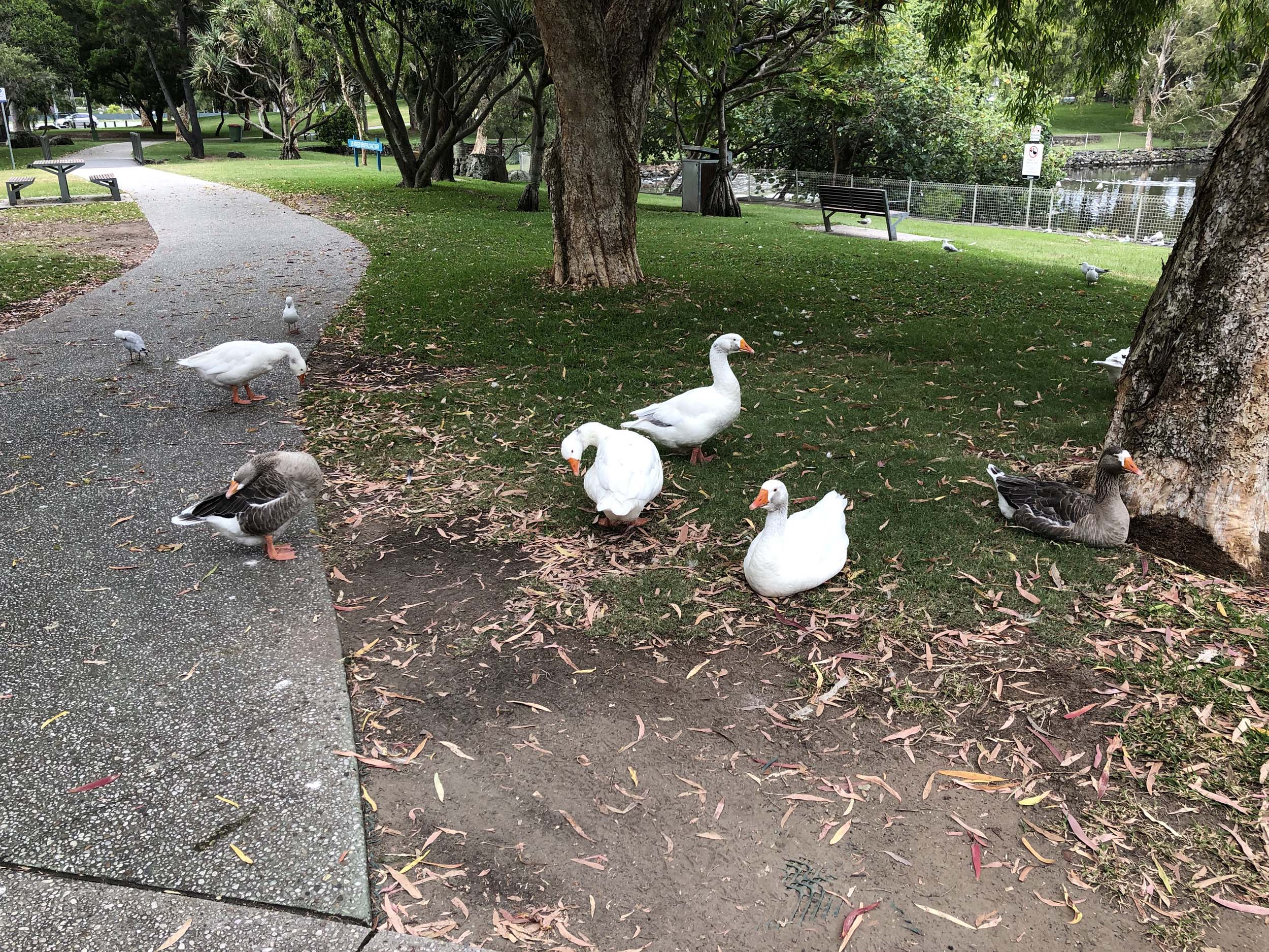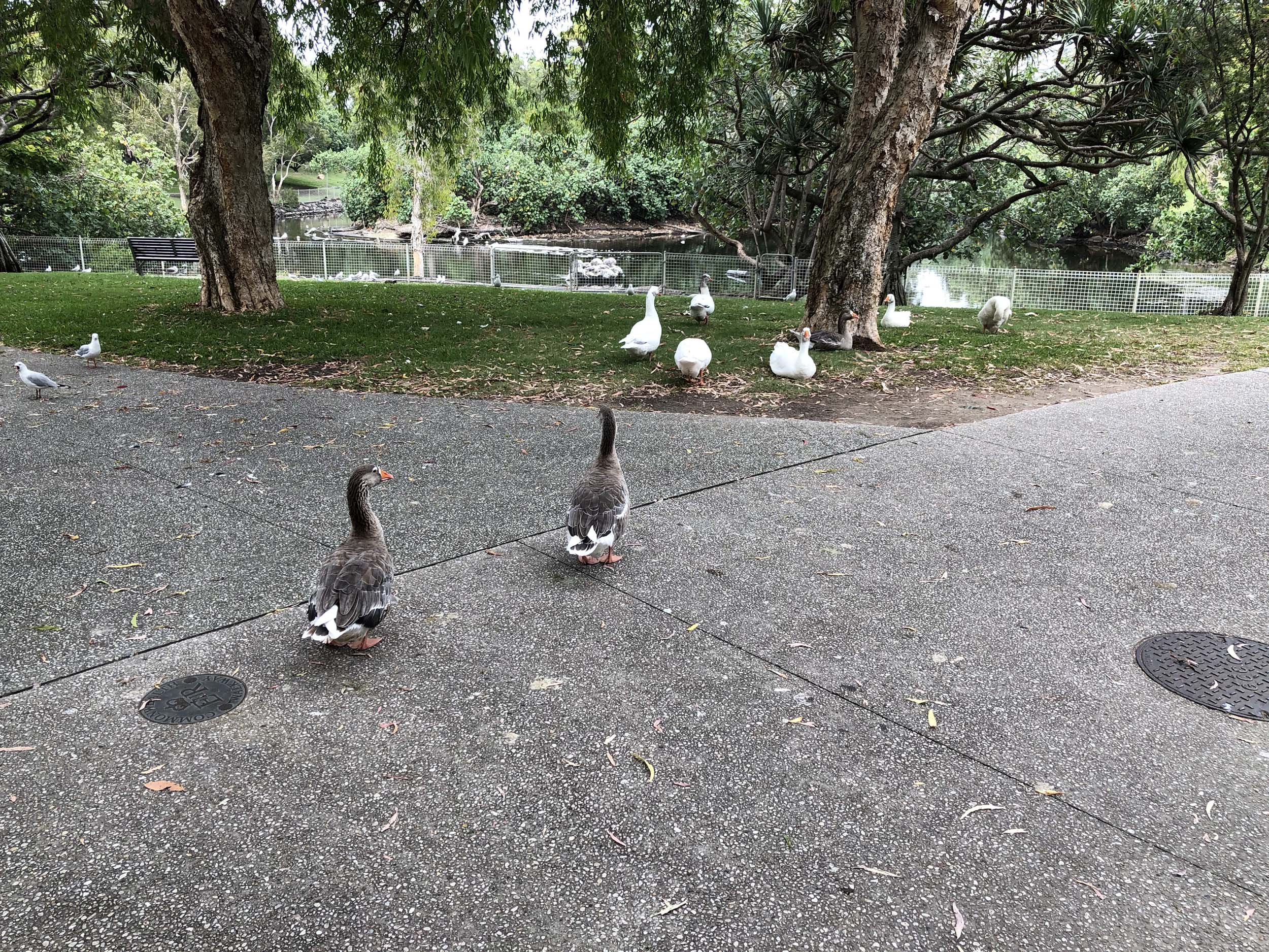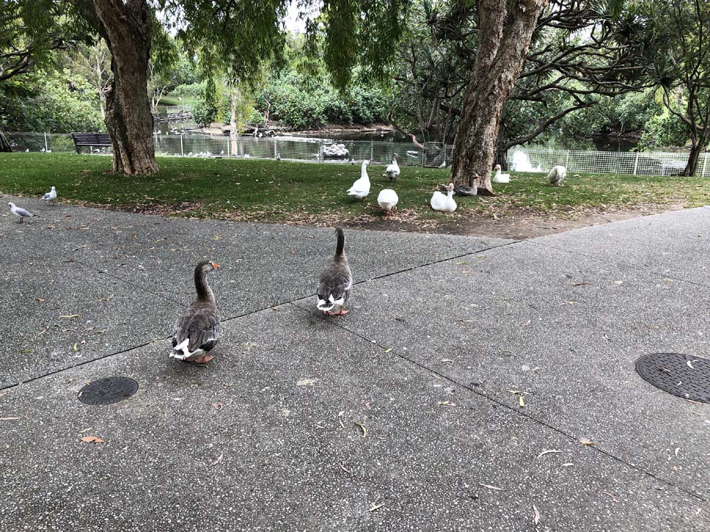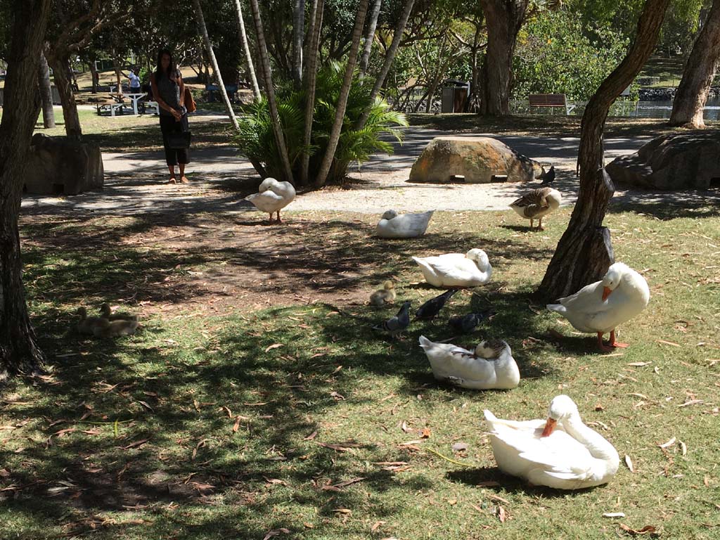 I rode around Marina Mirage and the jetty. Crossed over Seaworld Drive back onto the Federation Walk and continued back to MacIntosh Island. Goosey Lucy and some mates were all out and enjoying life, so I took their photo.
