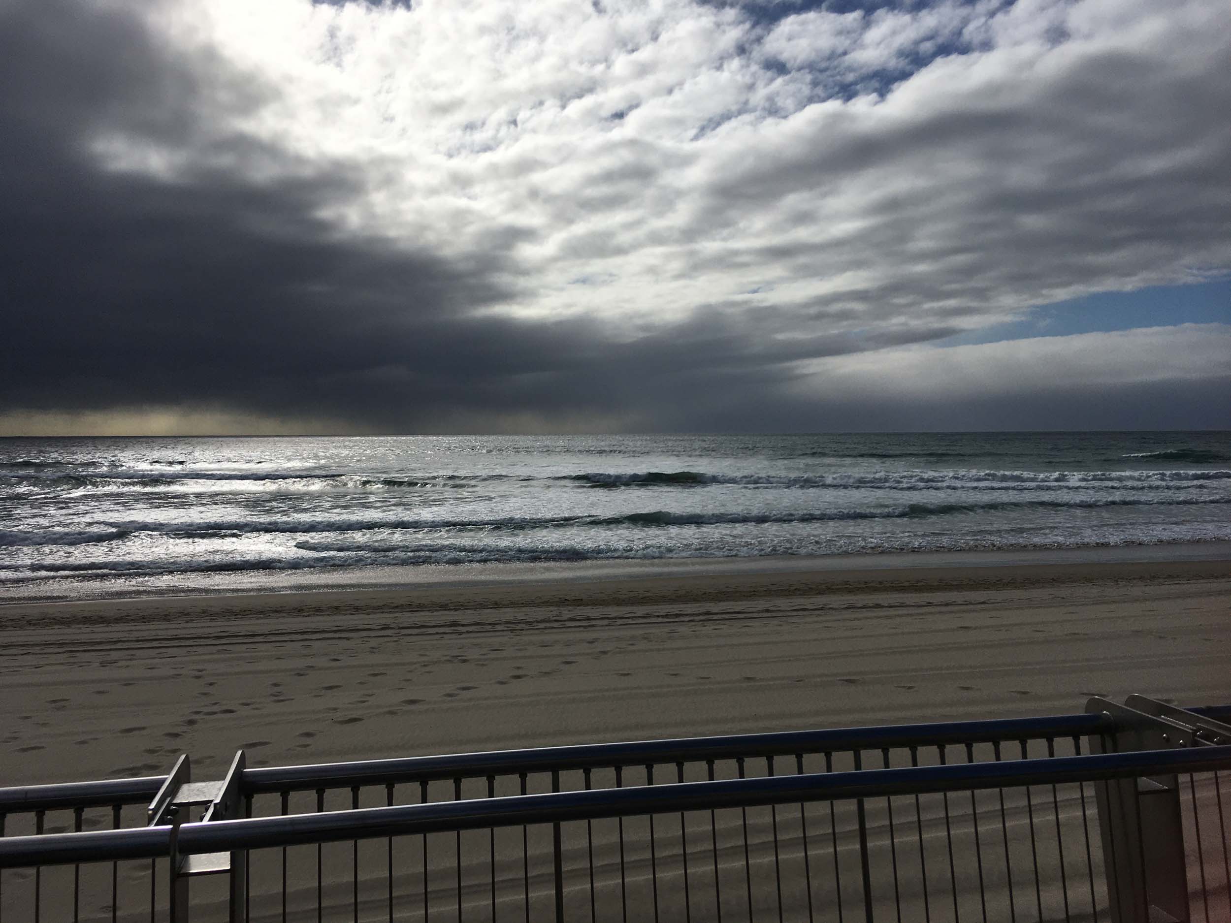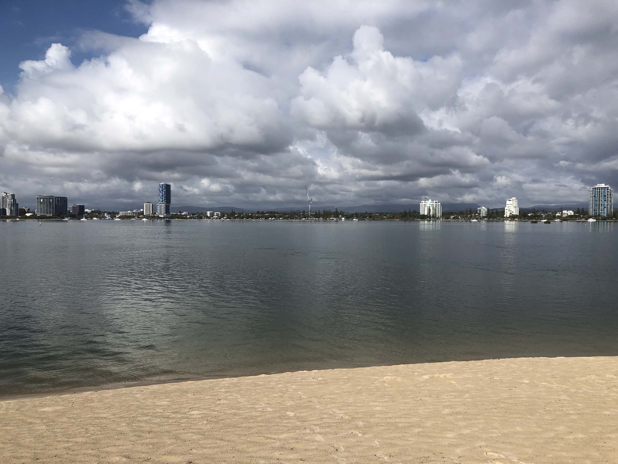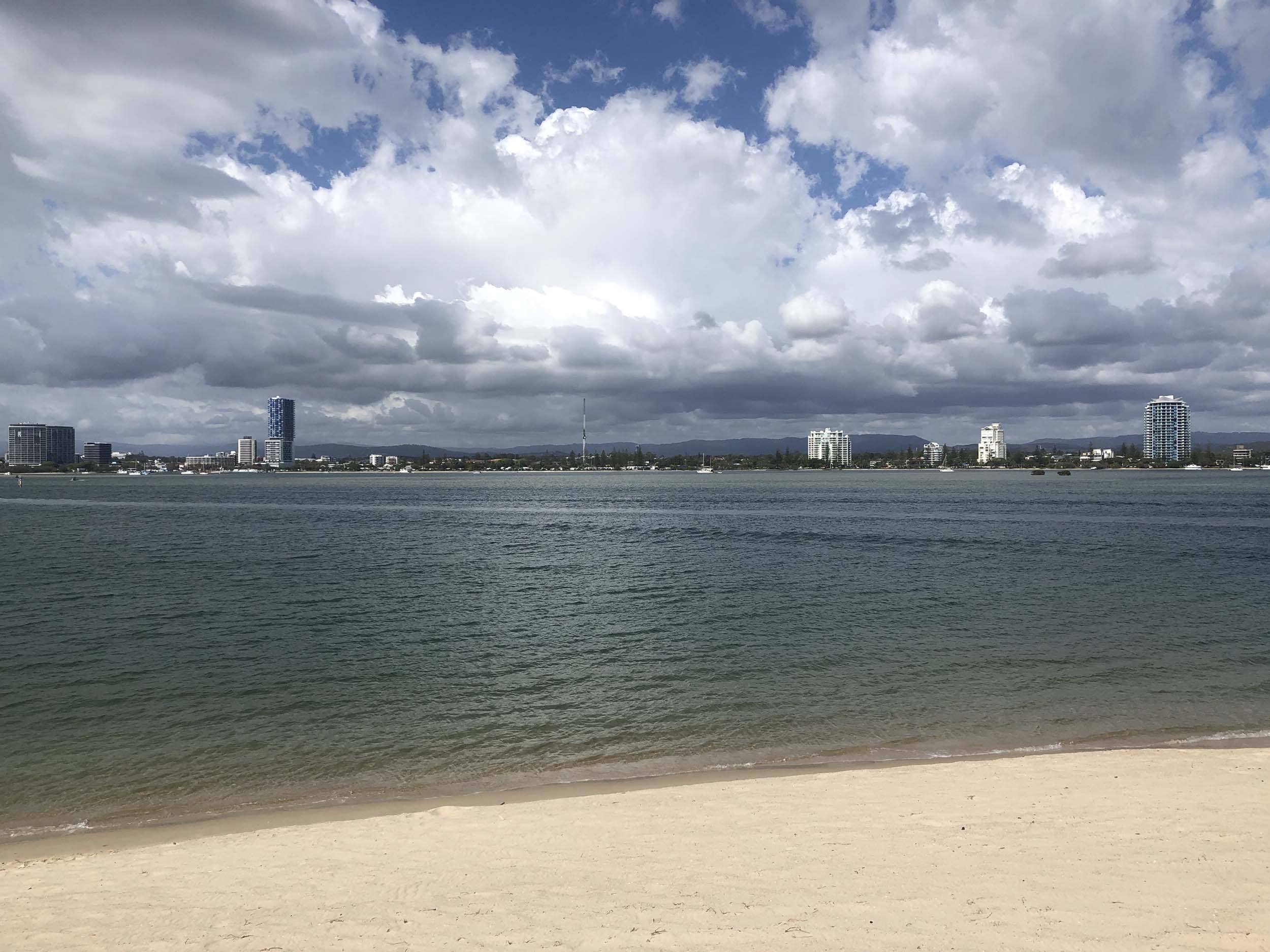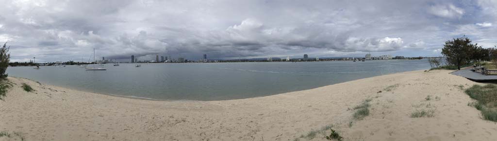 As usual, I rode Northward to my Lands End turnaround point. I continued down to MacIntosh Is, did a lap. Over the Bridge at Narrowneck then along the Shared Path to my normal spot at Surfers, still near Hanlan St. I stopped and took my weather photos. I headed off to the Spit along the various shared paths with a beautiful tail breeze.