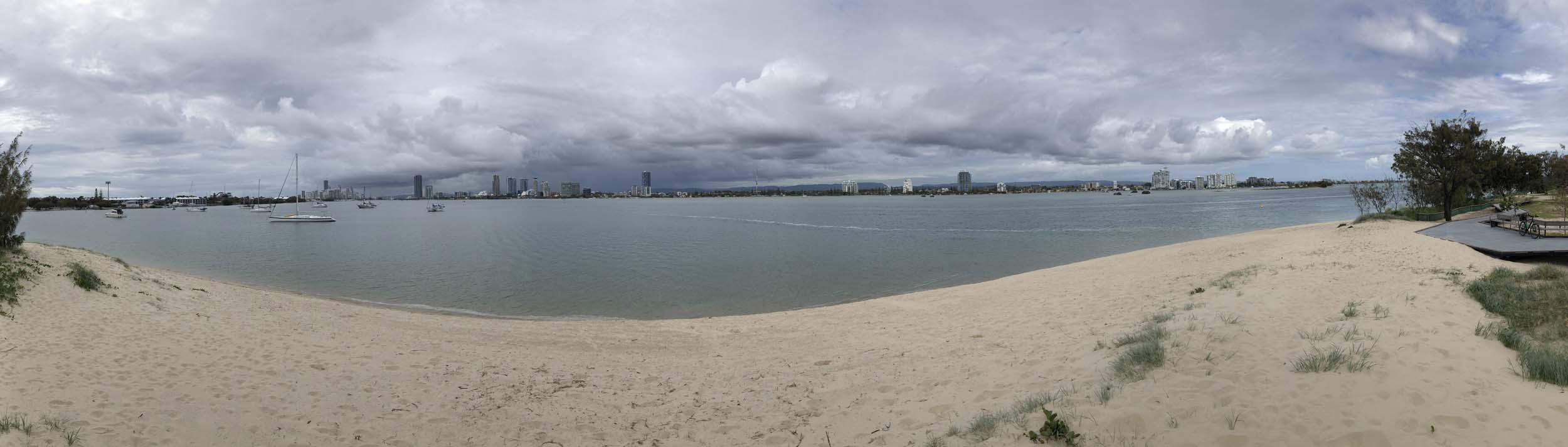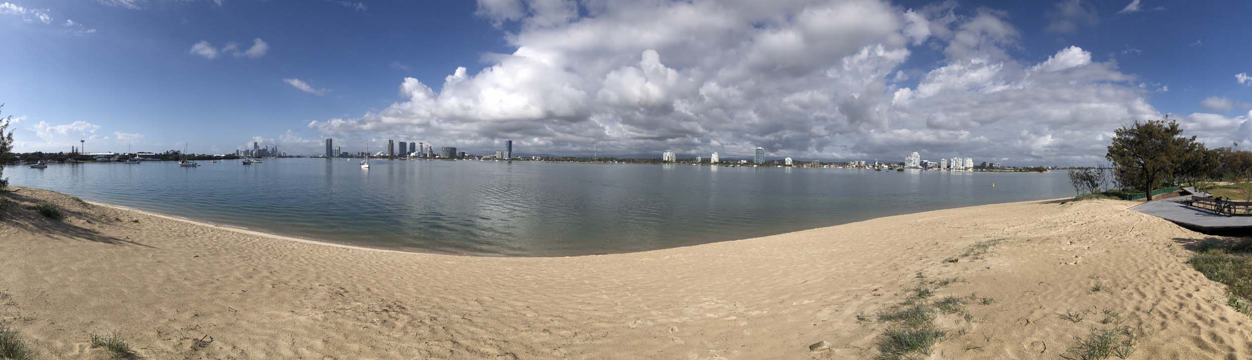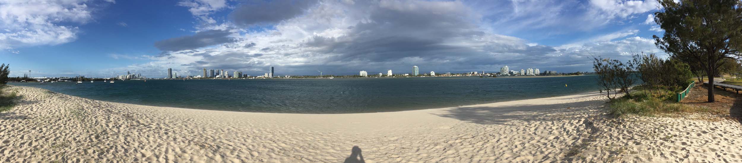 As usual, I rode Northward to my Lands End turnaround point. I continued down to MacIntosh Is, did a lap. Over the Bridge at Narrowneck then along the Shared Path to my normal spot at Surfers, still near Hanlan St. I stopped and took my weather photos. I headed off to the Spit along the various shared paths with a beautiful tail breeze.