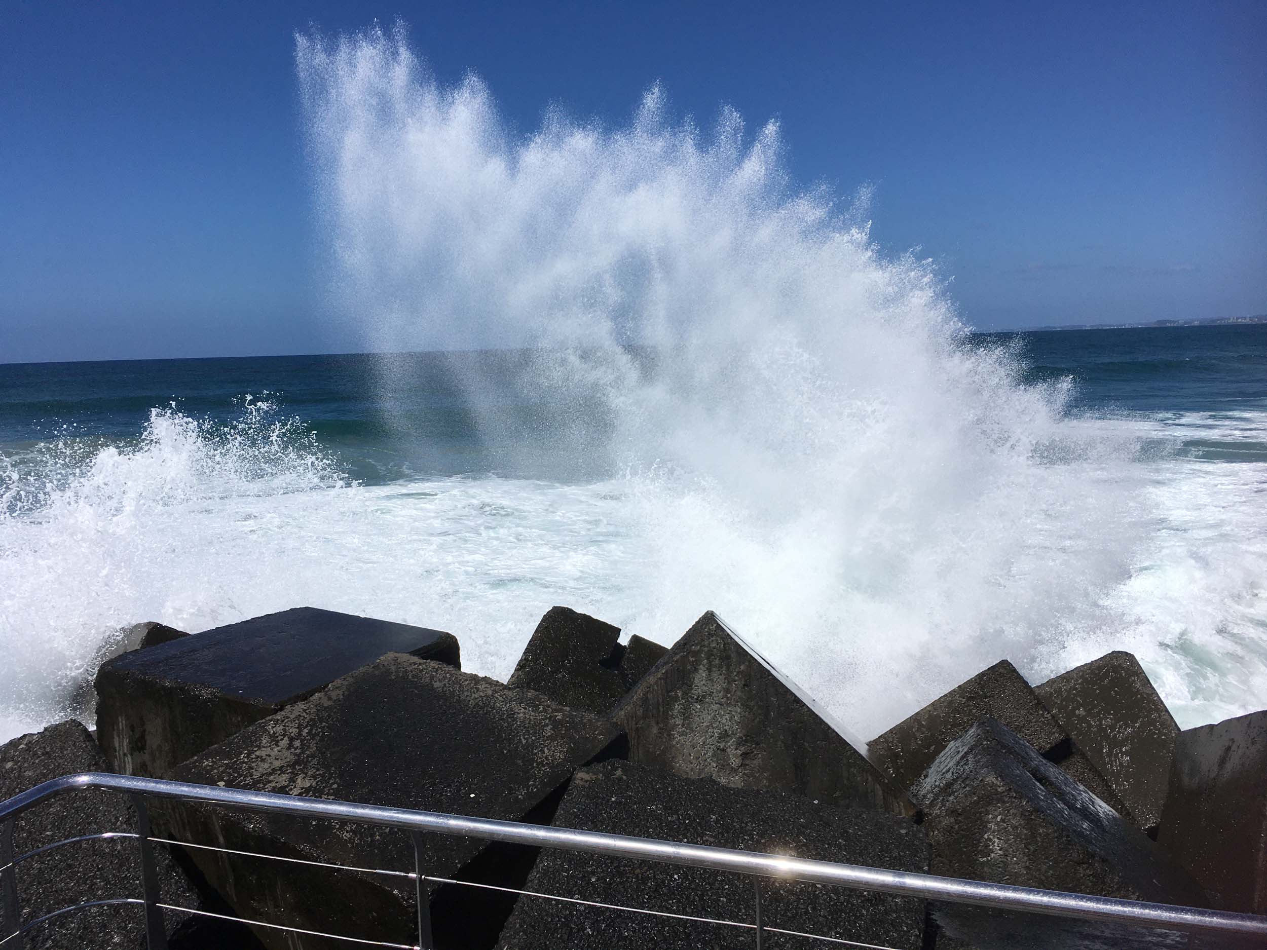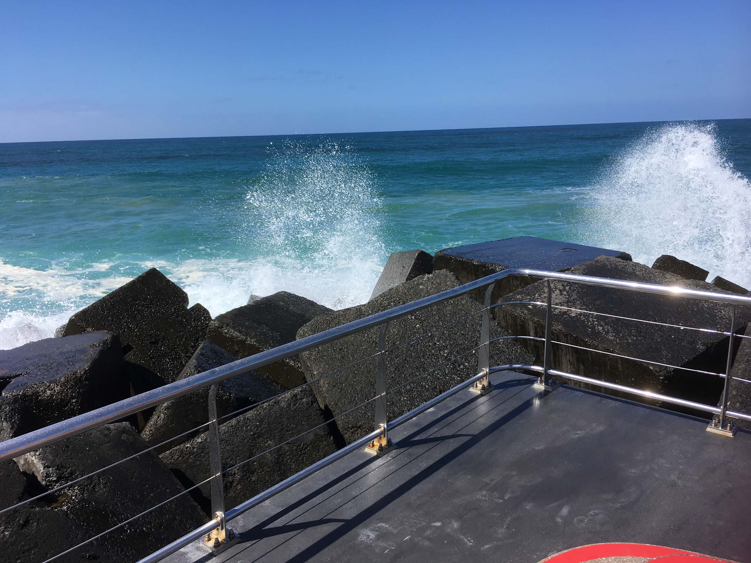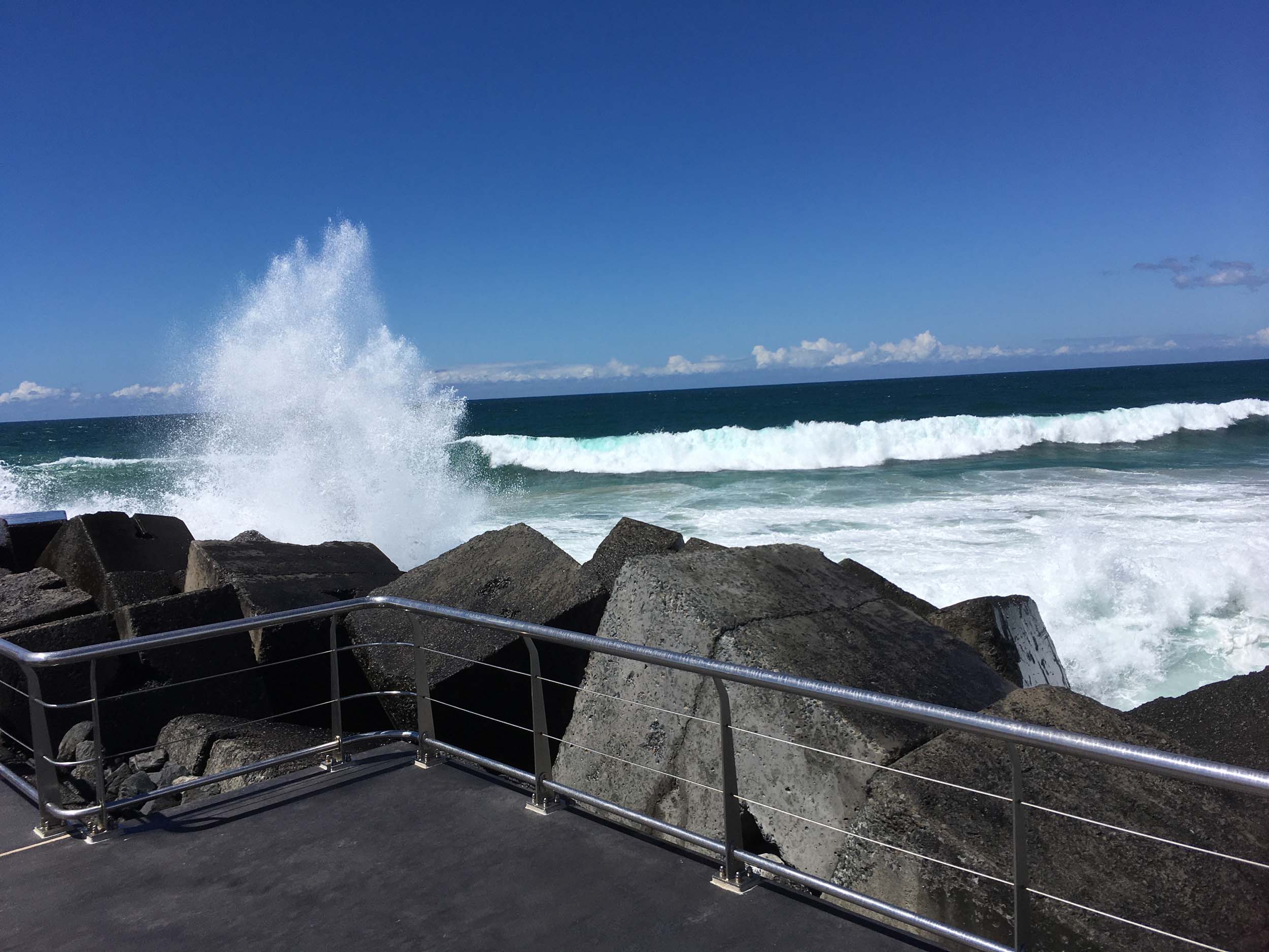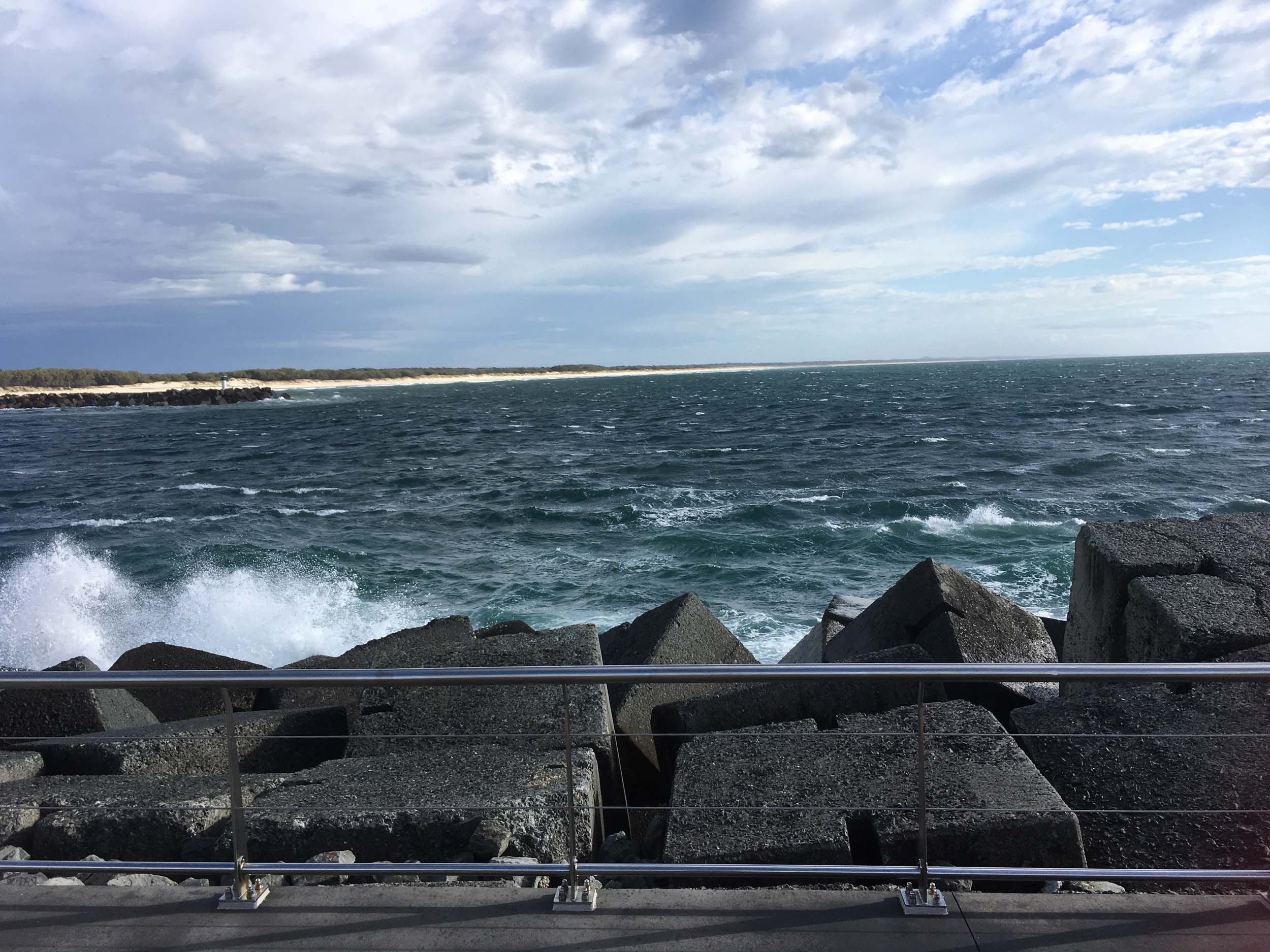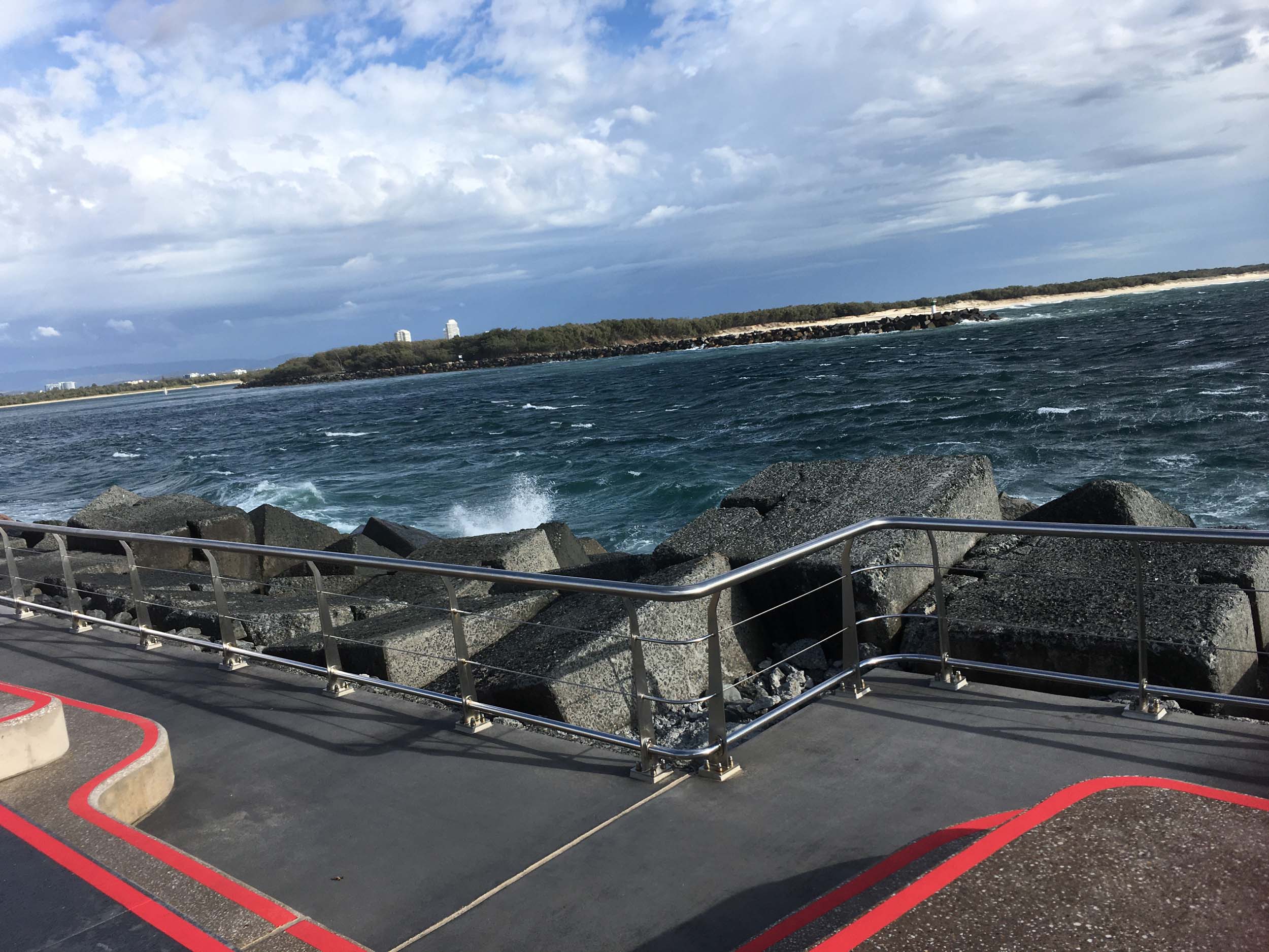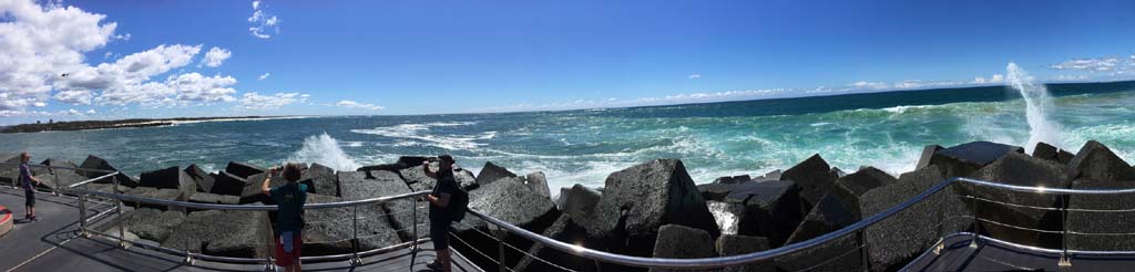As usual, I rode Northward to my Lands End turnaround point. I couldn't be stuffed riding to Surfers today, so I rode over the Sundale bridge and turned left and rode past the Southport YC. I continued to the Seaway via the Federation Walk. Did a lap of Doug Jennings Park, then out to the end of The Spit, down to the end of Moondarewa Spit, took a few photos at the end of the wooden boardwalk, back out to the end of The Spit, got damp and managed a few photos, as the waves were quite large.
