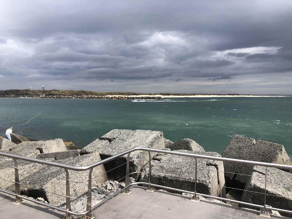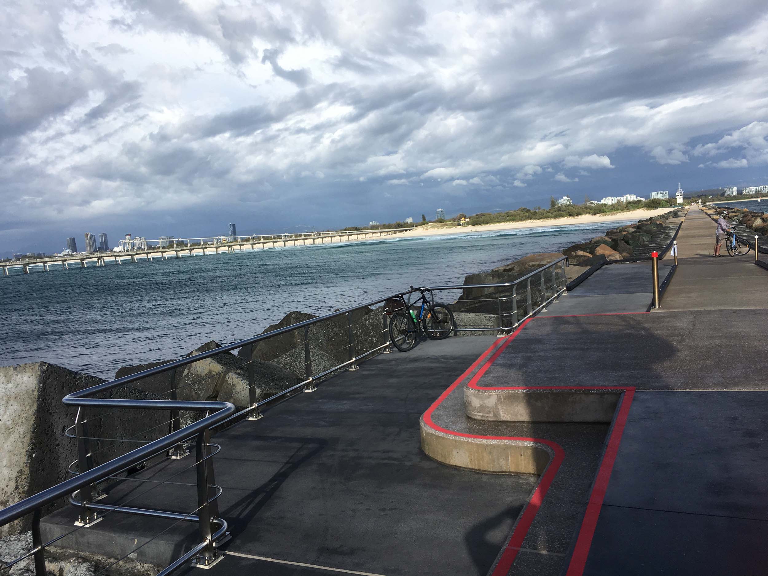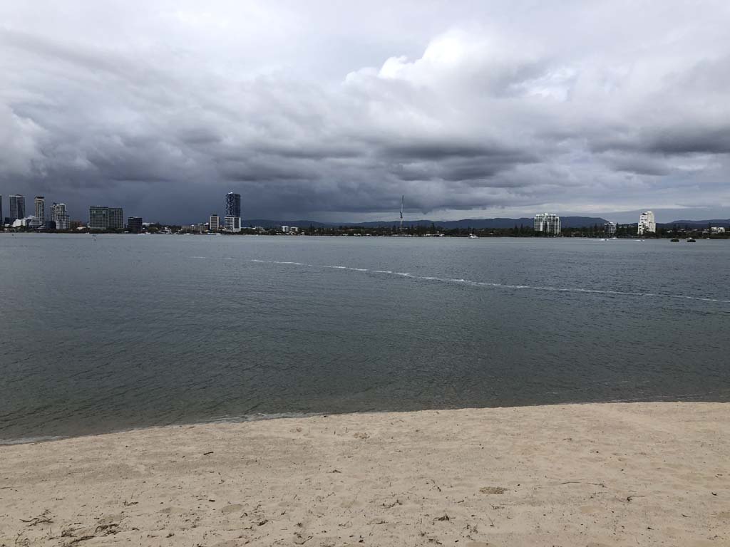 As usual, I rode Northward, to my Lands End turnaround point. Continuing through the Broadwater Parklands. I continued down to MacIntosh Is, did a lap. Over the Bridge at Narrowneck then along the Shared Path, to my normal spot at Surfers, to take my weather photos. I headed off to the Spit along the various shared paths. Being a weekday but school holidays, the shared paths were busy.