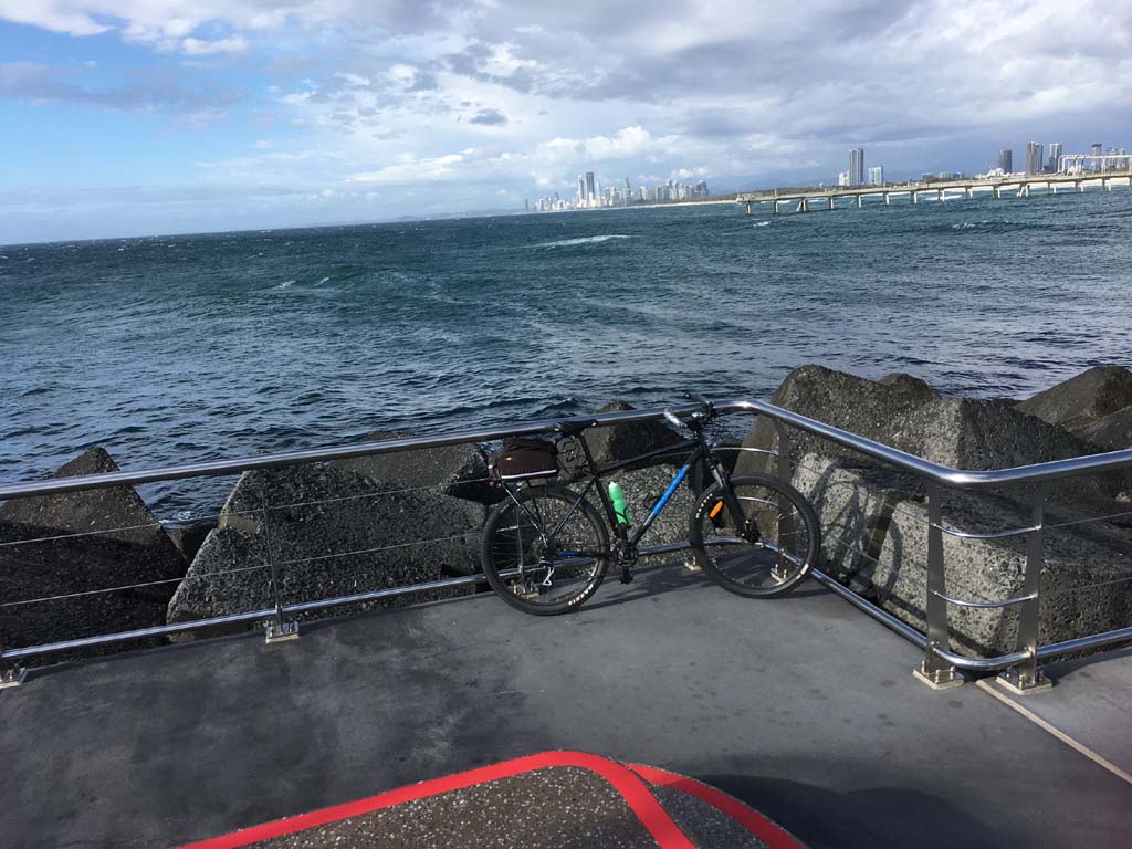 I left home at 6:00am, I woke early and decided to ride. The breeze was blowing like buggery from the South and the Broadwater had some chop.
