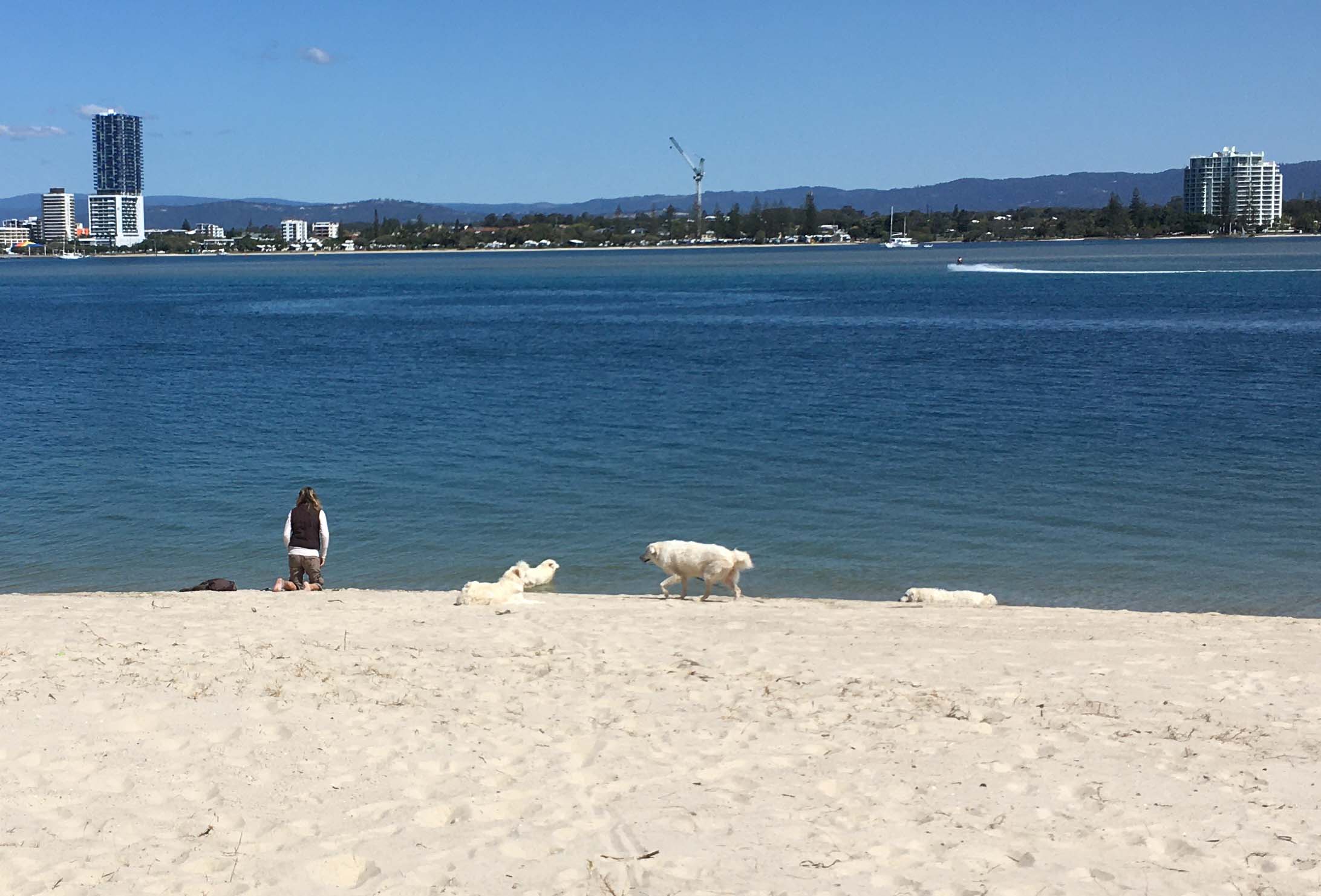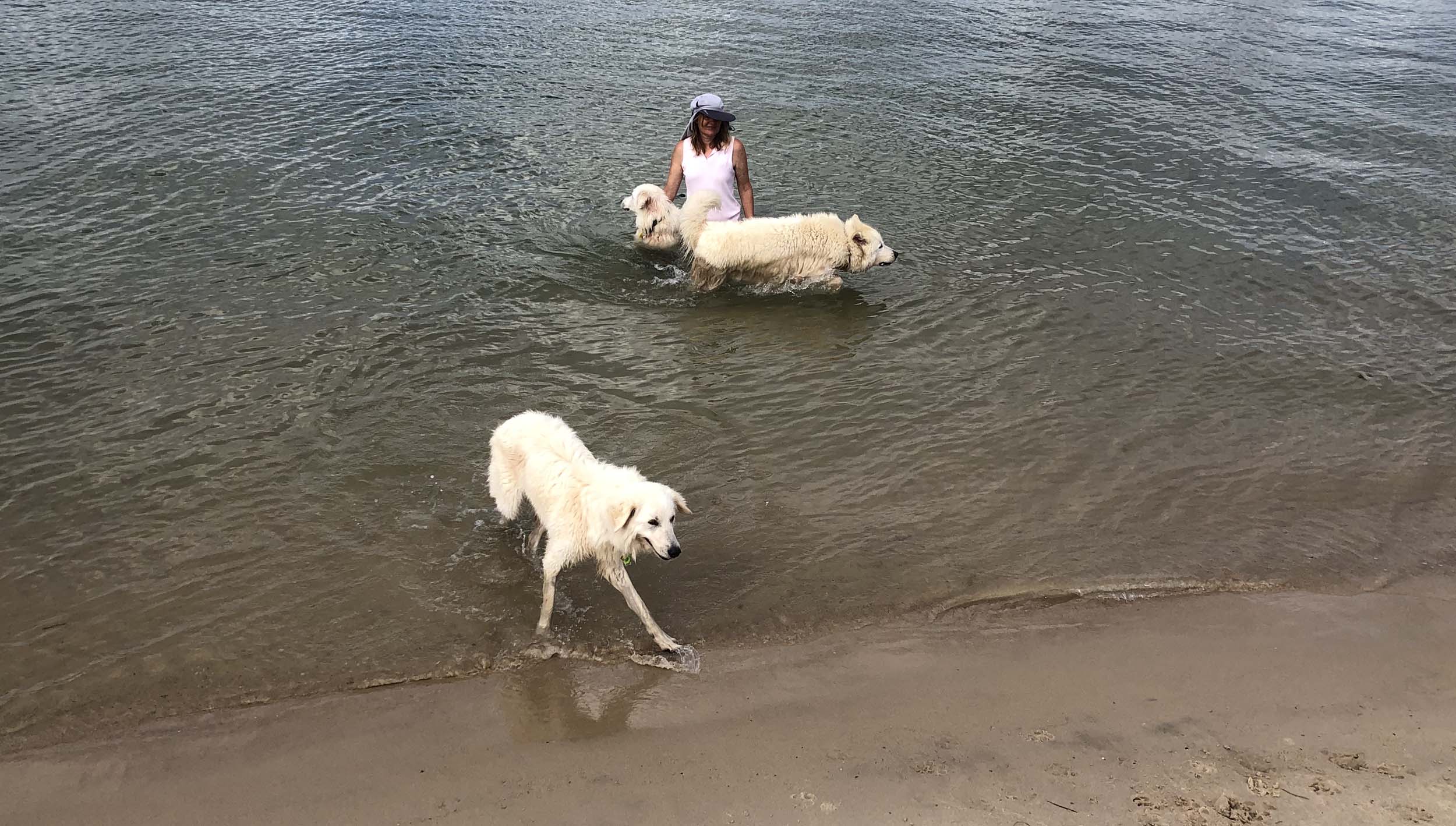 Today's highlight: was seeing the Maremma dogs playing in the water at the Moondarewa Spit.
