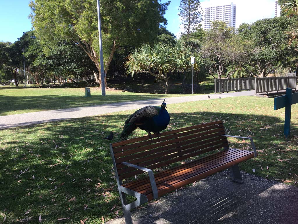 I rode around Marina Mirage and the jetty, then crossed over Seaworld Drive back onto the Federation Walk and continued back to MacIntosh Island. Goosey lucy and mates were out and enjoying life while I noticed Peter Peacock and mates were just relaxing.