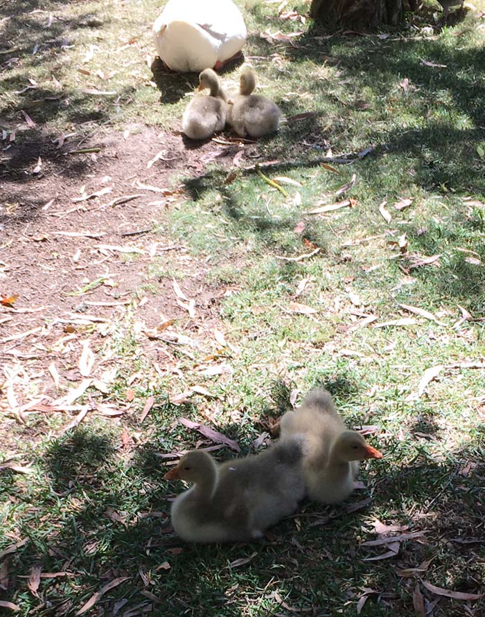 PS: On Wednesday the Goose/Duck with 5 babies, now is down to 2 babies. Unfortunately.