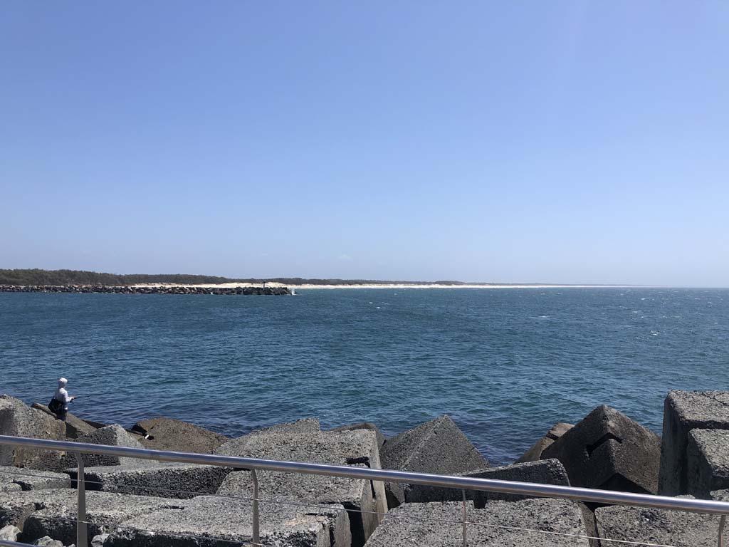 I continued to the Seaway via the Federation Walk. Nearly saw an Eastern Brown snake, but he had moved into the long grass. Rode to the tip of the Moondarewa Spit, then out to the tip of the Seawall/Spit. Then rode back to the tip of the Moondarewa Spit then back to the tip of the Seawall/Spit. Took a few photos at the end of both Spits, sat and ate my museli bar.