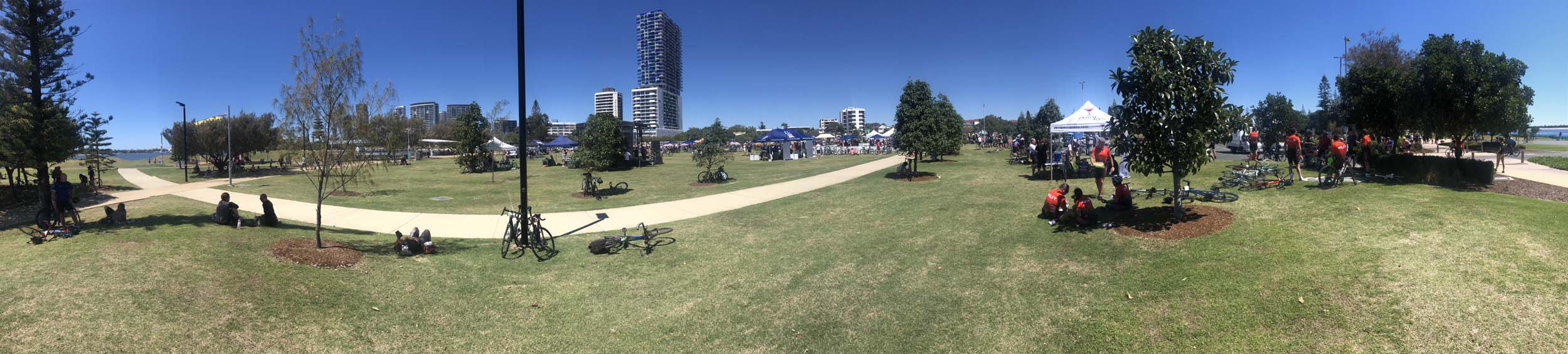 I rode through Muriel Henchman Park, there was a queue of jetski owners waiting to lauch their jetskis, but the downside for them is that there aare no car spots. Unreal. I rode along the bike path upto and through Seaworld's carpark.