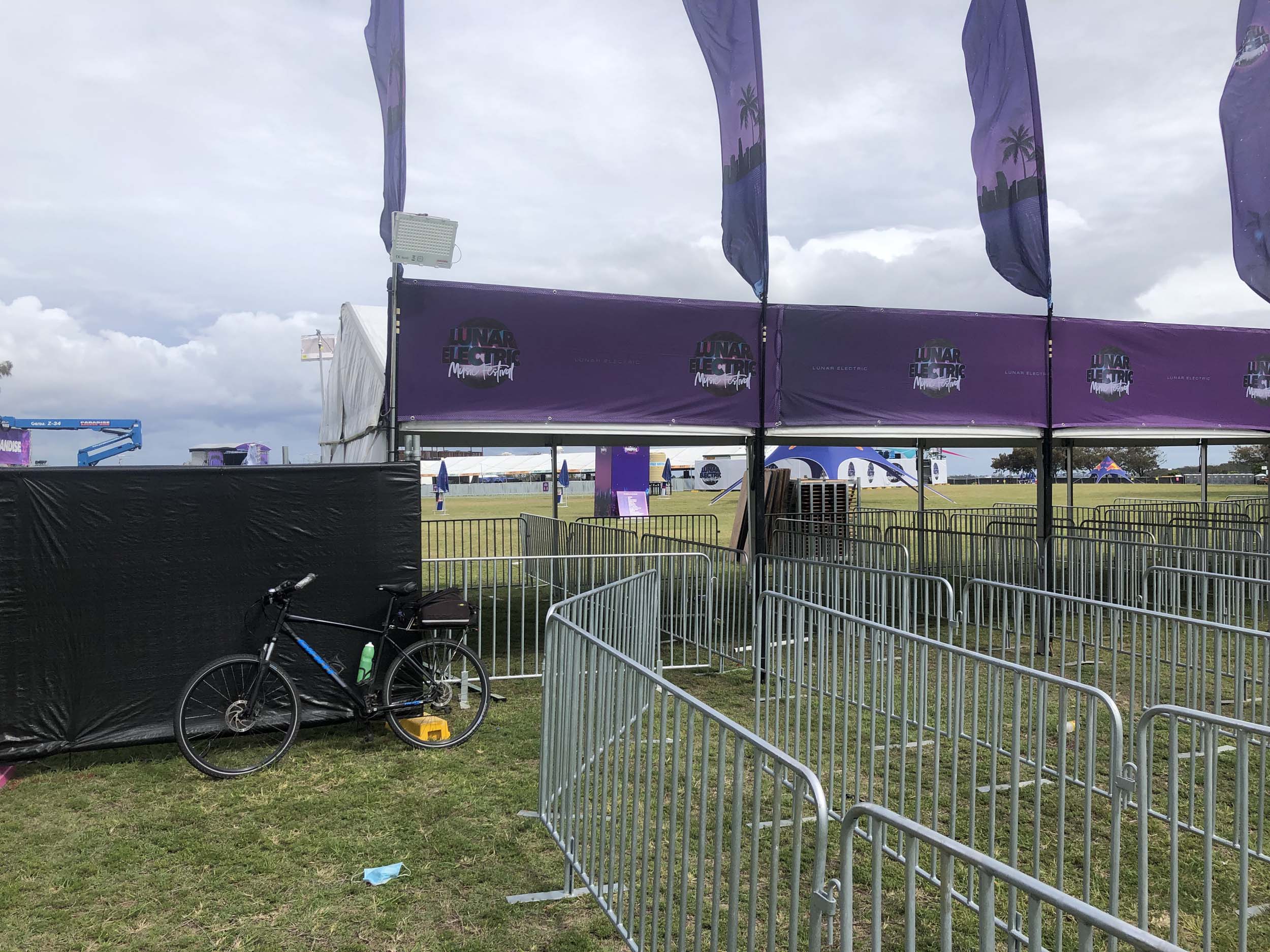 The marathon which was to be run this weekend, has been cancelled, so the workmen are packing up tents, temporary fencing etc.