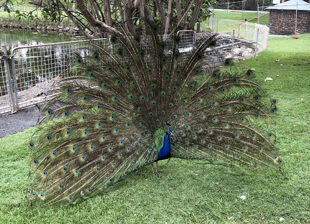 I rode around Marina Mirage and the jetty. This is where Australia is moored. It is a 56.1m long bloody big boat, so I took some photos of it. Crossed over Seaworld Drive back onto the Federation Walk and continued back to MacIntosh Island. Goosey lucy and mates were out and enjoying life while I noticed Peter Peacock and mates were just relaxing.
