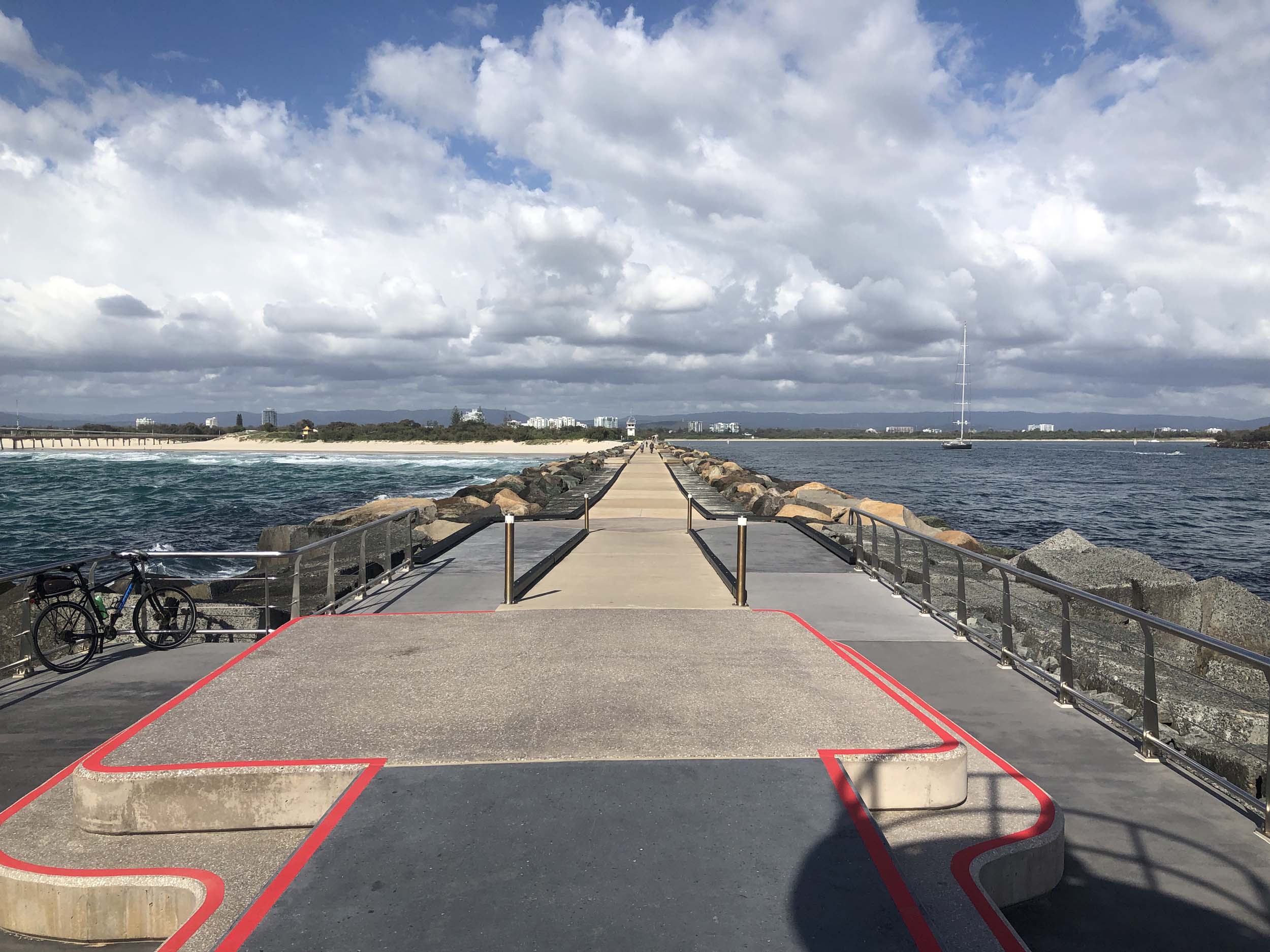 As usual, I rode Northward to my Lands End turnaround point. I continued down over Sundale bridge and turned left, rode past the Southport Yacht Club, then continued to the Seaway via the Federation Walk.