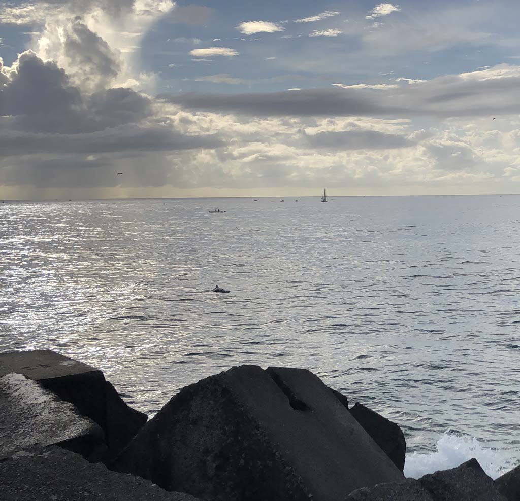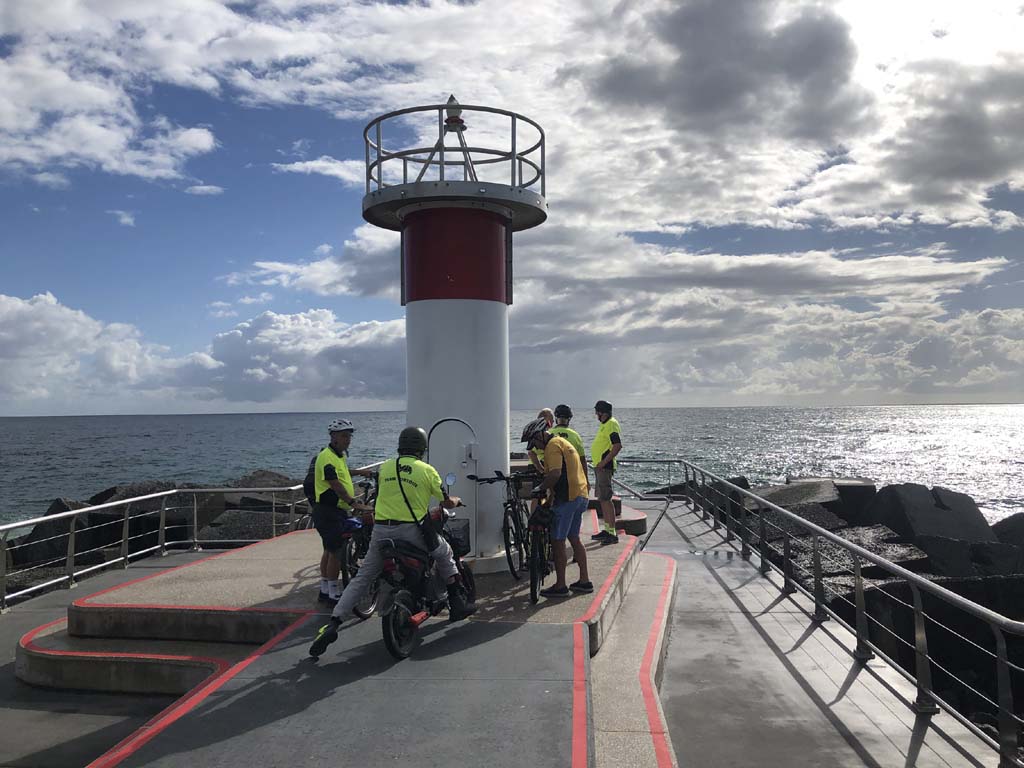 I continued to the Seaway via the Federation Walk. Rode to the tip of the Moondarewa Spit, then out to the tip of the Seawall/Spit. A pod of Dolphins were feeding just nearby. Then rode back to the tip of the Moondarewa Spit then back to the tip of the Seawall/Spit. Took a few photos at the end of both Spits, sat and ate my banana.
