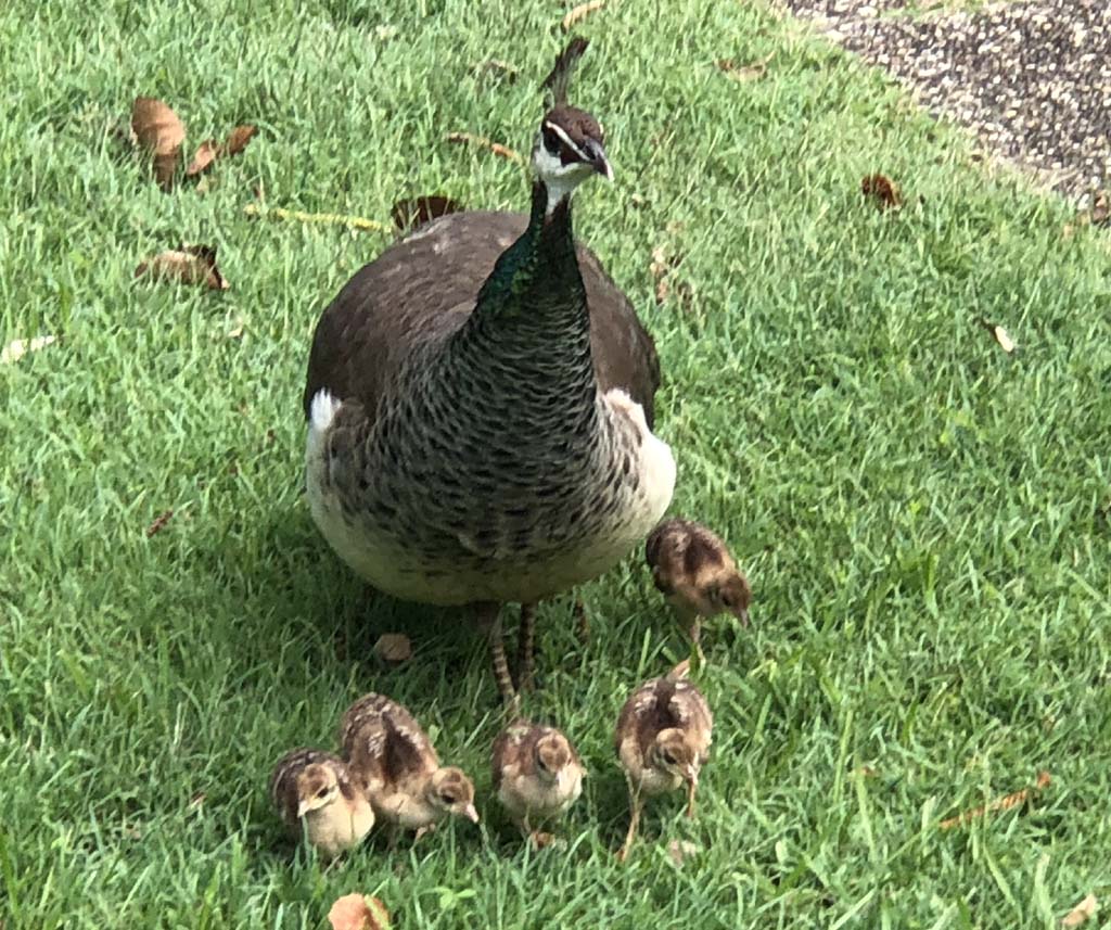 Crossed over Seaworld Drive back onto the Federation Walk and continued back to MacIntosh Island. Penny Peahen was showing off her 5 new babies. They are beautiful.