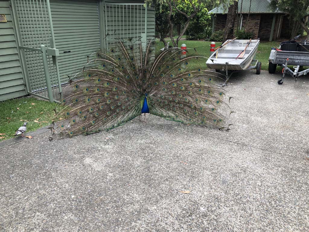 I rode around Marina Mirage and the jetty, then crossed over Seaworld Drive back onto the Federation Walk and continued back to MacIntosh Island. Goosey Lucy and mates were out and enjoying life while I noticed Peter Peacock and mates were just relaxing.