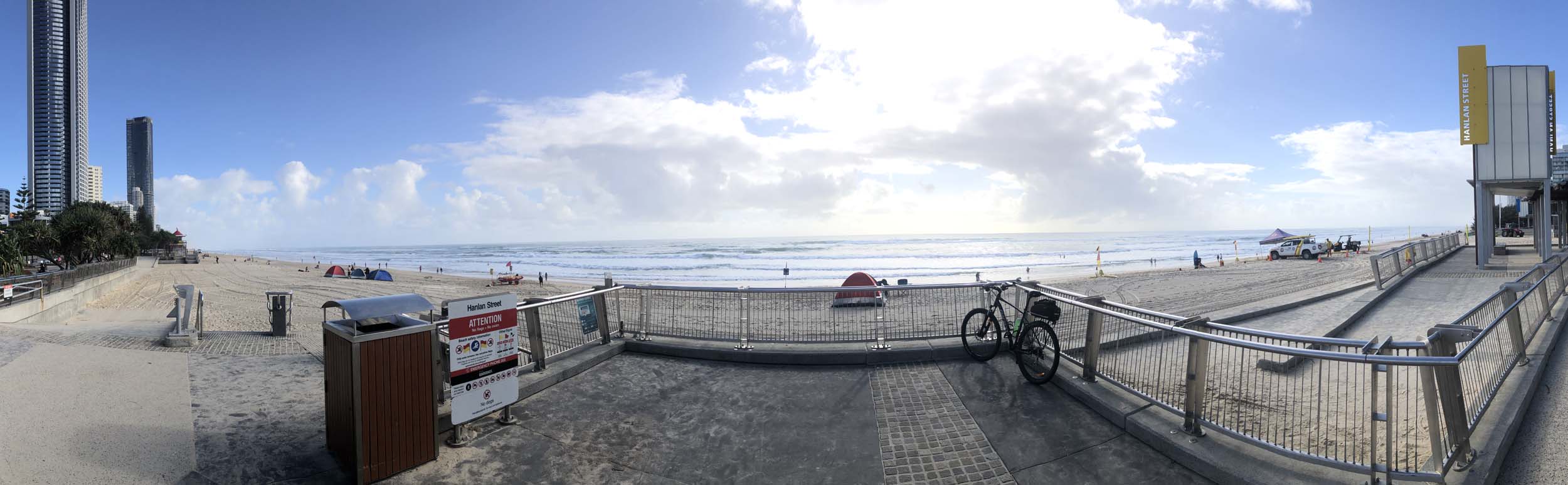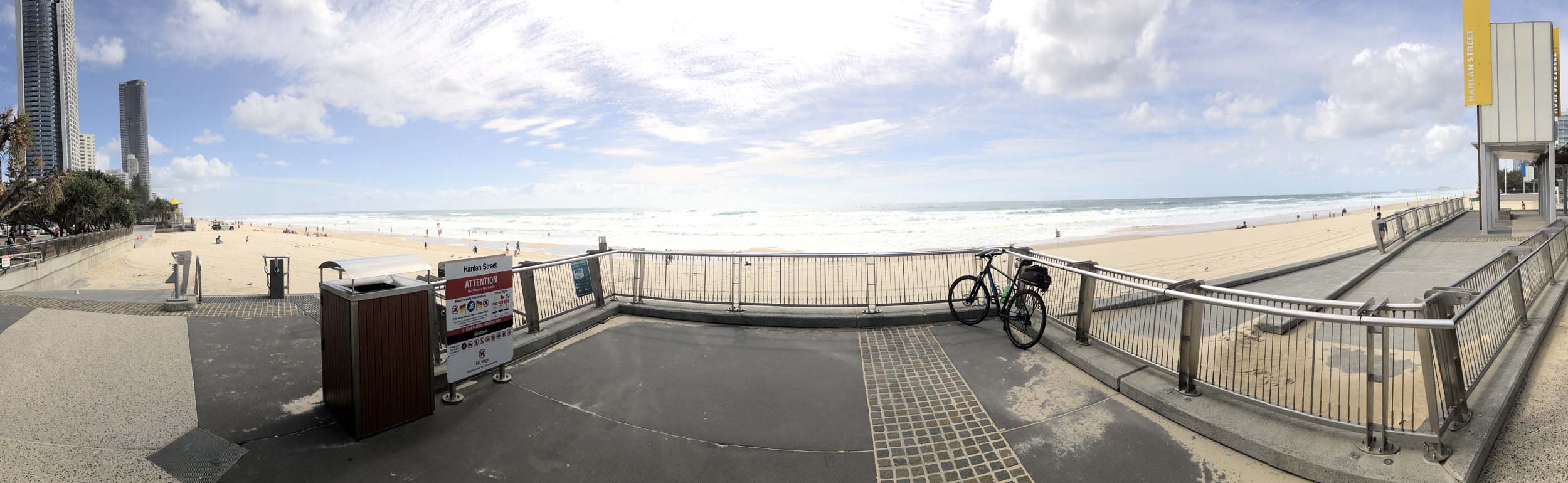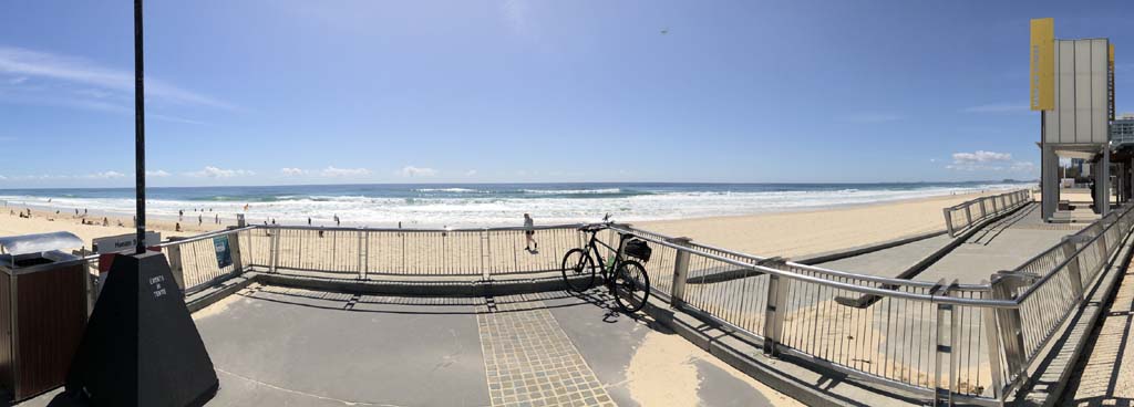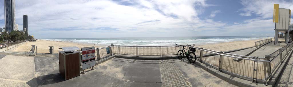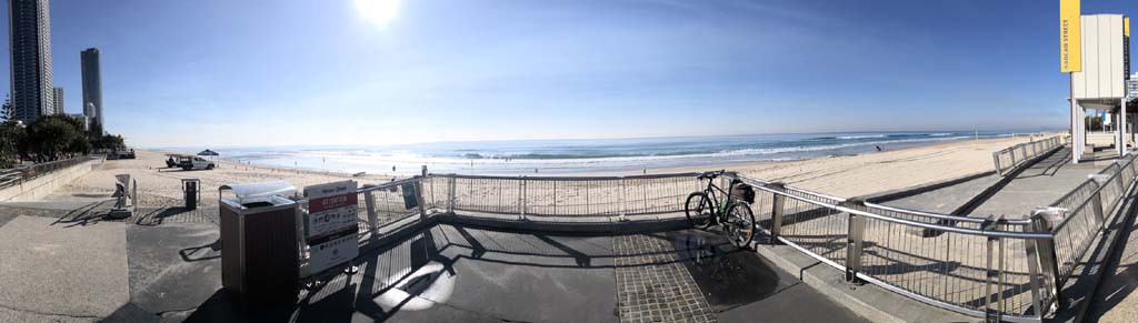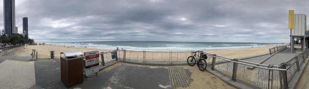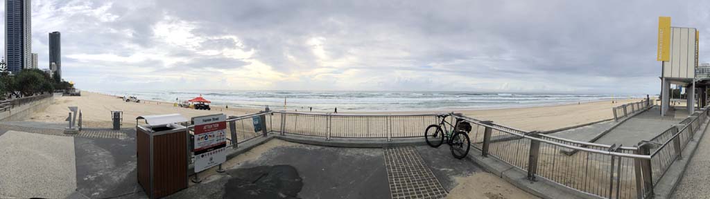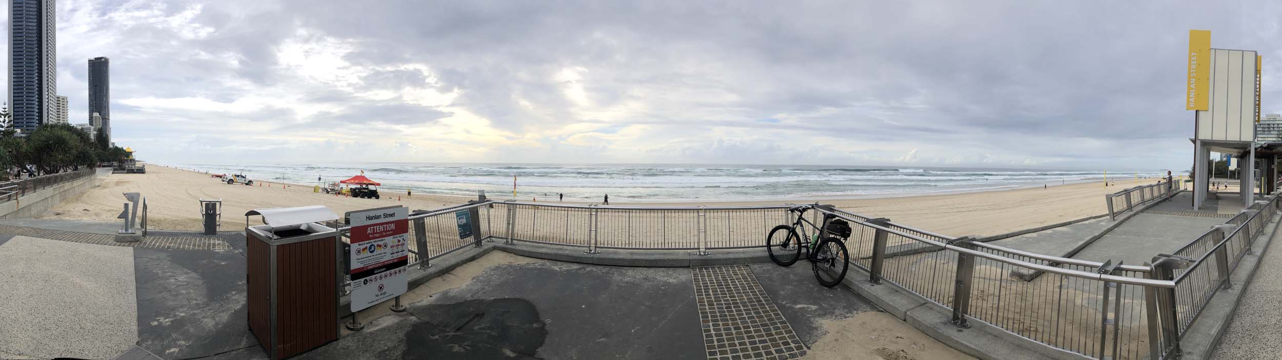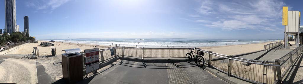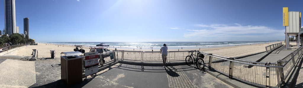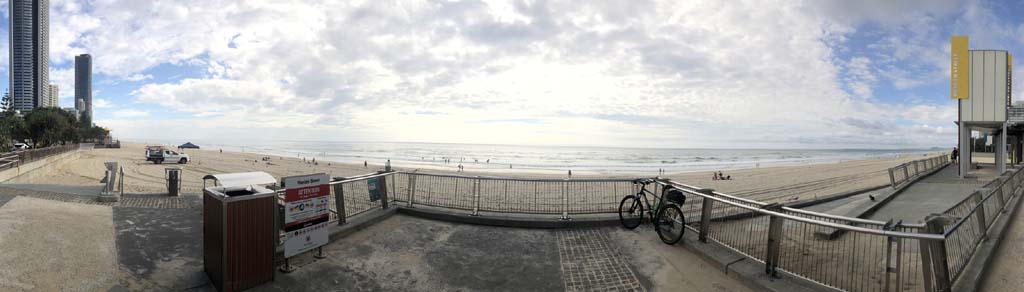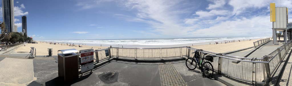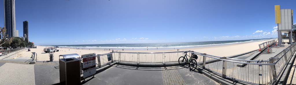 Over the Bridge at Narrowneck then along the Shared Path, to Surfers, to take the Schoolies's area. Strange, I didn't see any.
