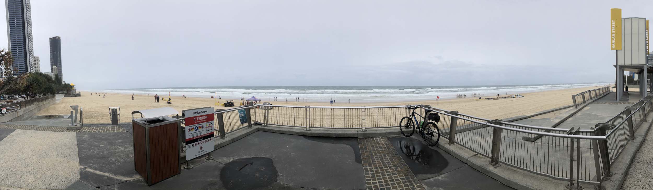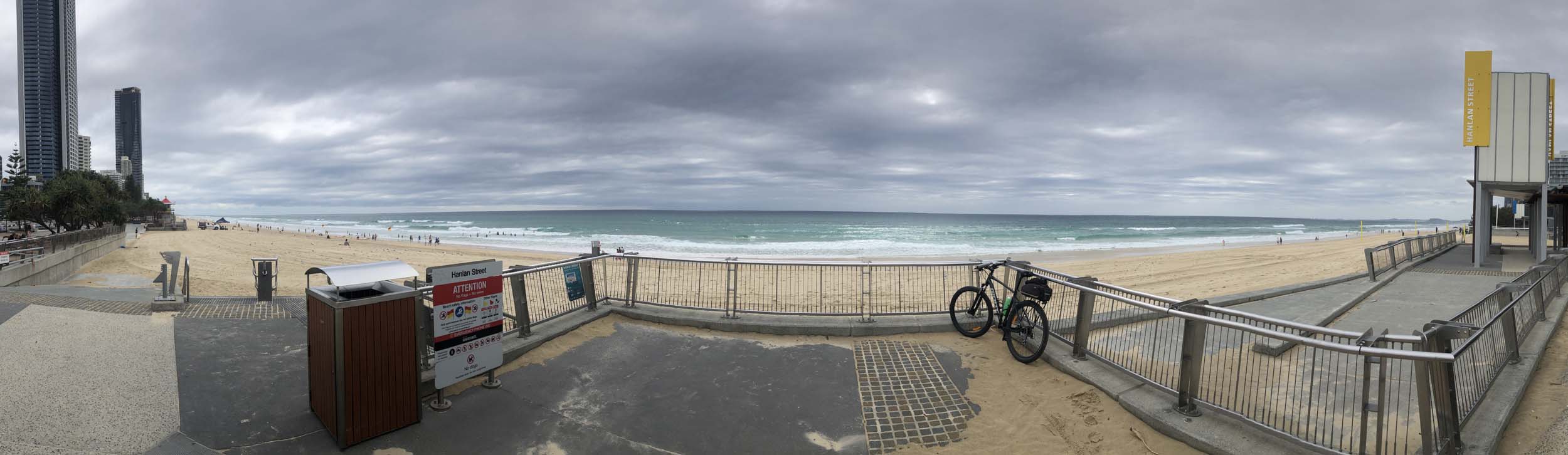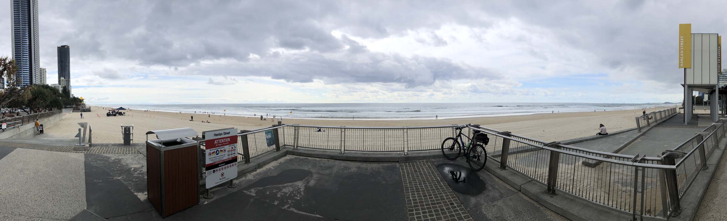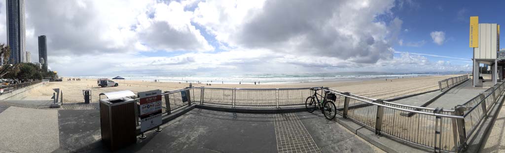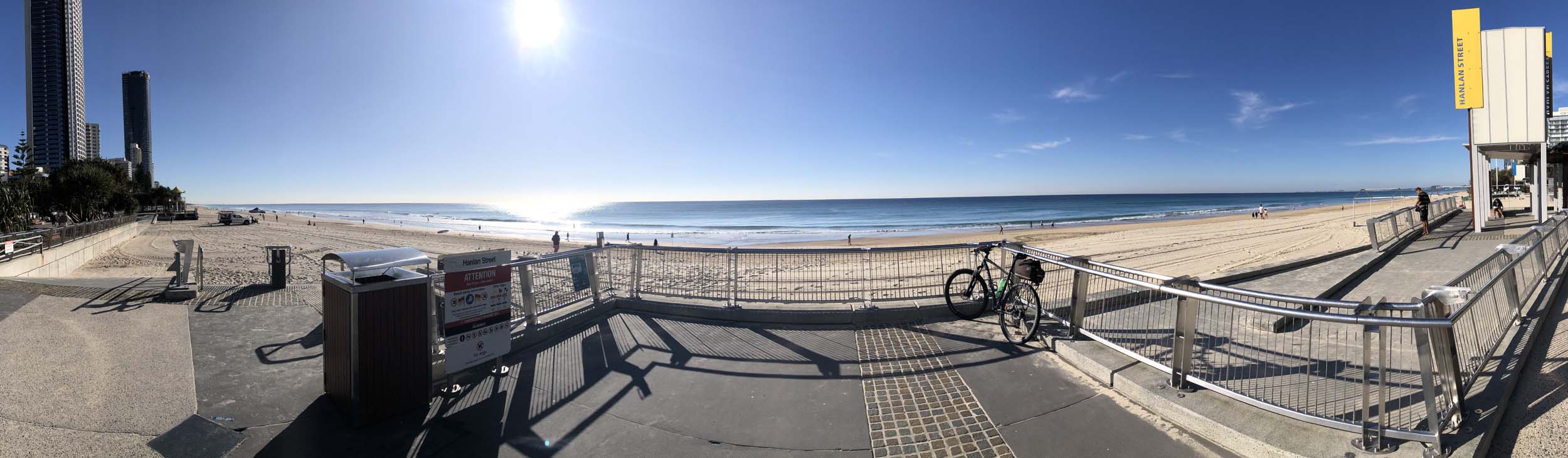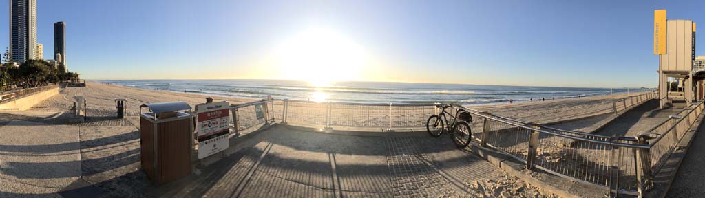 Over the Bridge at Narrowneck then along the Shared Path, to Surfers, to take the Schoolies's area. Strange, I didn't see any.