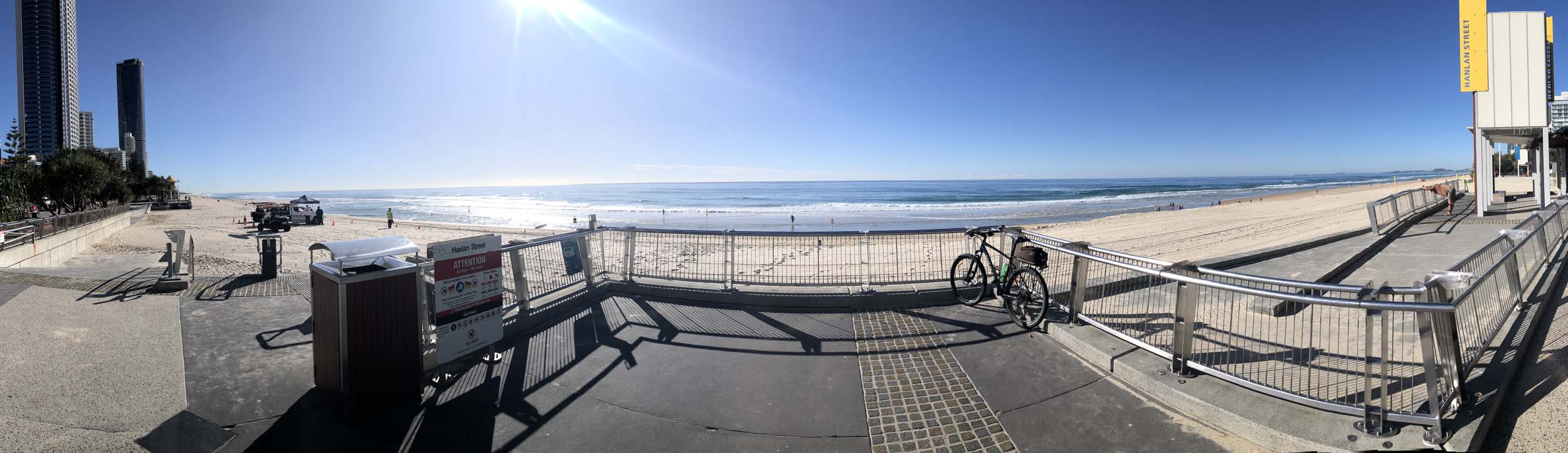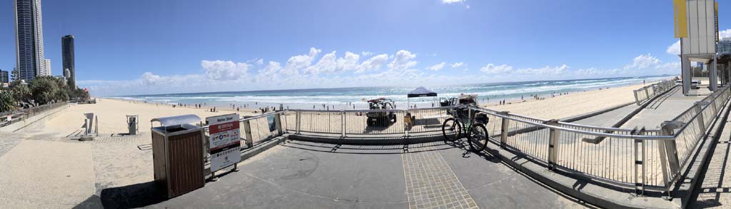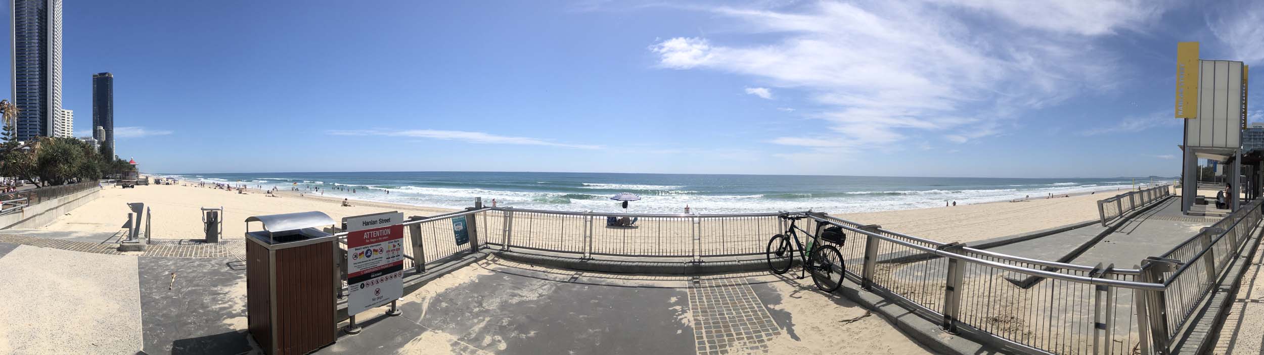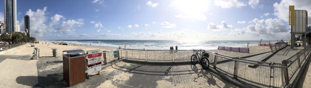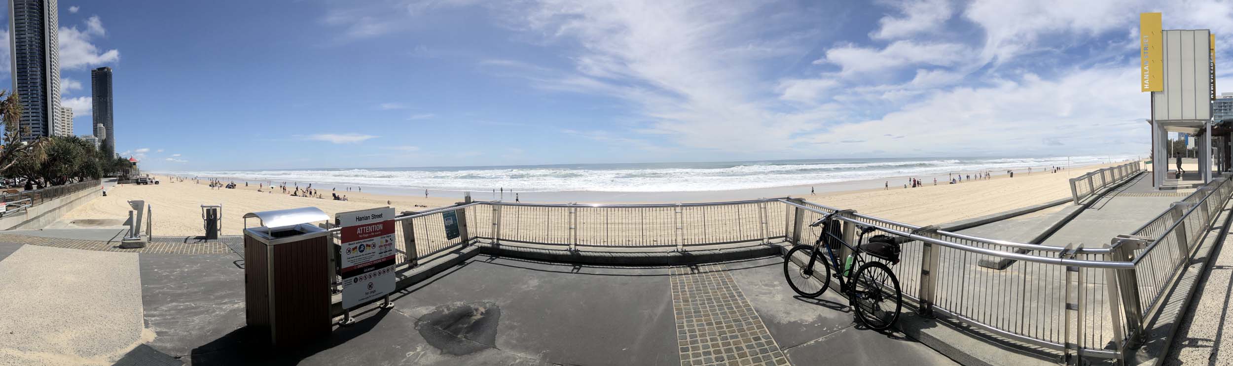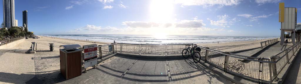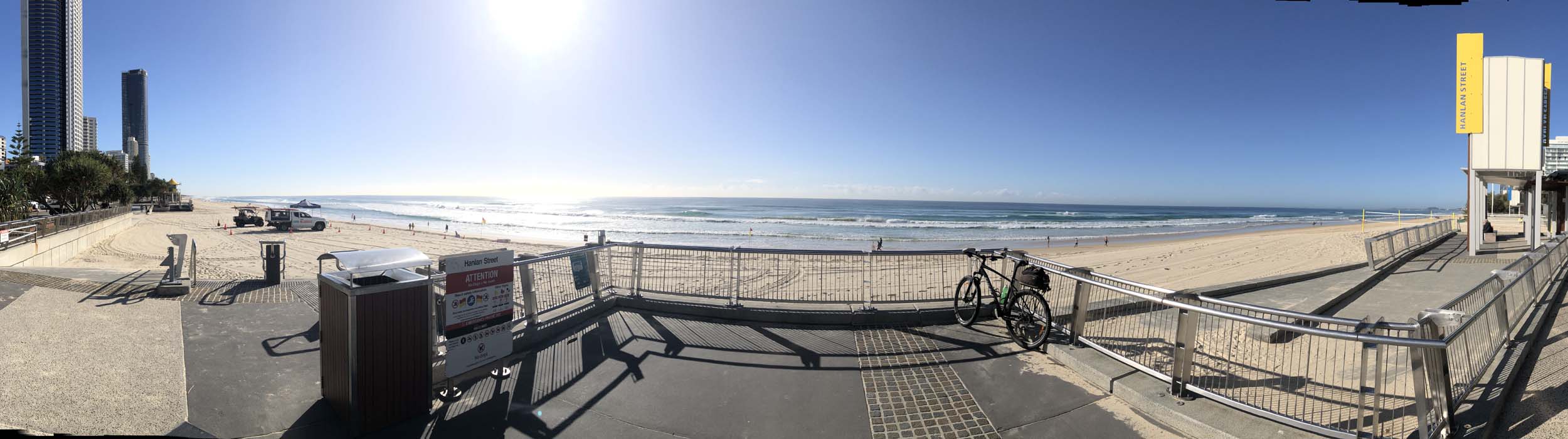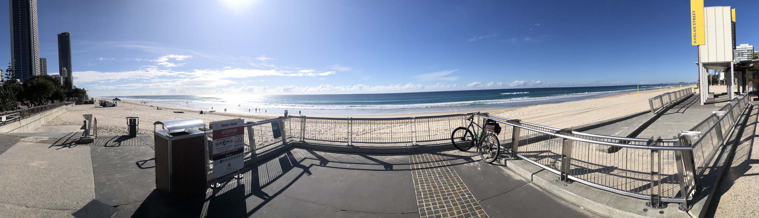 Over the Bridge at Narrowneck then along the Shared Path, to Surfers, to take the Schoolies's area. Strange, I didn't see any.