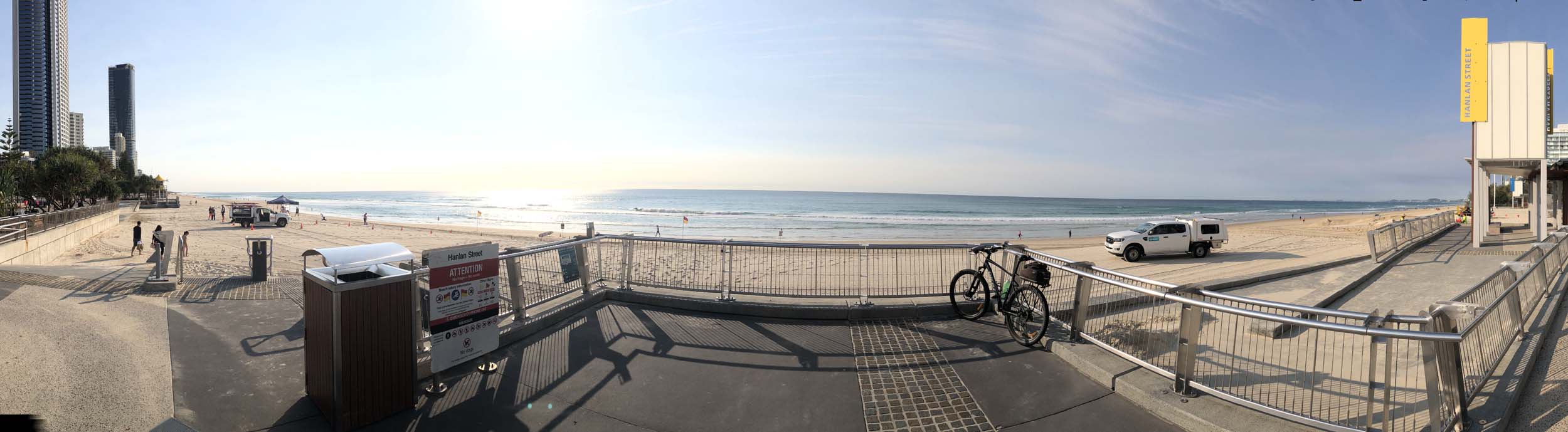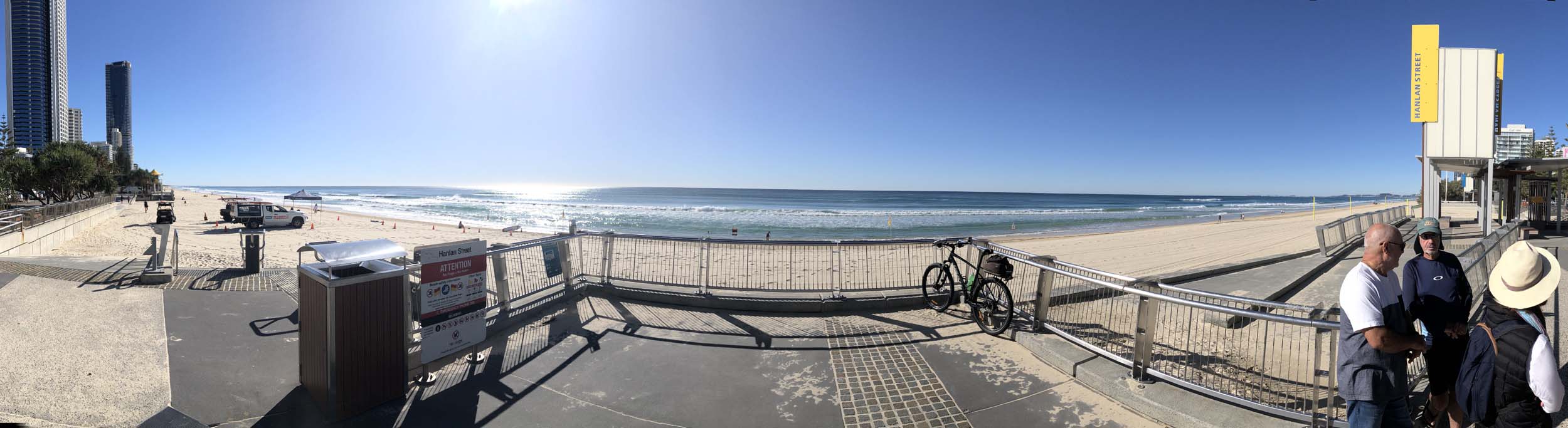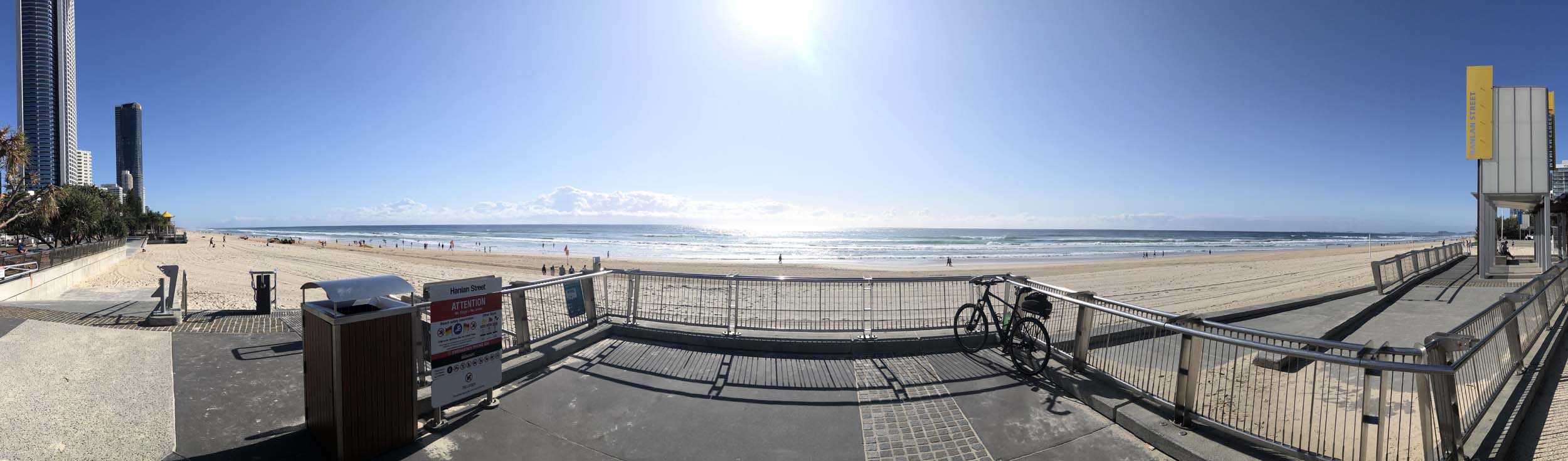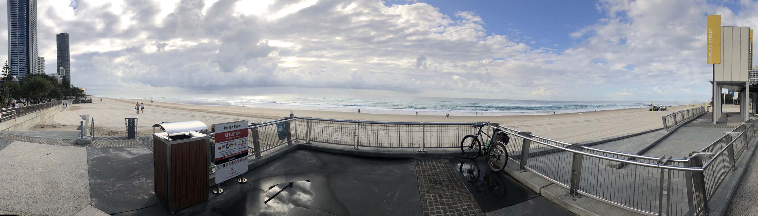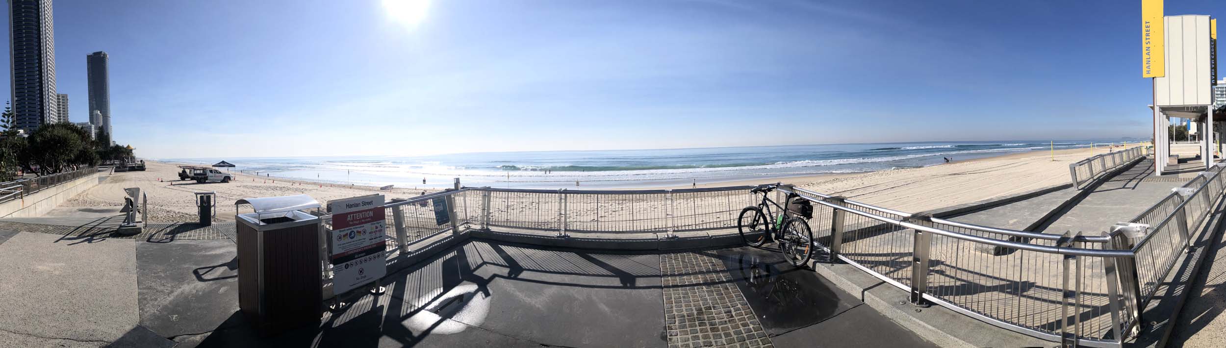 Over the Bridge at Narrowneck then along the Shared Path, to Surfers, to take the Schoolies's area. Strange, I didn't see any.