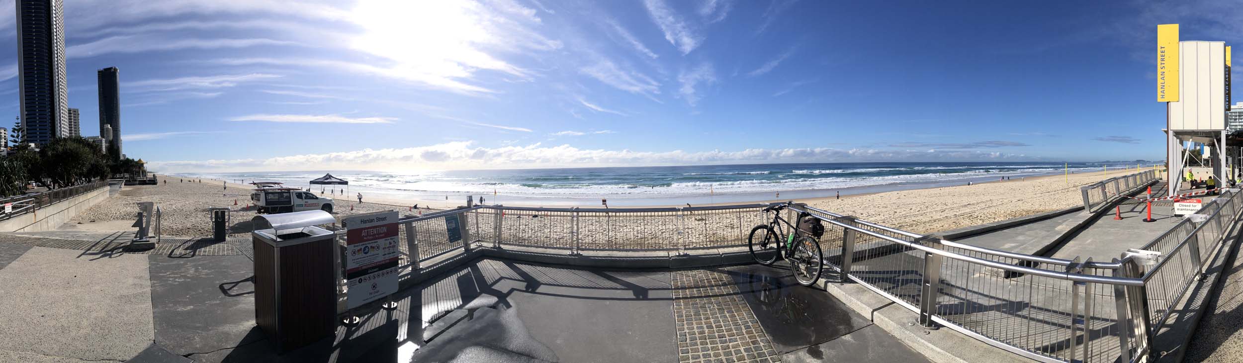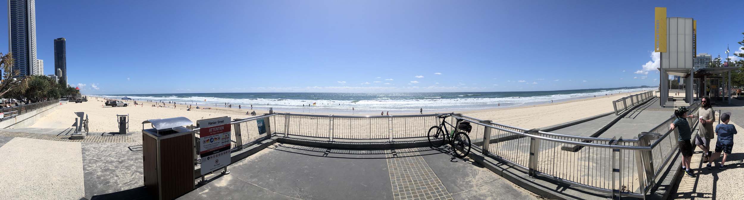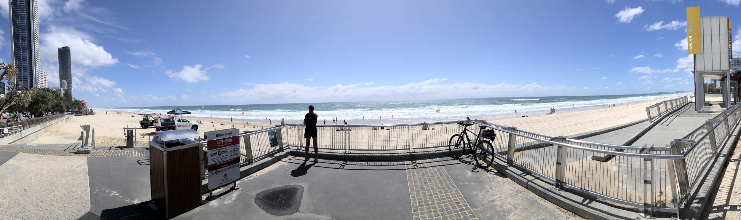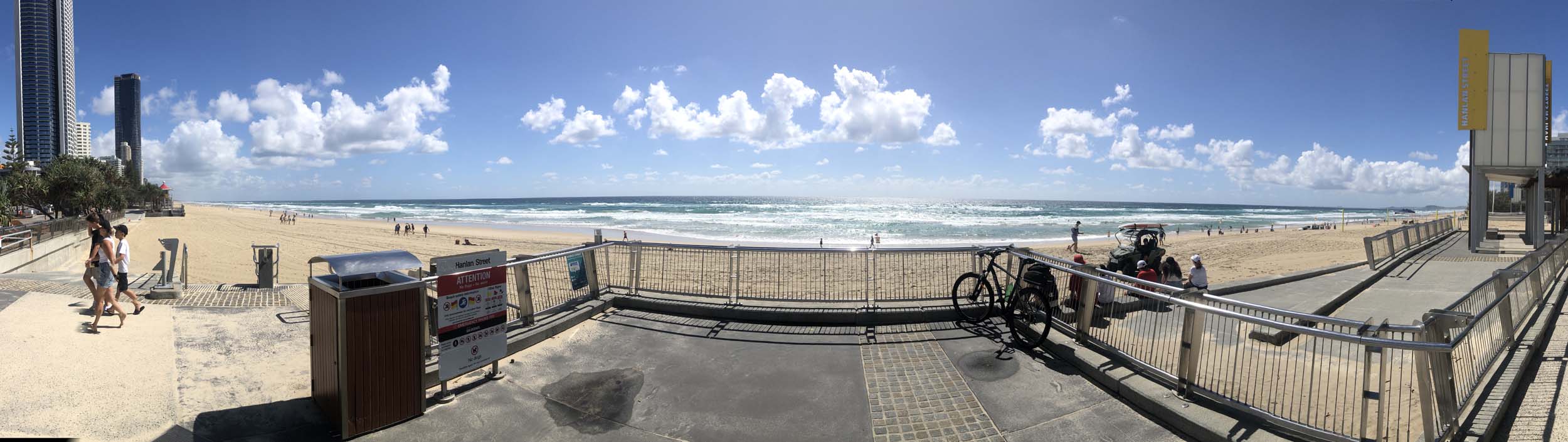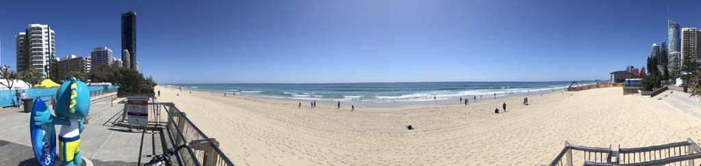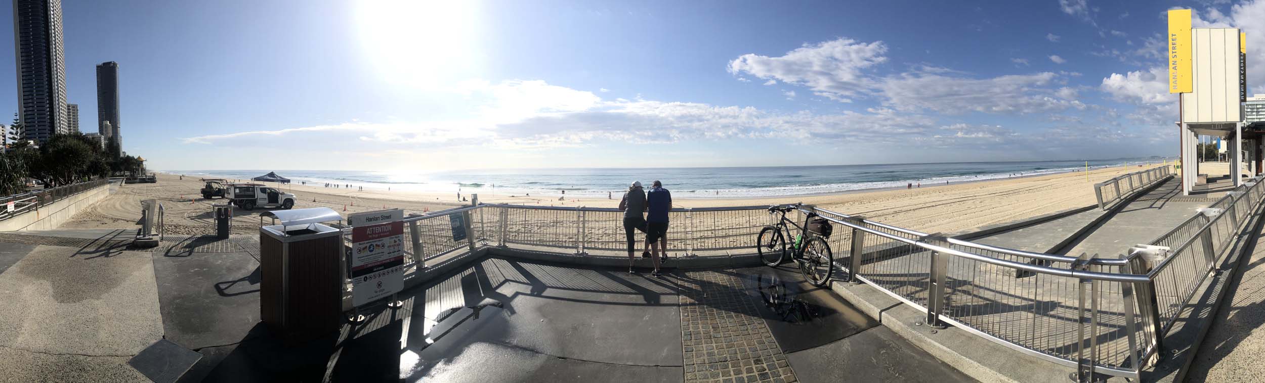 Over the Bridge at Narrowneck then along the Shared Path, to Surfers, to take the Schoolies's area. Strange, I didn't see any.