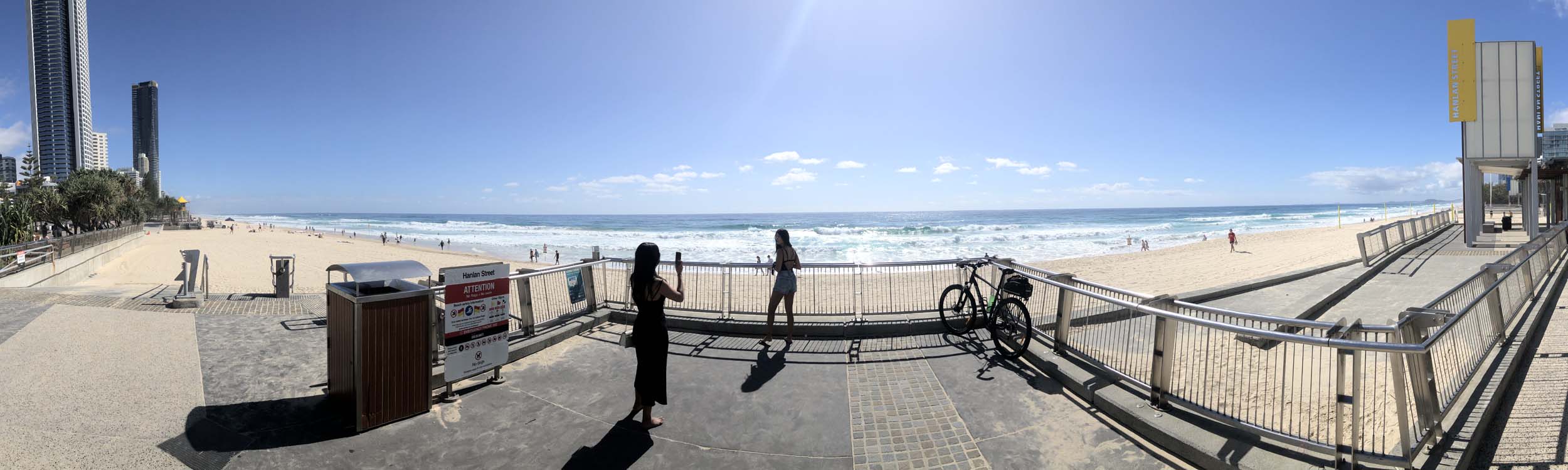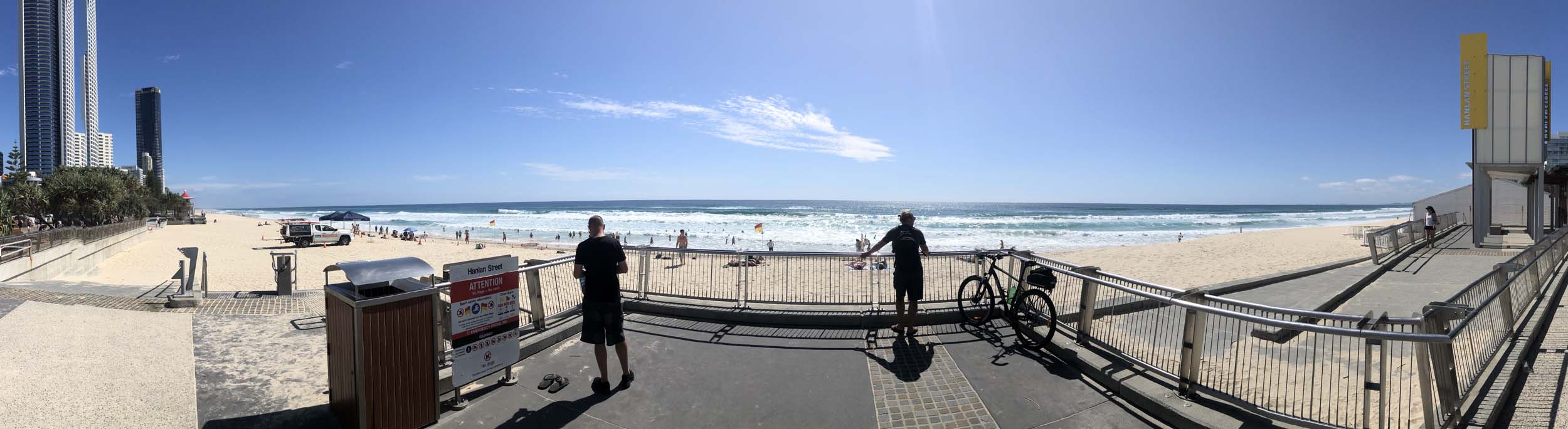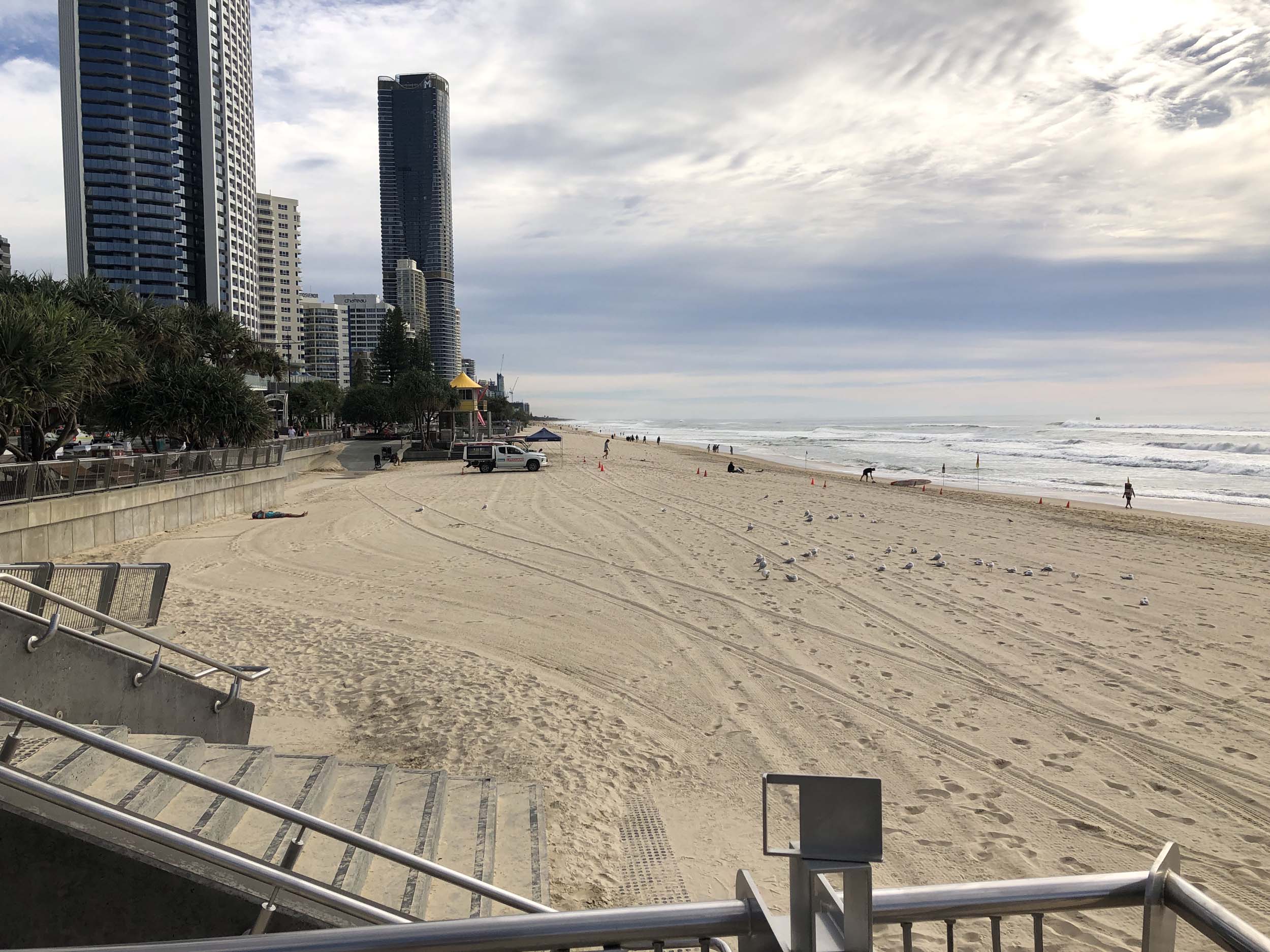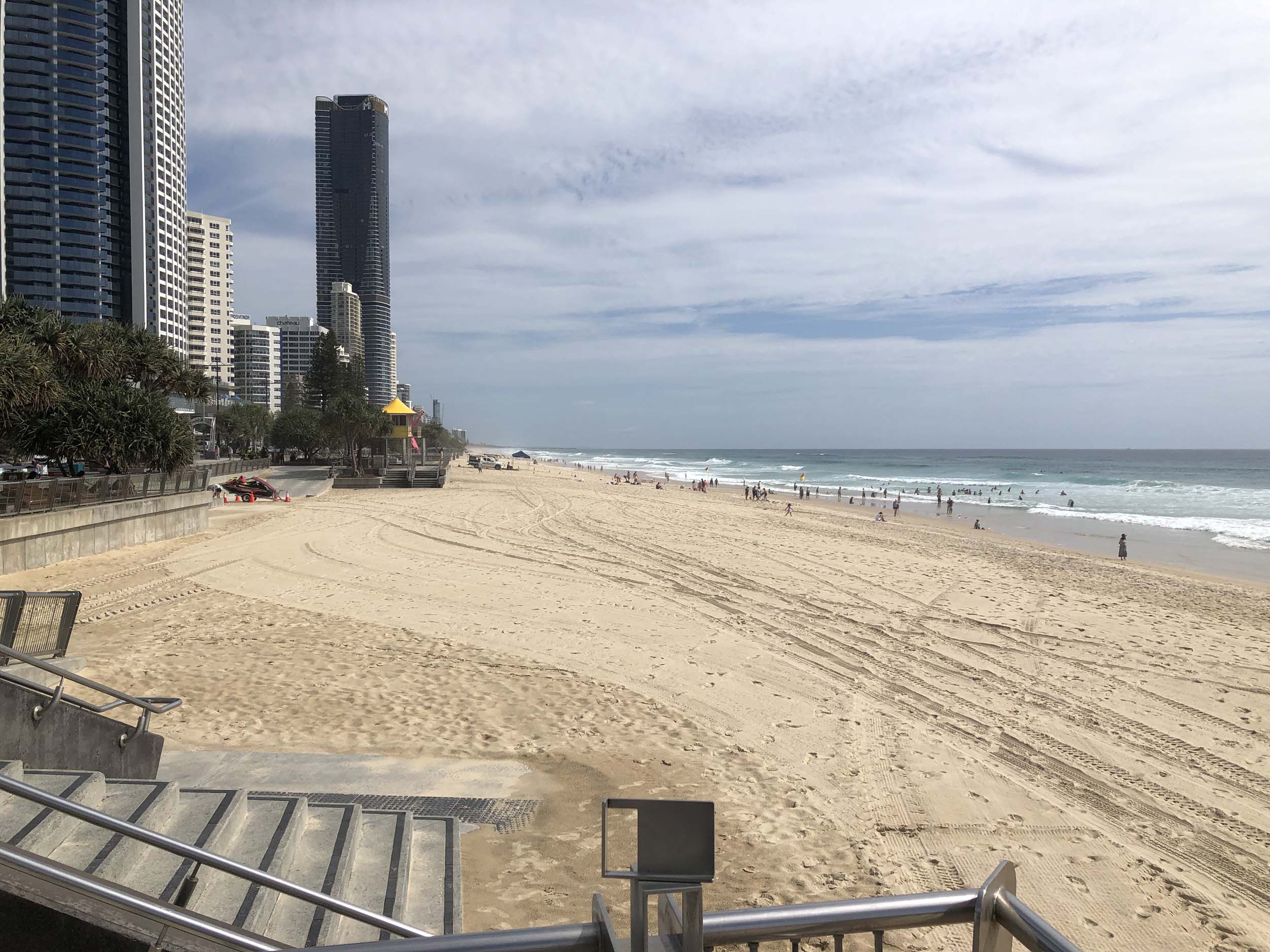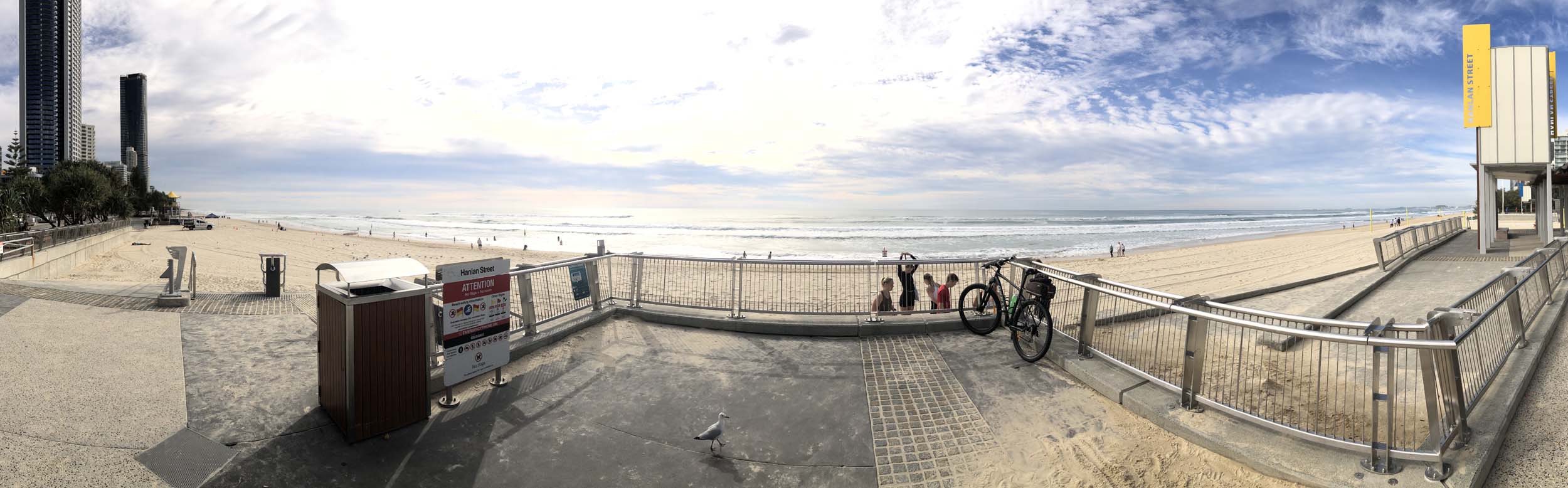 Over the Bridge at Narrowneck then along the Shared Path, to Surfers, to take the Schoolies's area. Strange, I didn't see any.