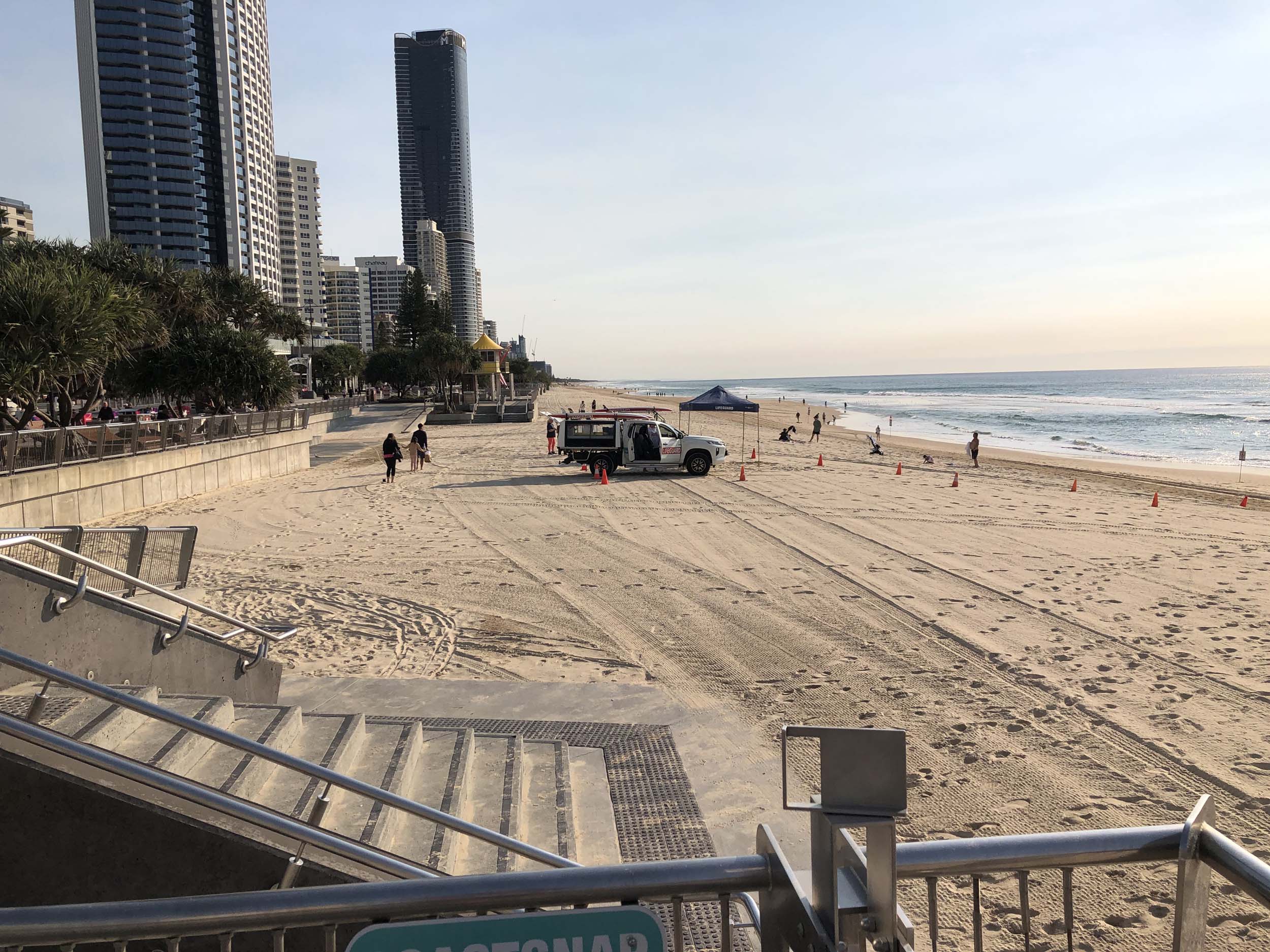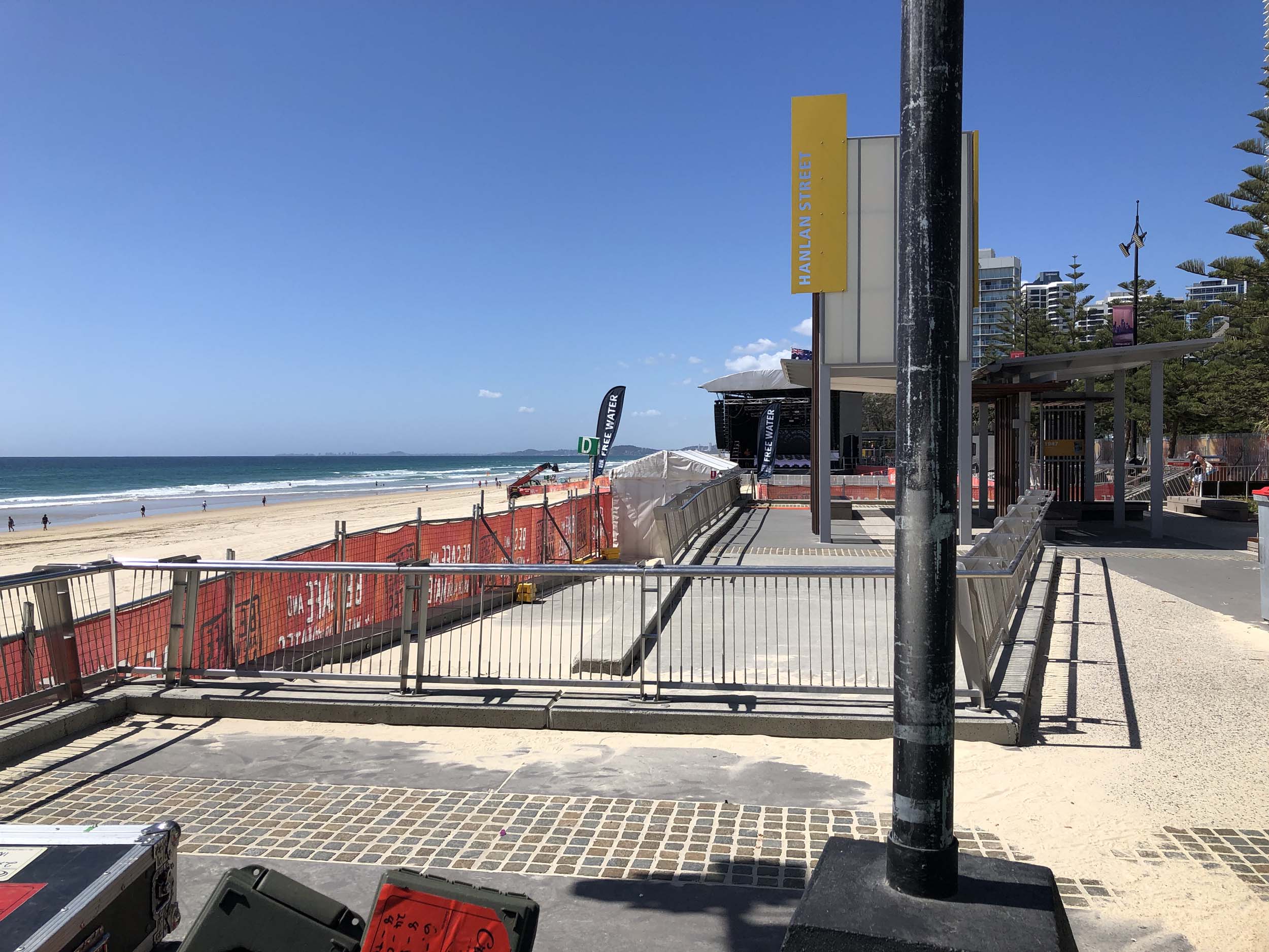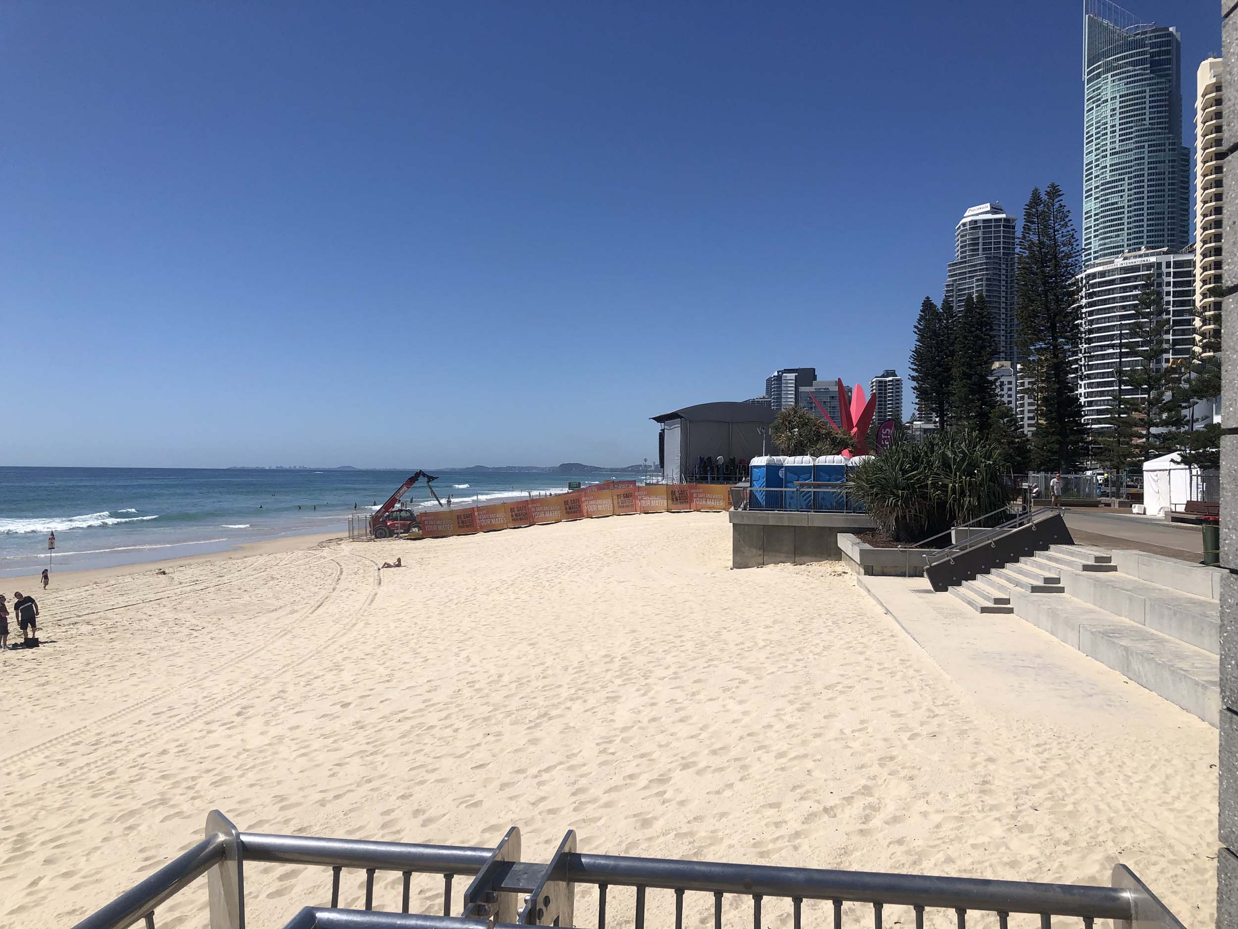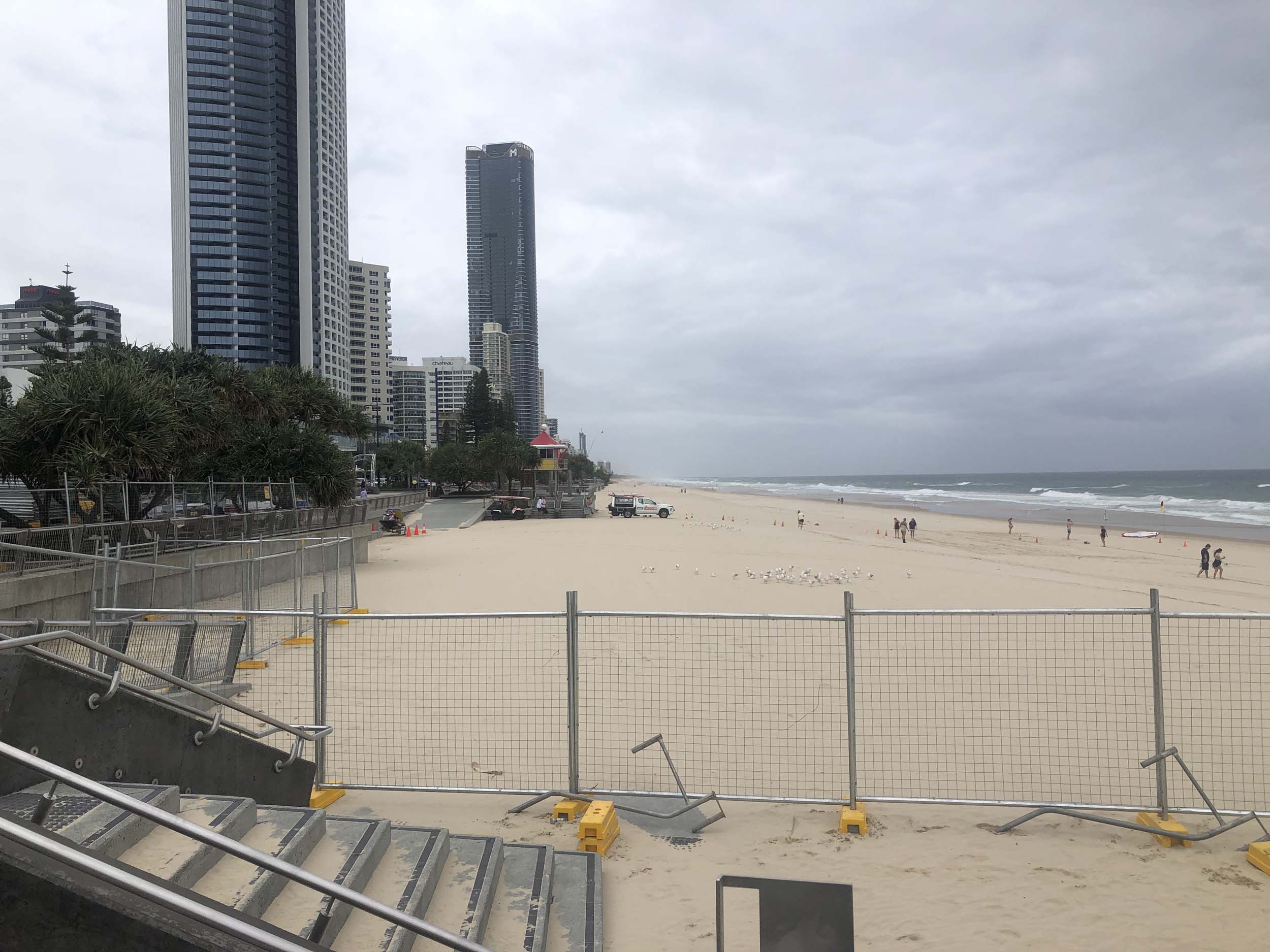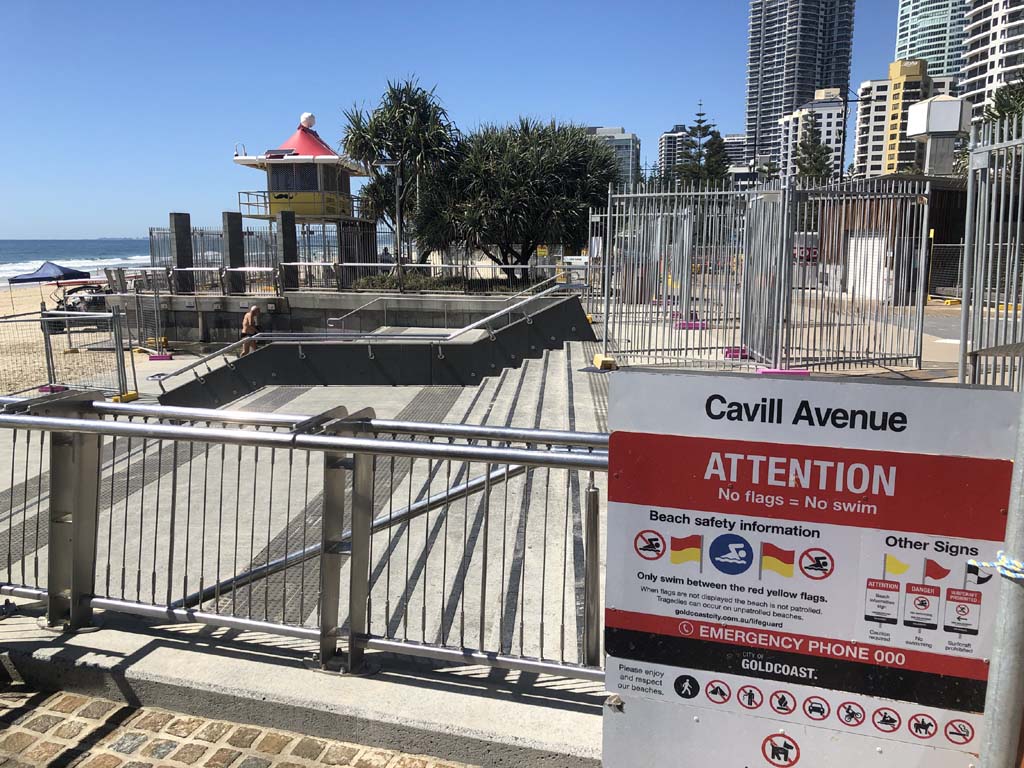 At Surfers with the Schoolies starting tonight, the beach area approx 400meters North and South of Cavil Ave is fenced off, for schoolies use only.