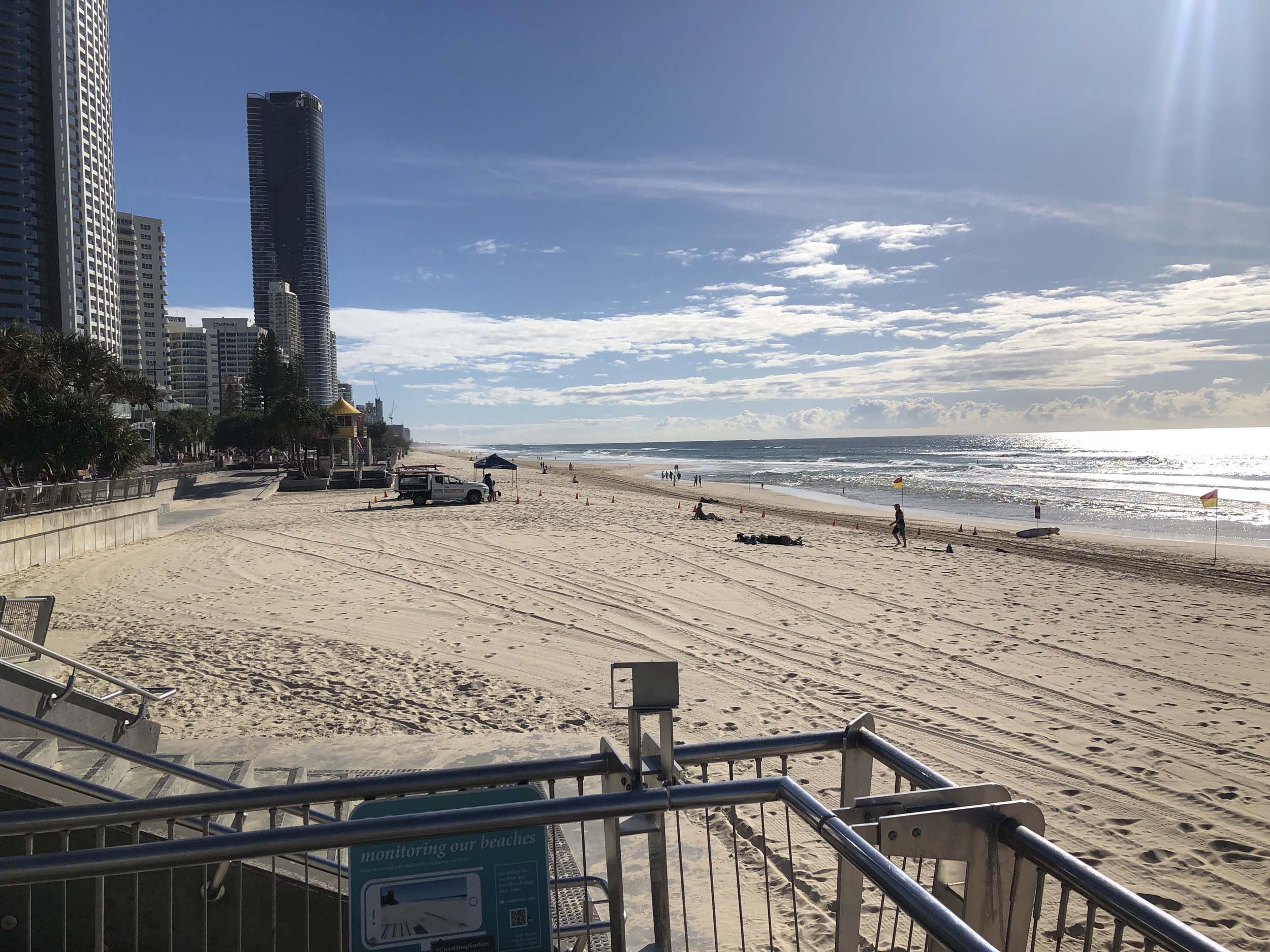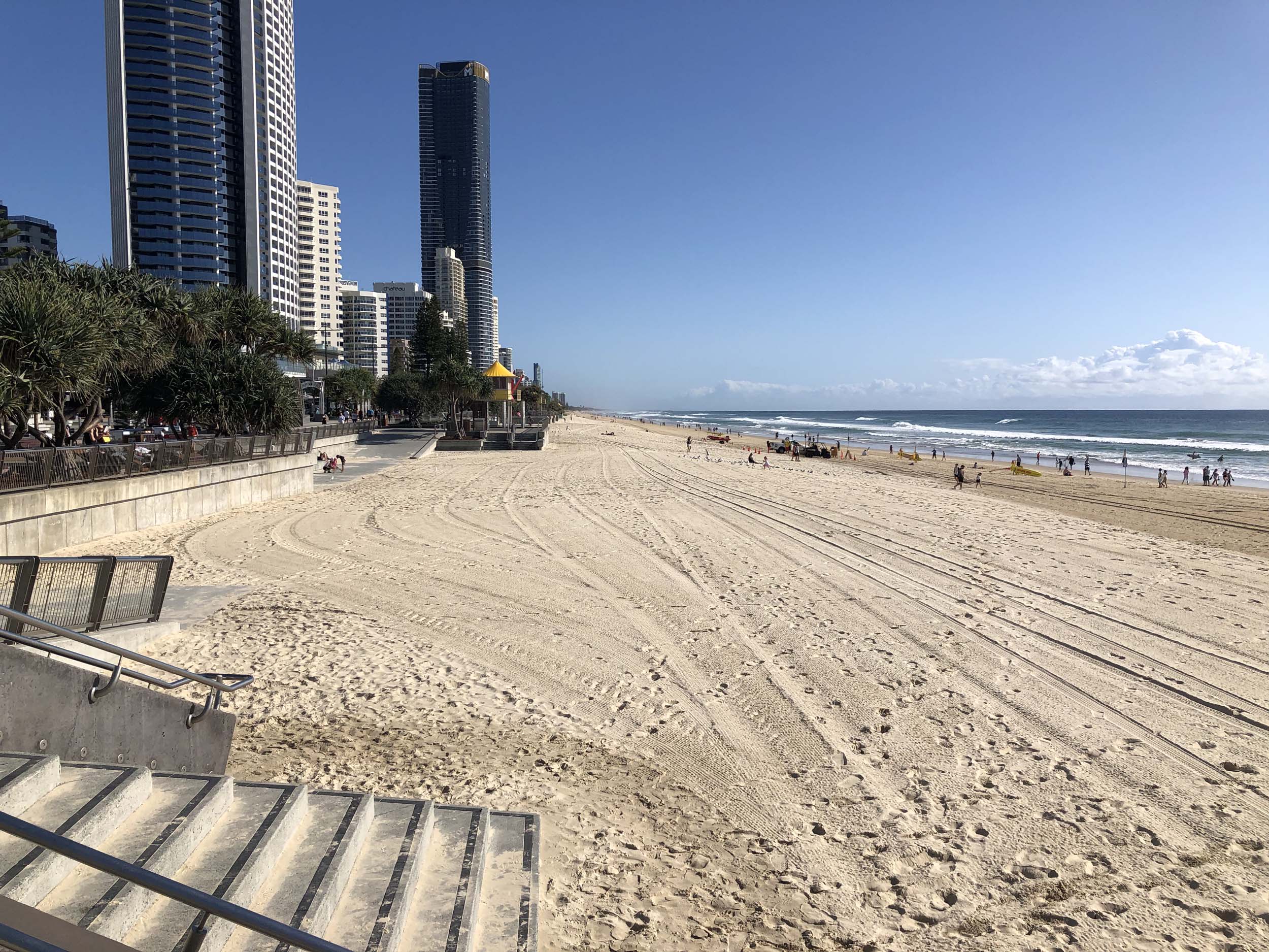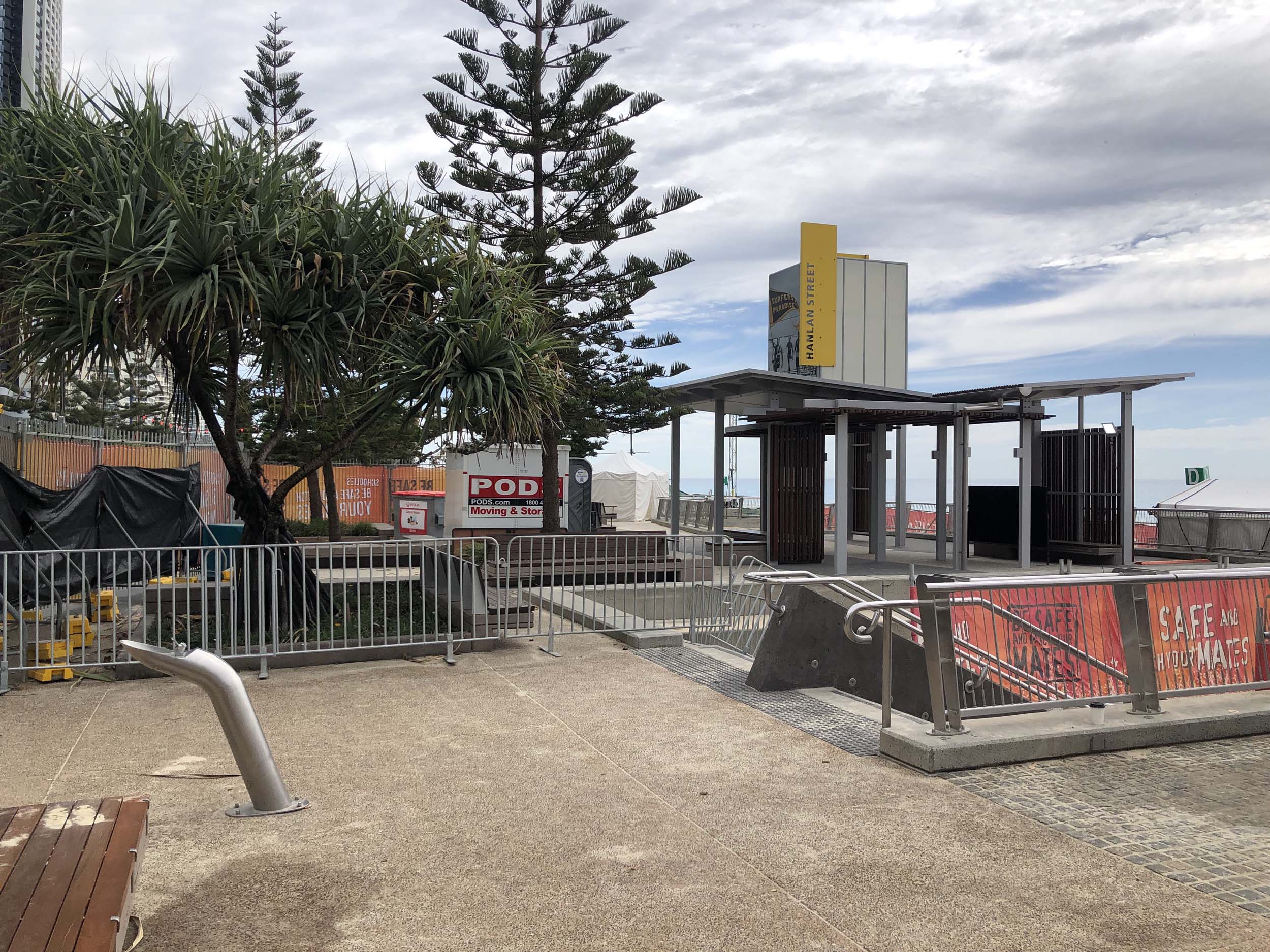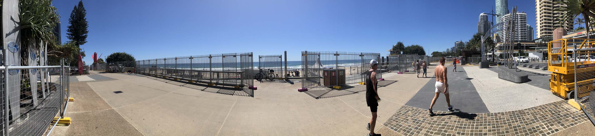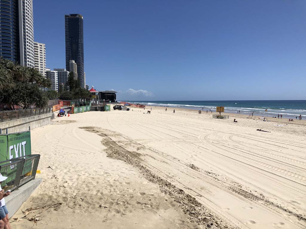 At Surfers with the Schoolies starting tonight, the beach area approx 400meters North and South of Cavil Ave is fenced off, for schoolies use only.