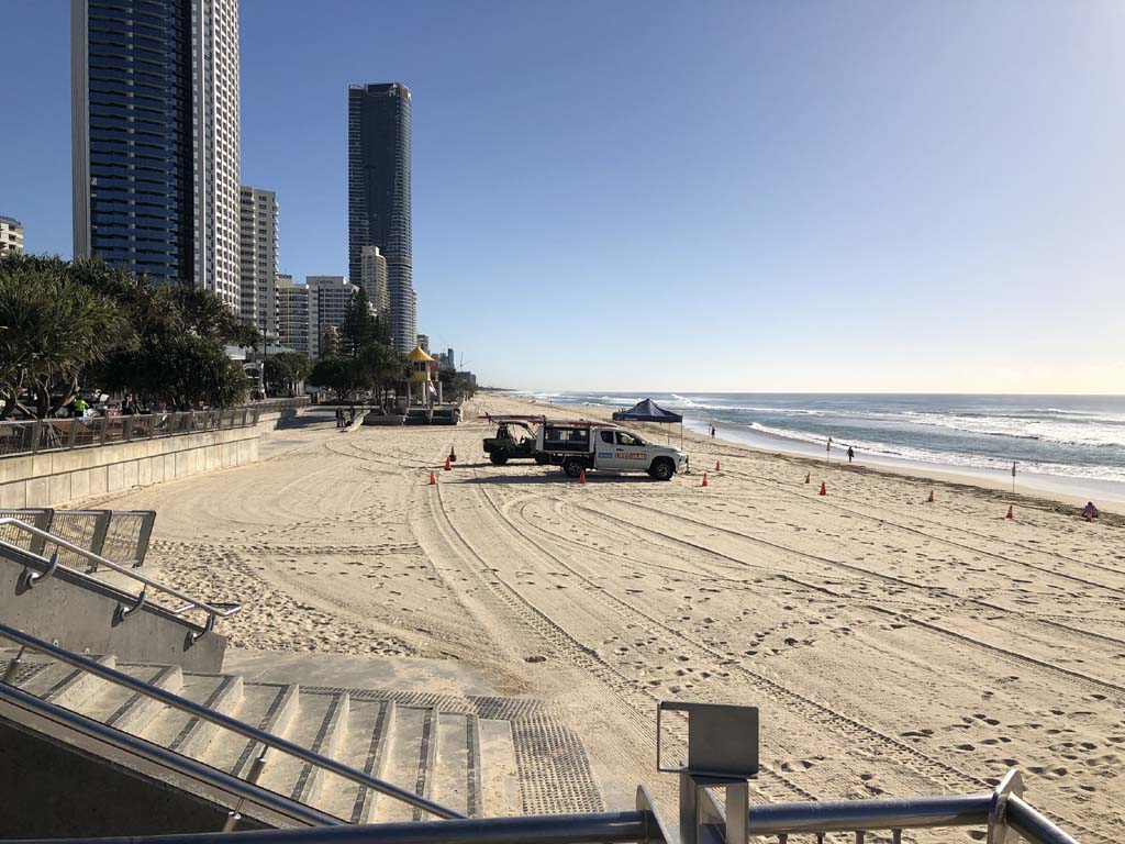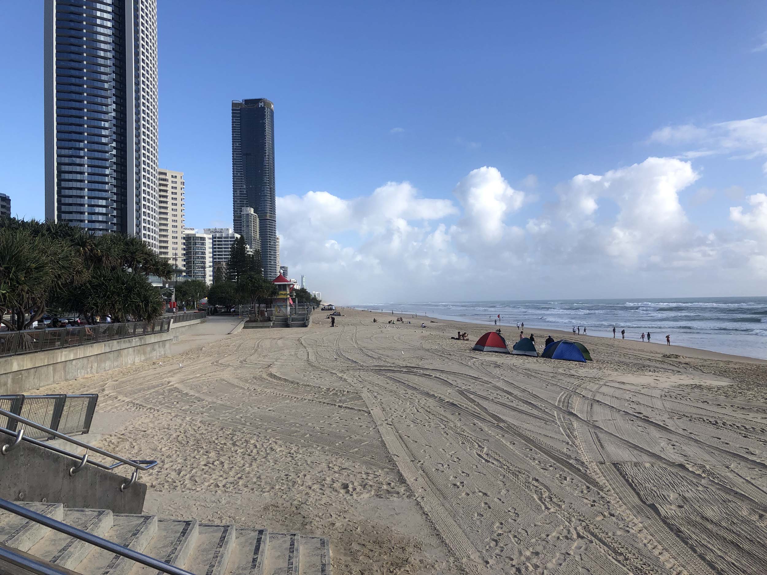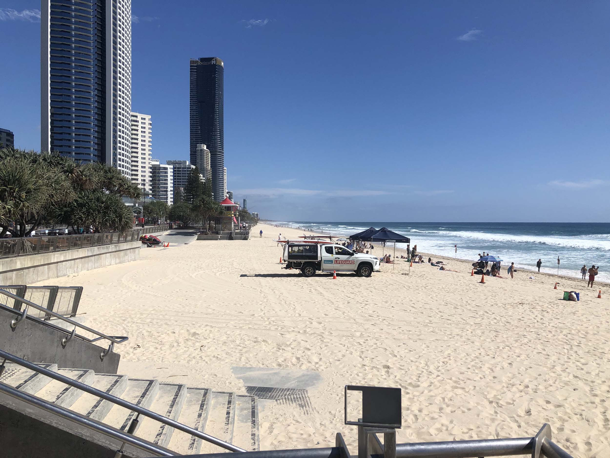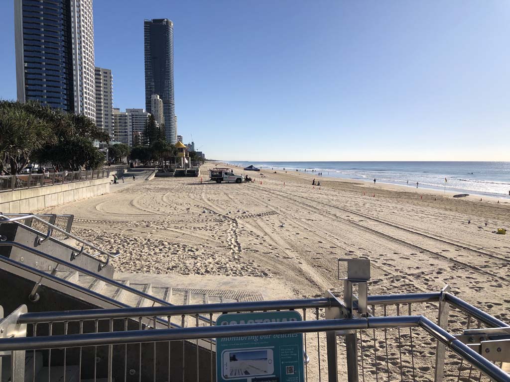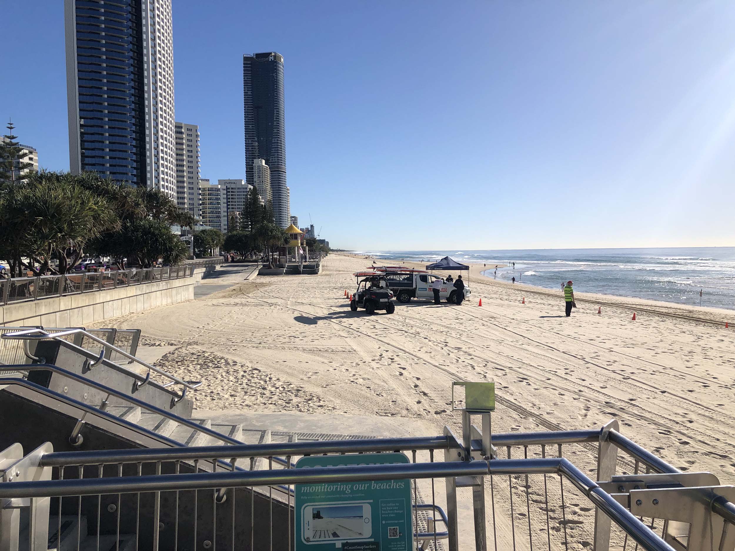 At Surfers with the Schoolies starting tonight, the beach area approx 400meters North and South of Cavil Ave is fenced off, for schoolies use only.