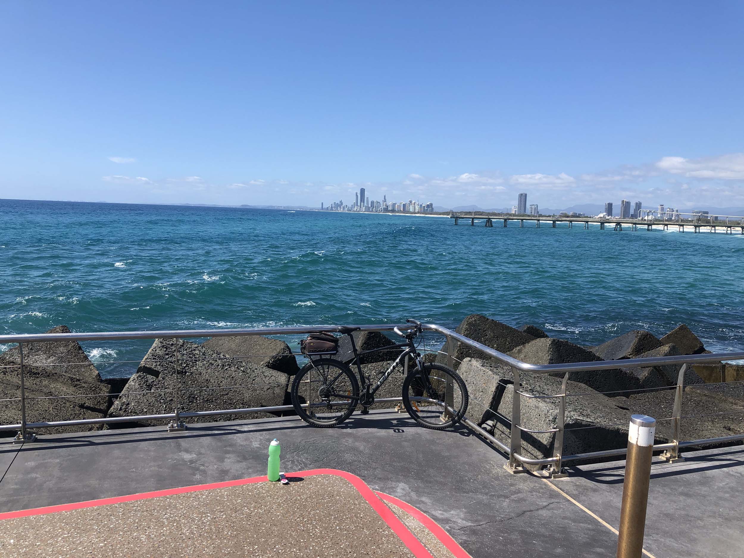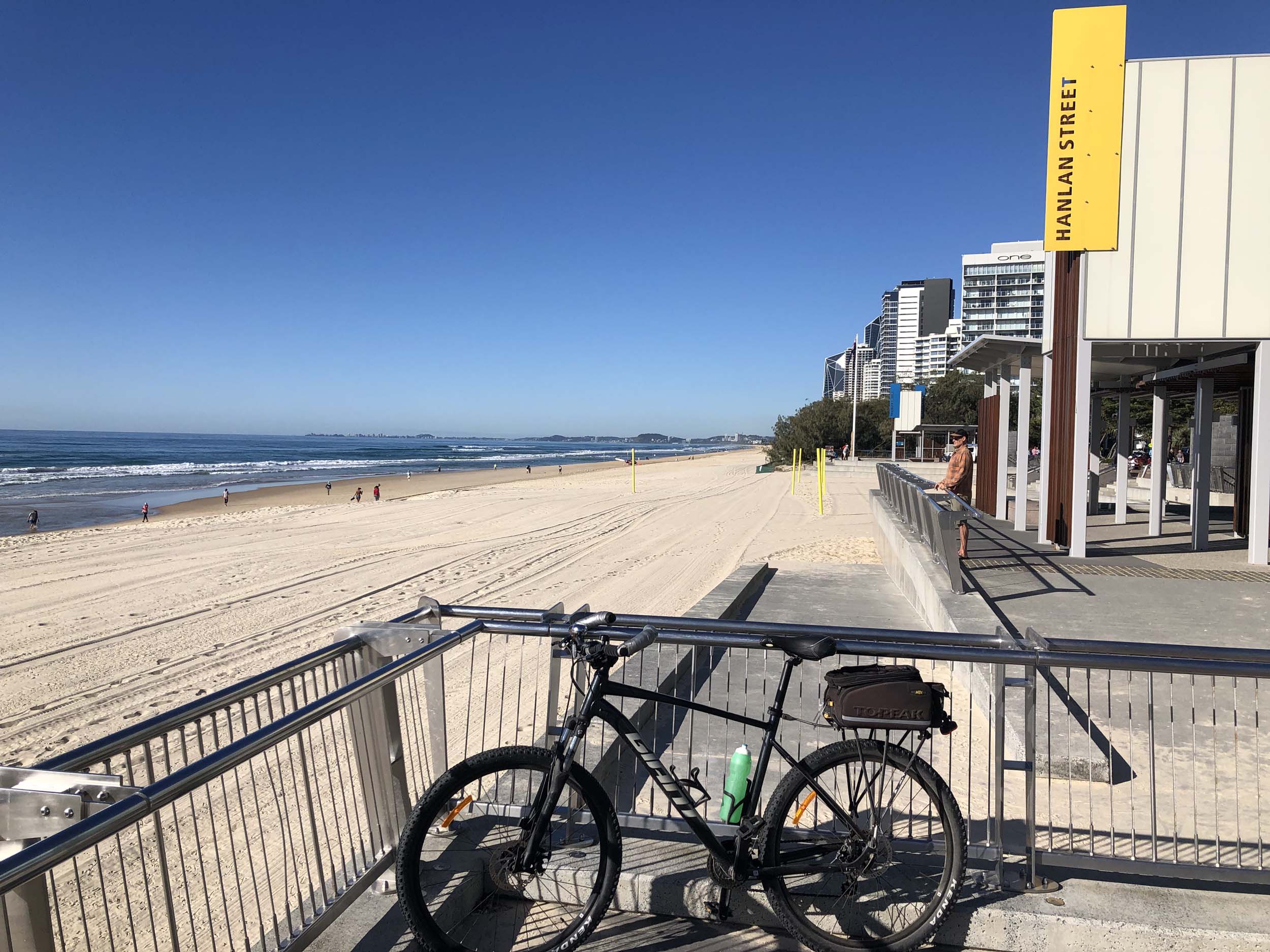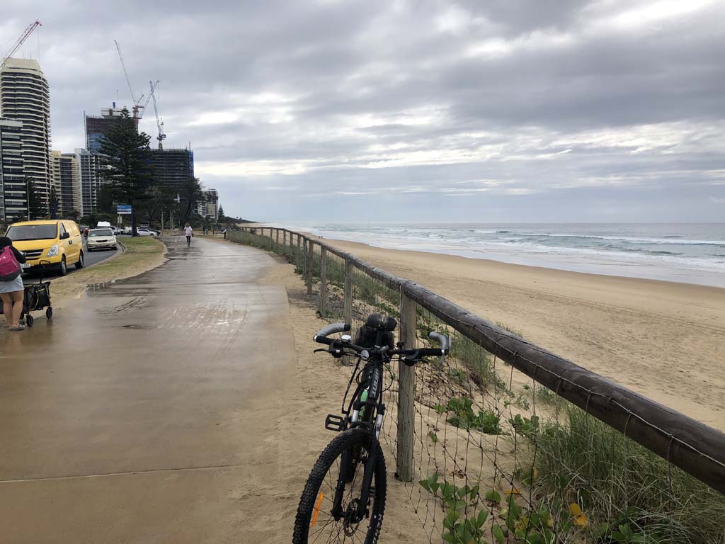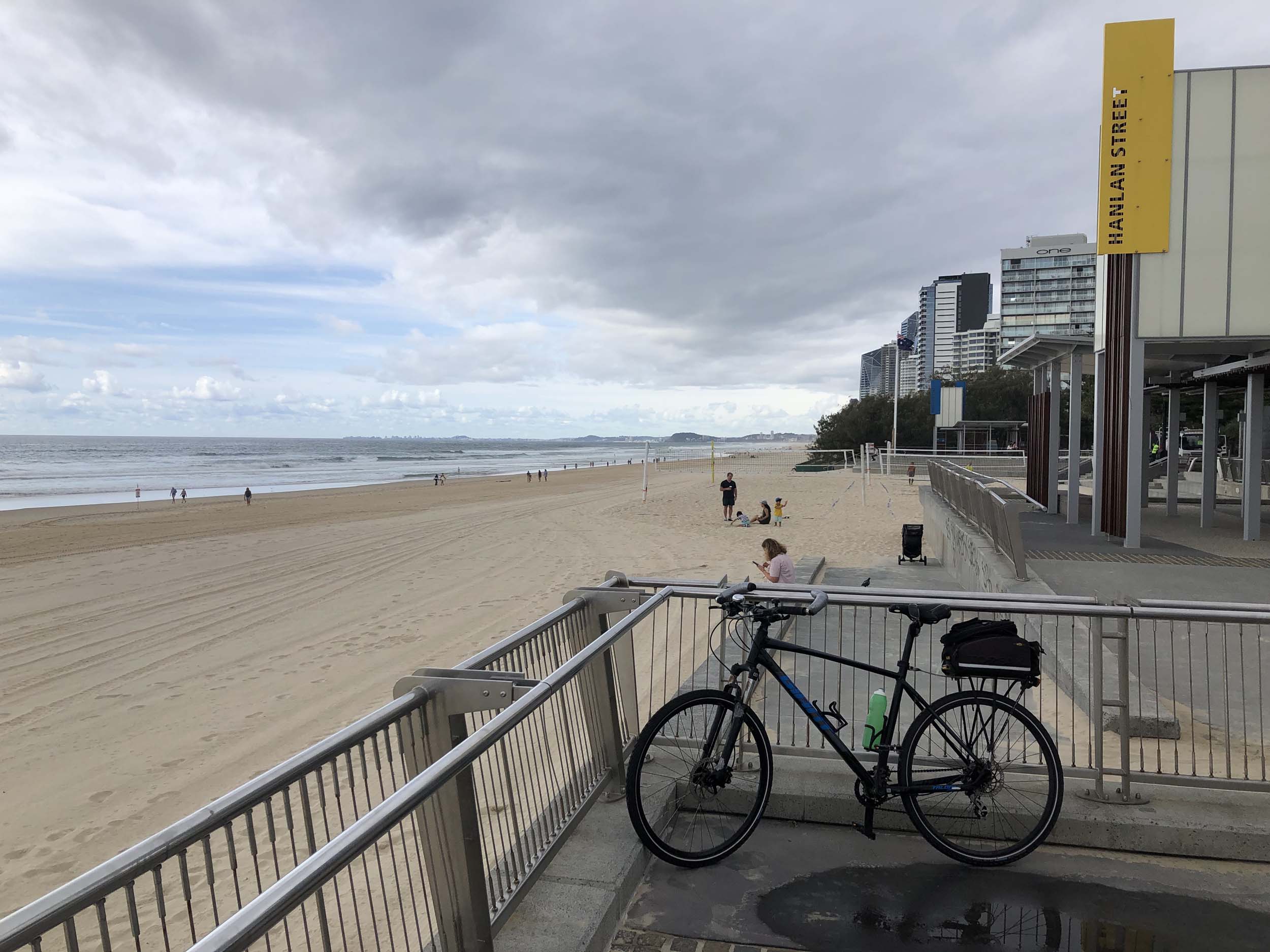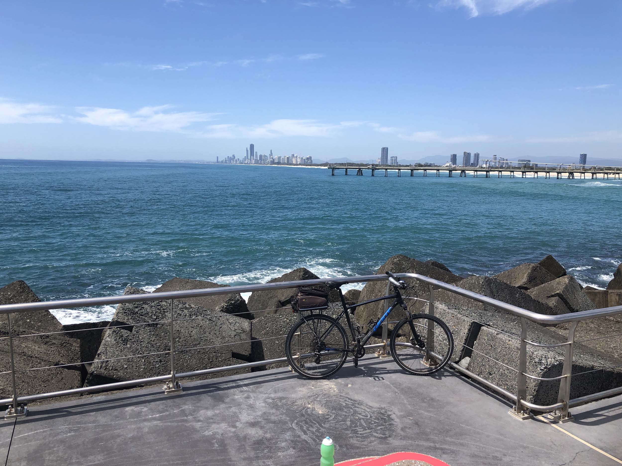 Home to Turnaround Pt down to Surfers via GC600 Park to Surfers to The Spit (both ends - twice) then back through GC600 Park back to Cafe Rockpool and finally back Home about 50+kms.