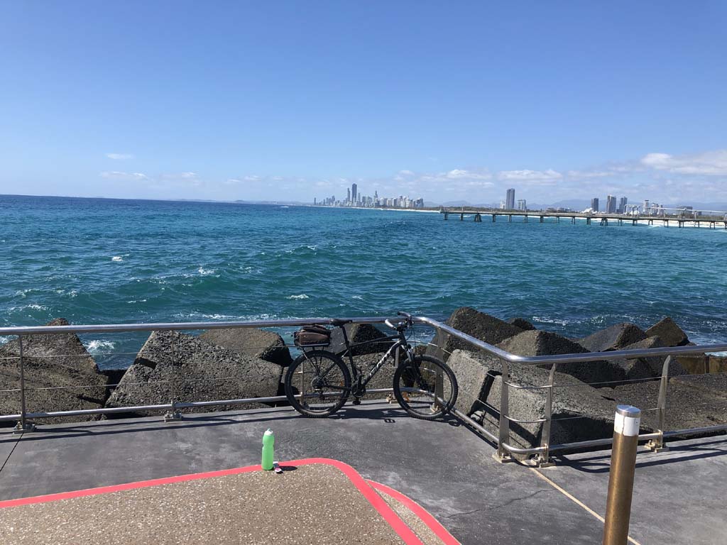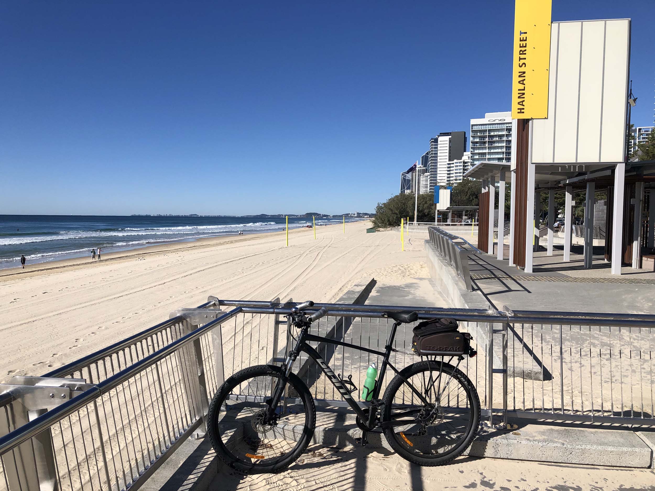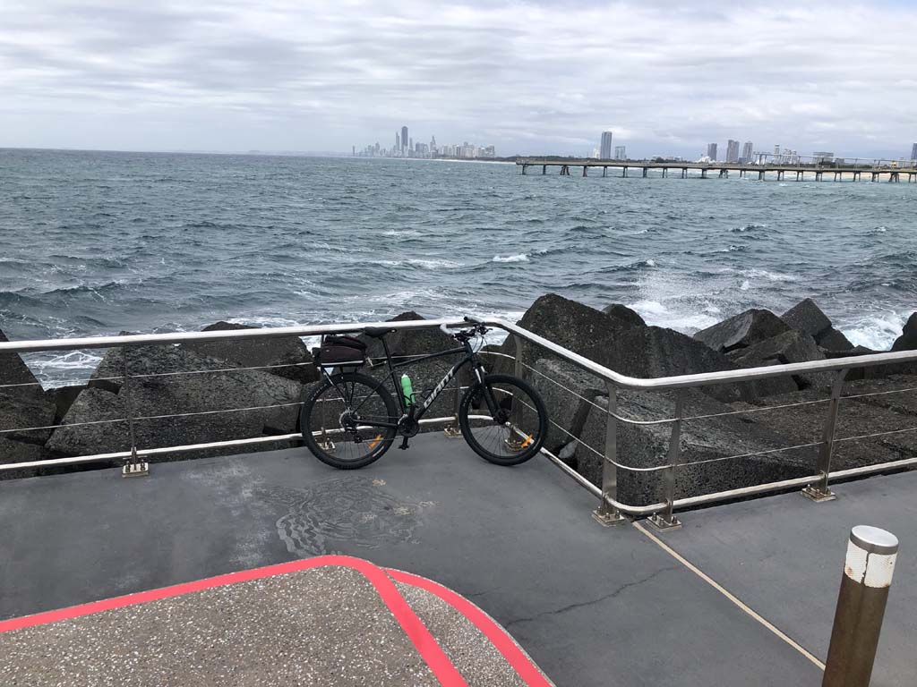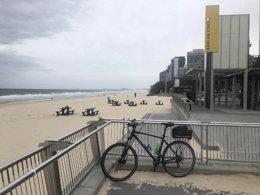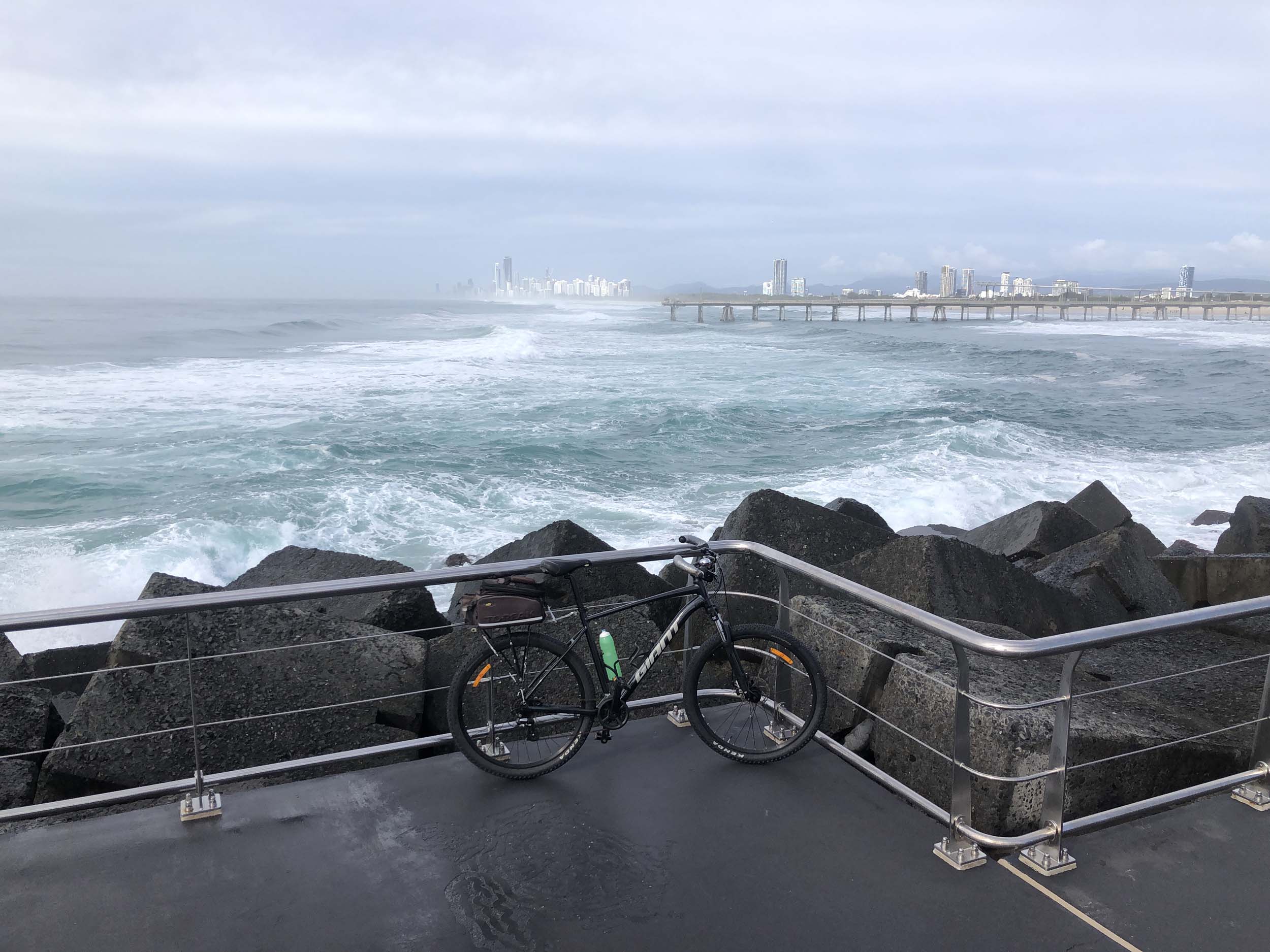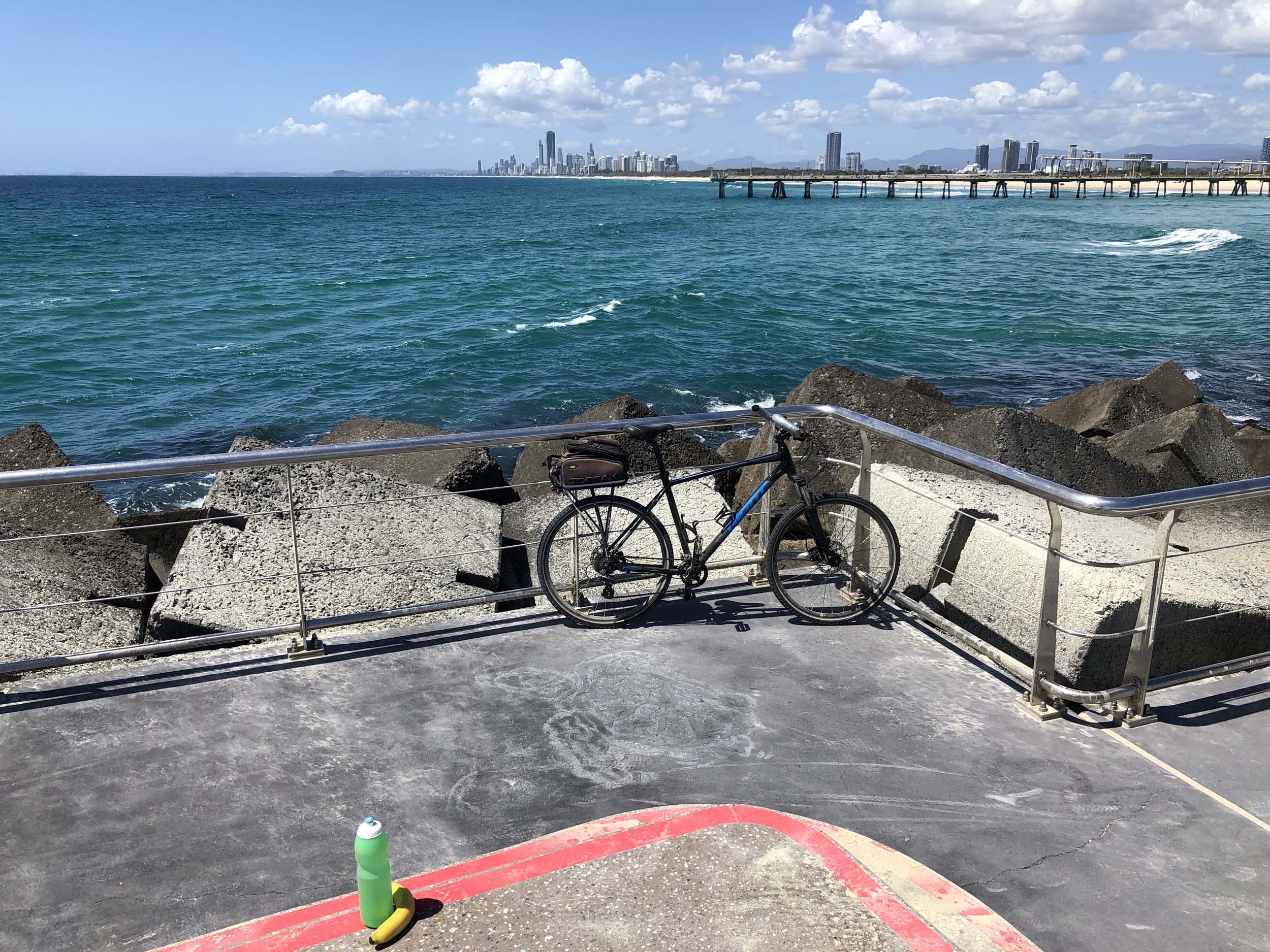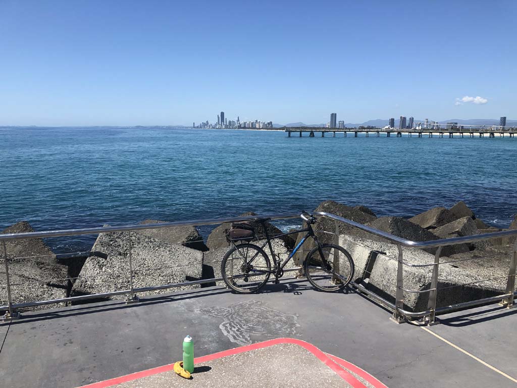 Home to Turnaround Pt down to Surfers via GC600 Park to Surfers to The Spit (both ends - twice) then back through GC600 Park back to Cafe Rockpool and finally back Home about 50+kms.
