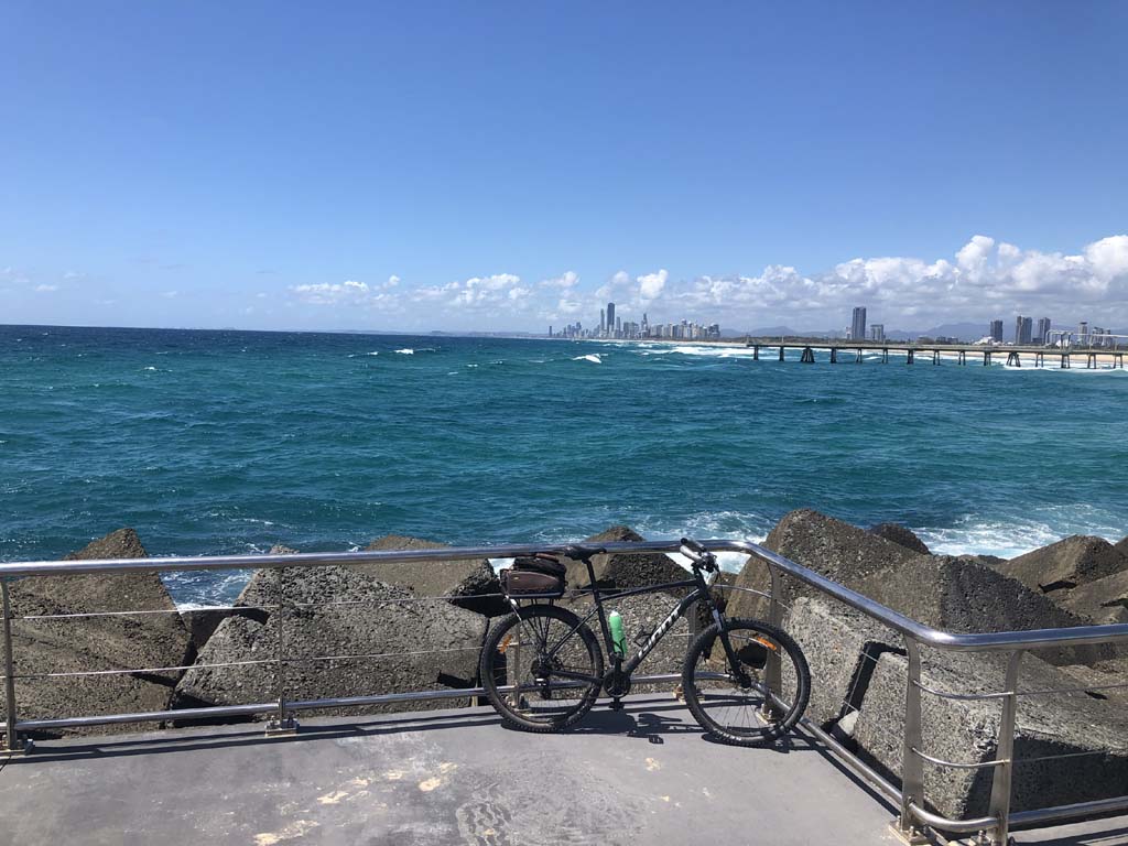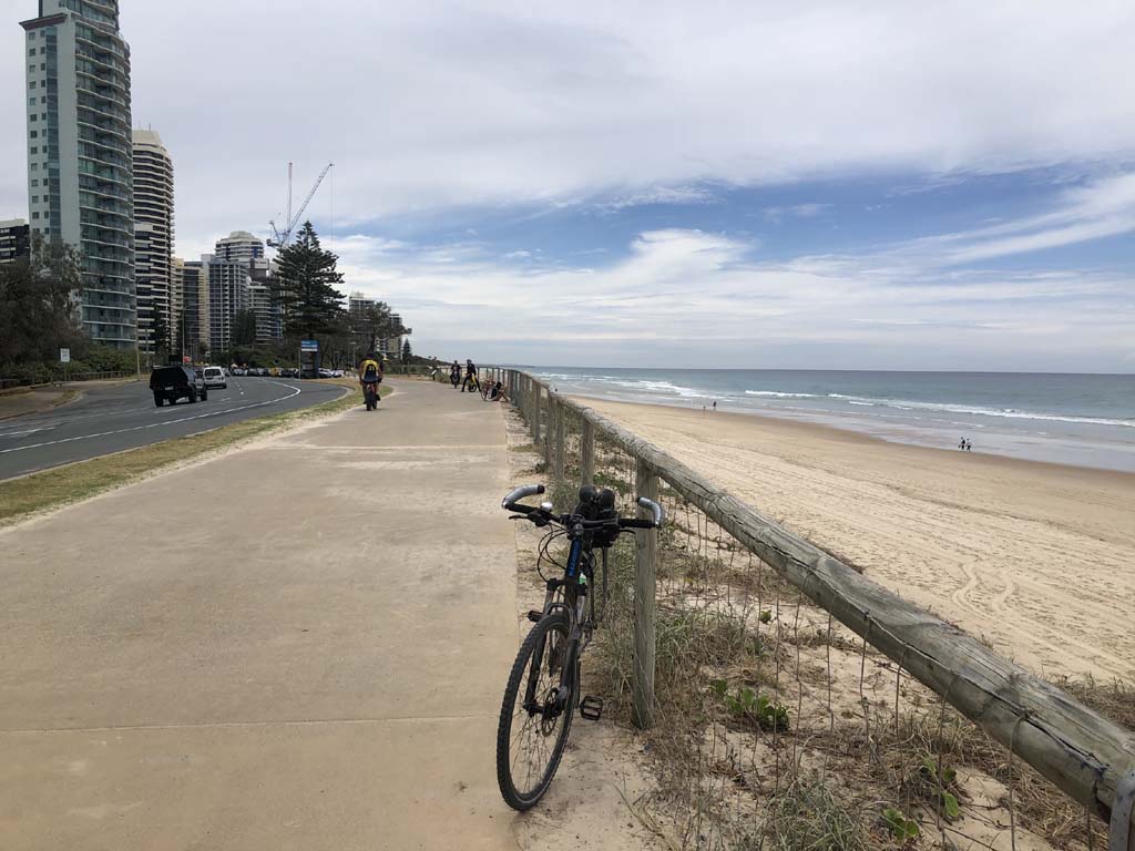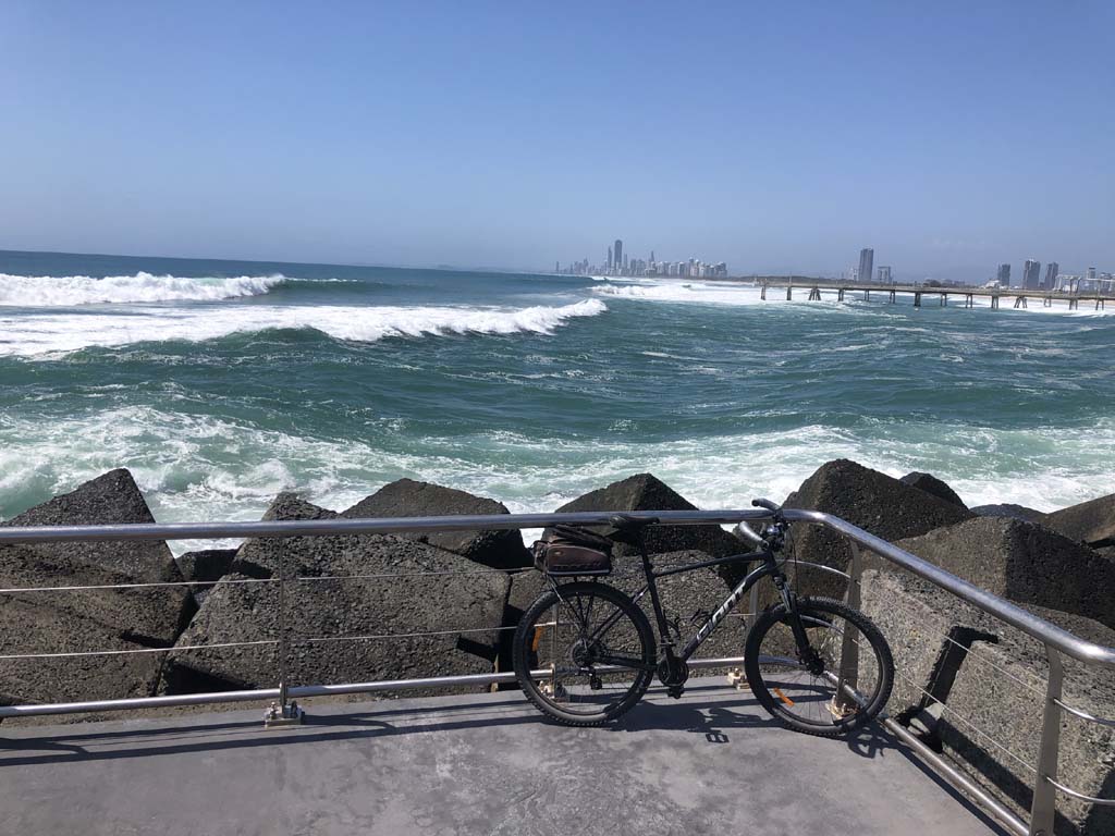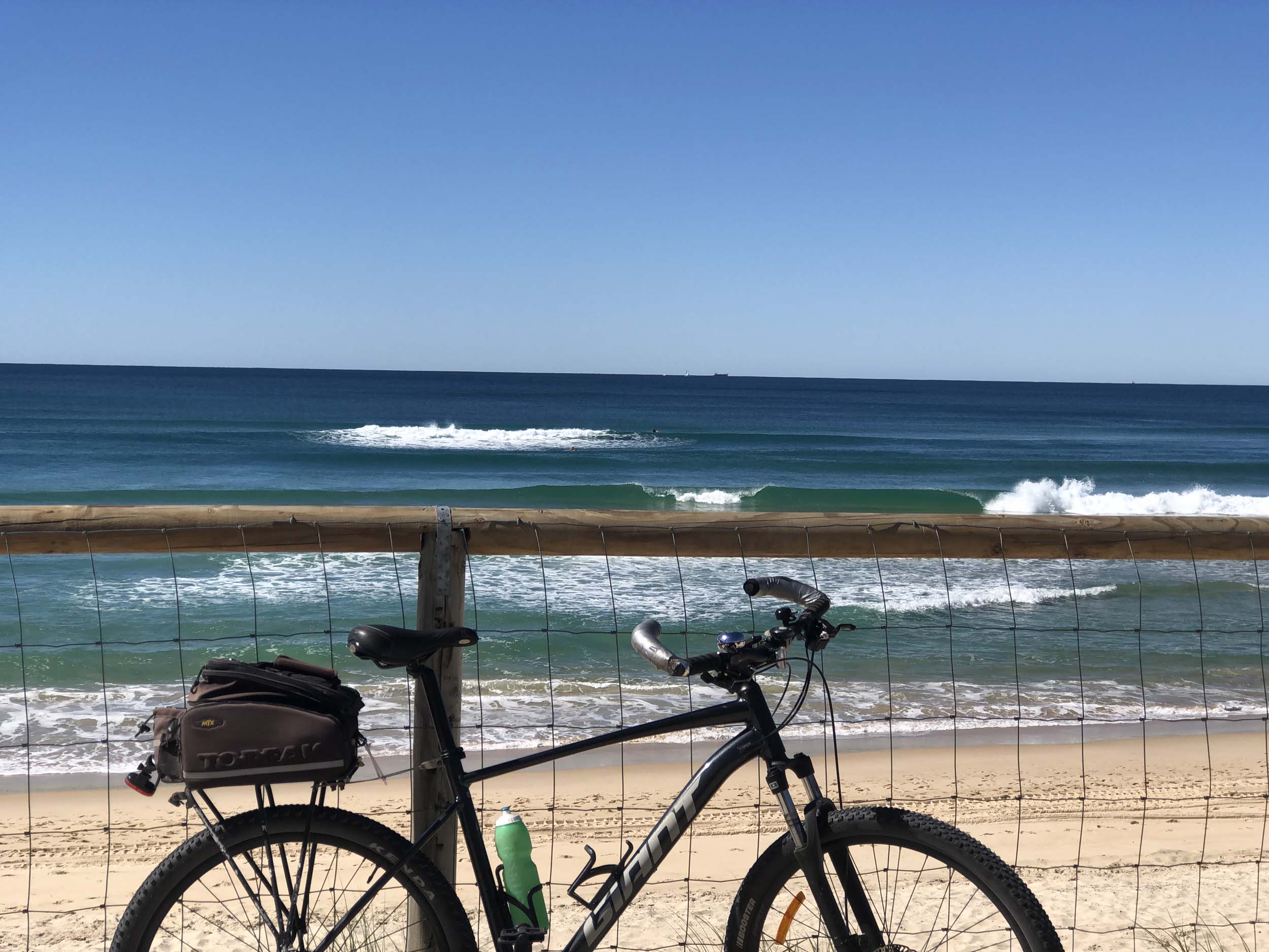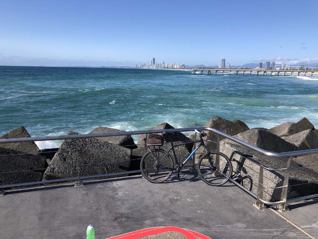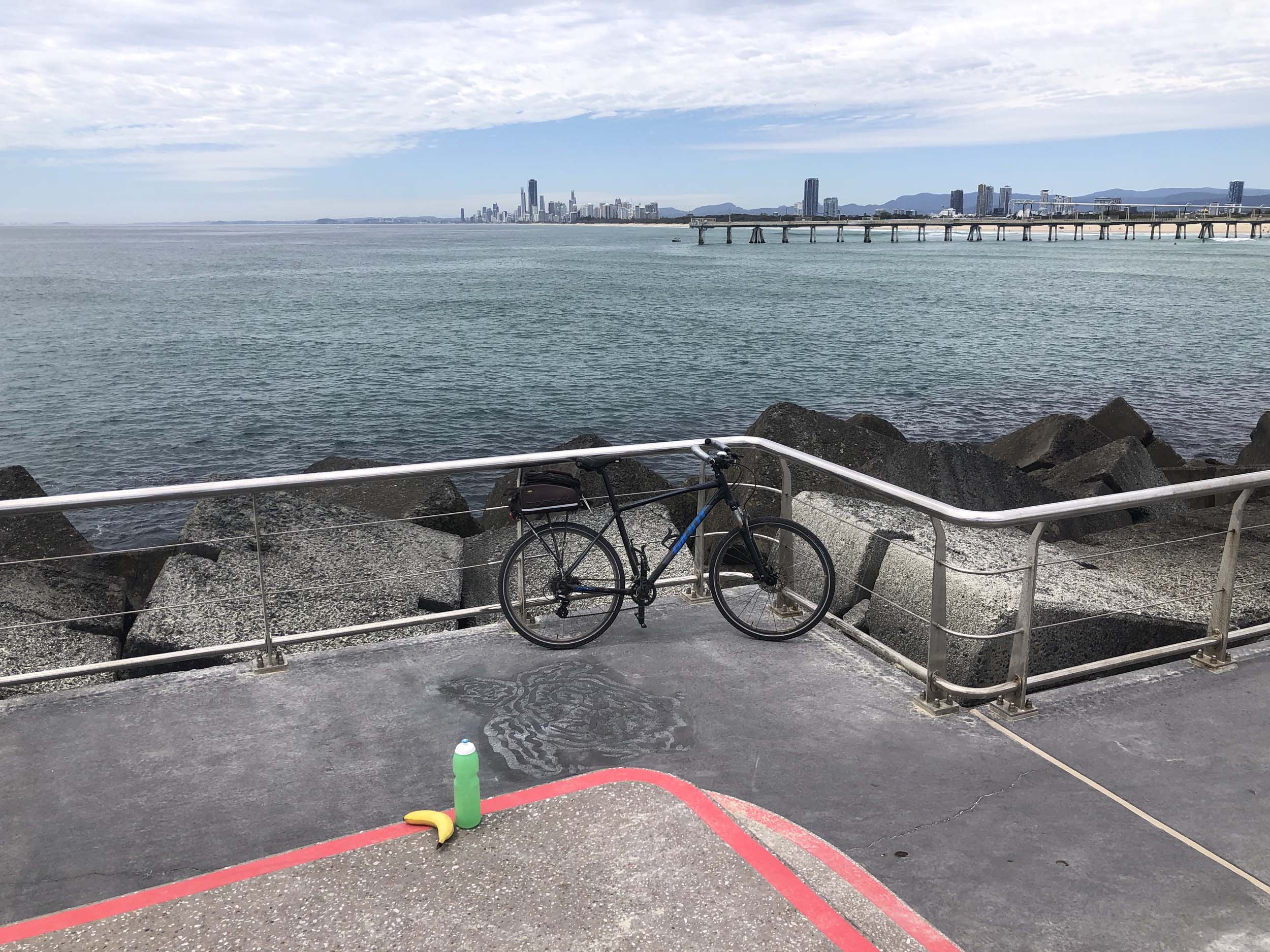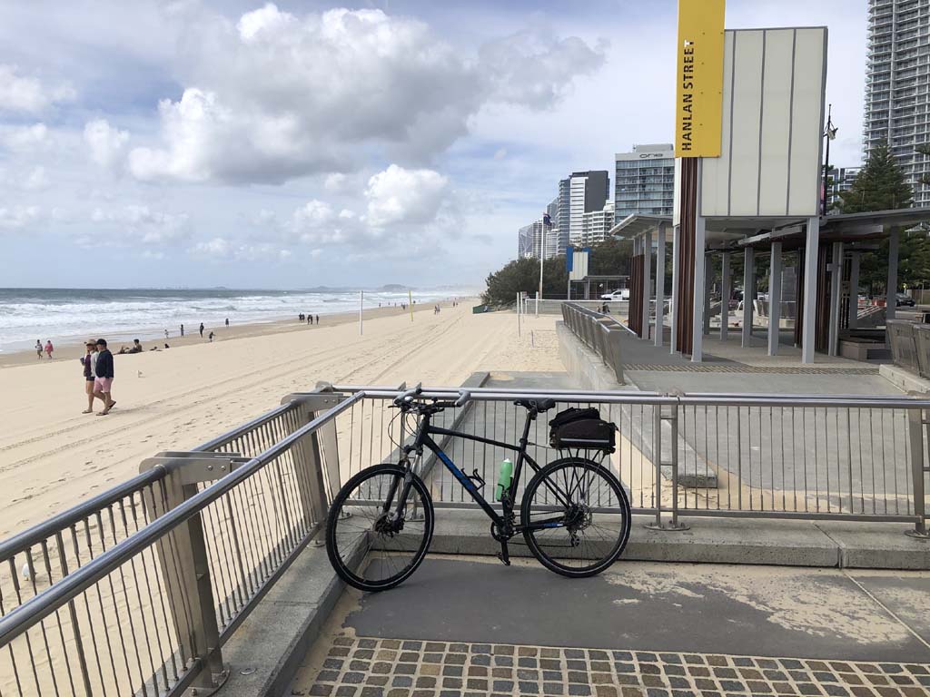 Home to Turnaround Pt down to Surfers via GC600 Park to Surfers to The Spit (both ends - twice) then back through GC600 Park back to Cafe Rockpool and finally back Home about 50+kms.
